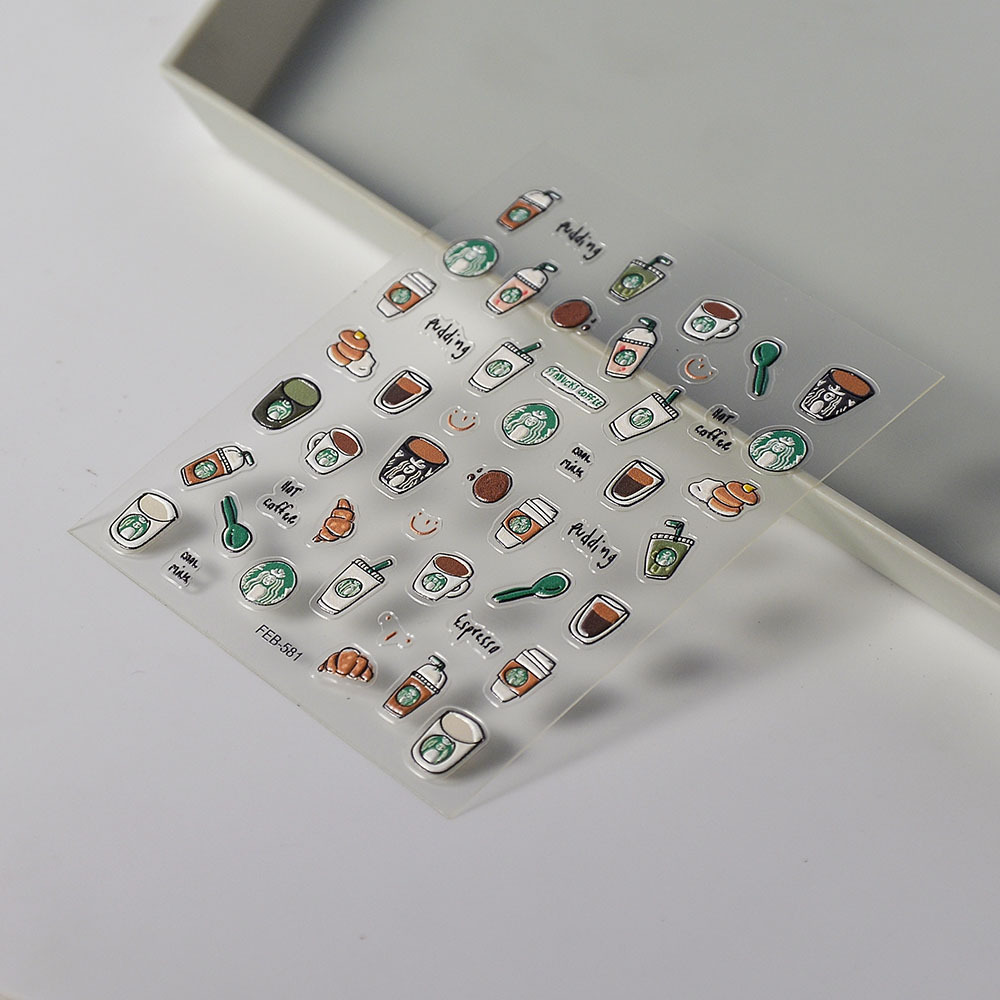 가벼운 럭셔리 스타일 입체 5d 양각 네일 아트 스티커 네일 스티커를 착용 자체 접착 커피 컵 네일 스티커와 밀크 티스토어 가기