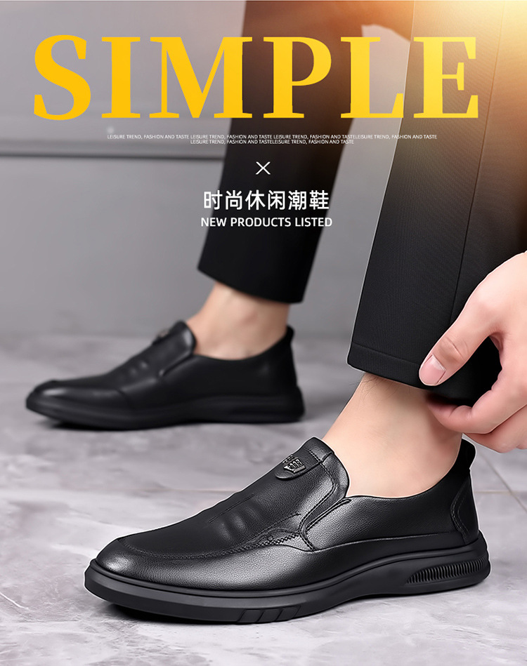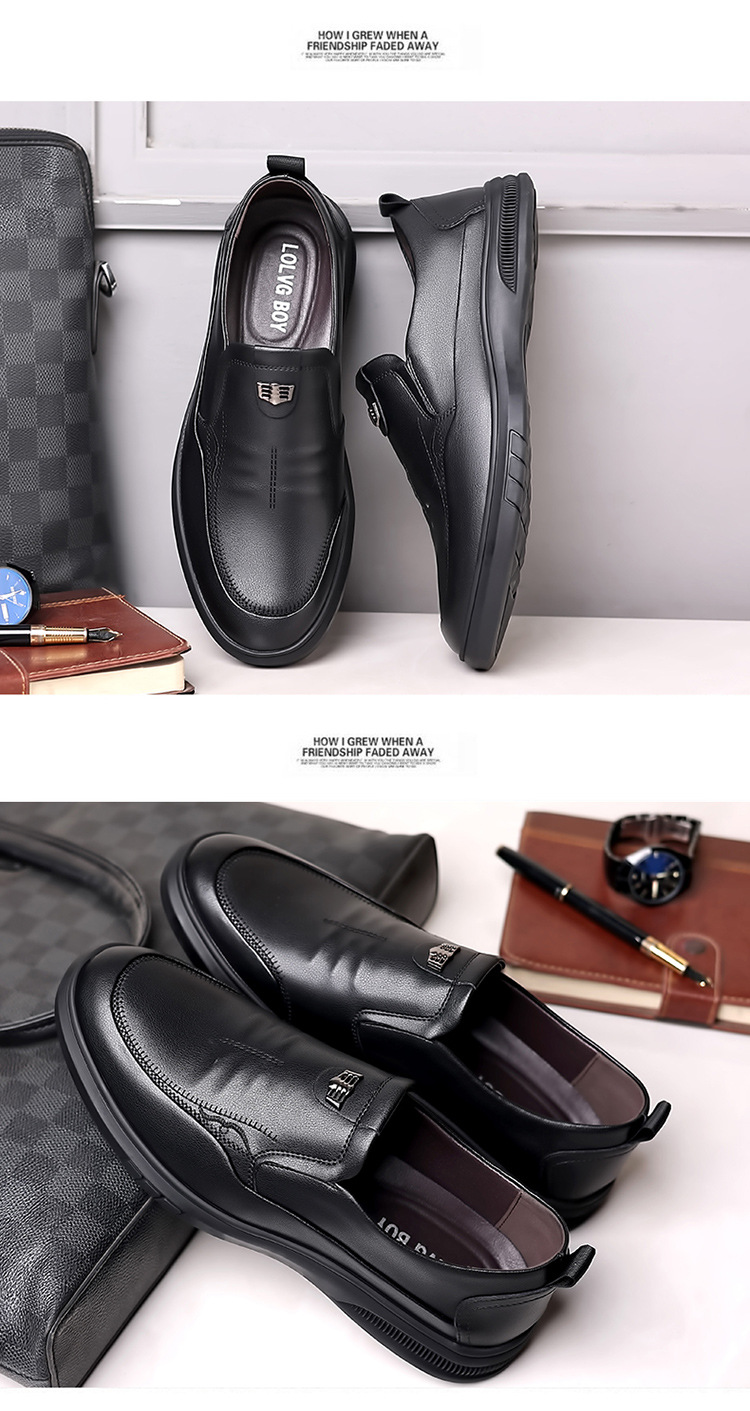 가죽 신발 중년 및 노인 아빠를위한 부드러운 밑창 미끄럼 방지 슬립온 신발을 운전하는 게으른 사람들을위한 남성용 정품 가죽 비즈니스 캐주얼 작업 신발