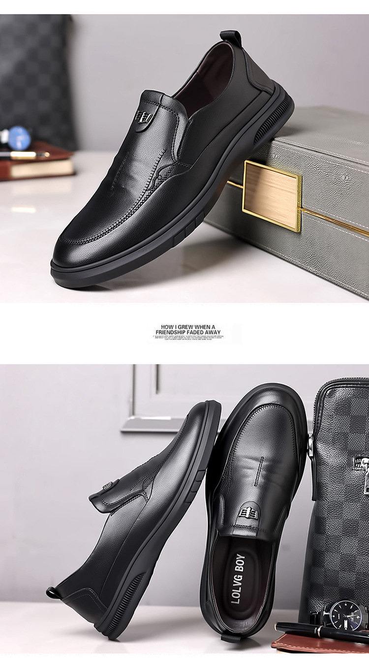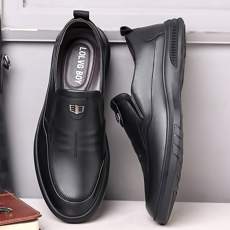 가죽 신발 중년 및 노인 아빠를위한 부드러운 밑창 미끄럼 방지 슬립온 신발을 운전하는 게으른 사람들을위한 남성용 정품 가죽 비즈니스 캐주얼 작업 신발스토어 가기