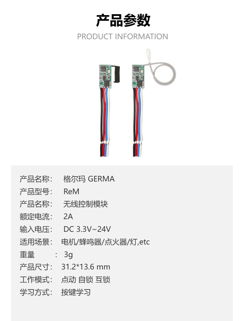 存储遥控器数量:以功能模式为存储单位,一个模块最多只能存储5个(对)功能,比如:模块能记住5个“点动键”,或者记住5对“互锁键”,或记住5个“自锁键”,也可以是混合的5个功能,比如记住两个点动键,两个自锁键,一对互锁键。