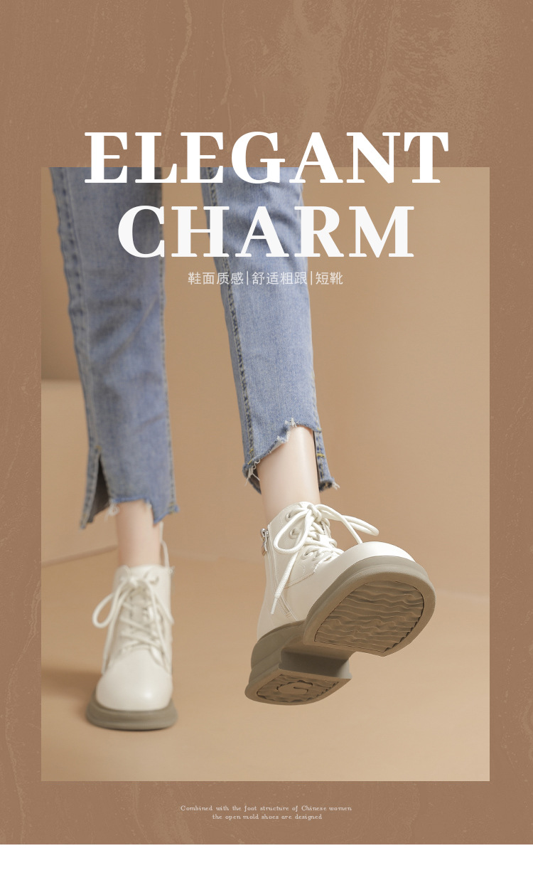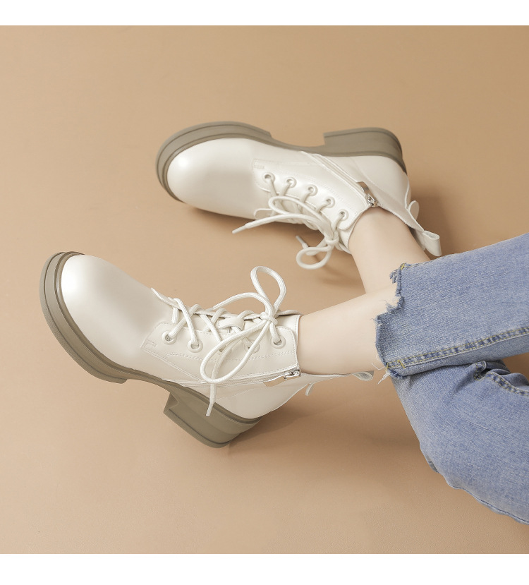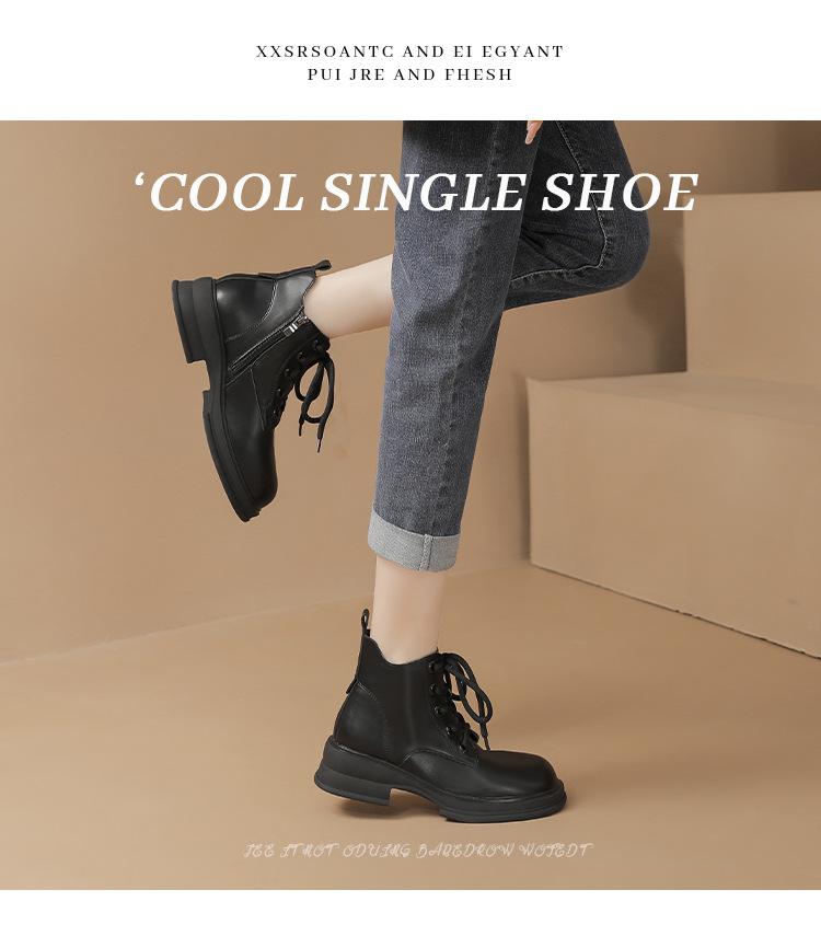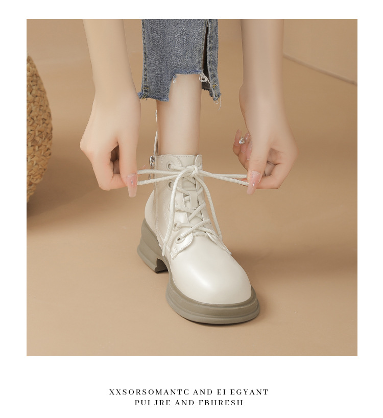 레이스 업 정품 가죽 마틴 부츠 여성용 2023 년 새로운 가을 얇은 싱글 부츠 두꺼운 밑창 작은 높이 증가 스트랩 짧은 부츠 트렌디스토어 가기