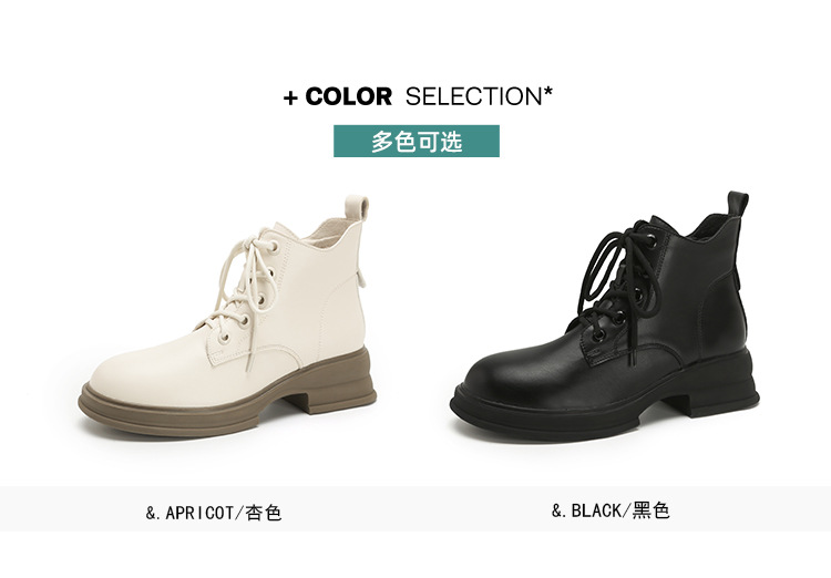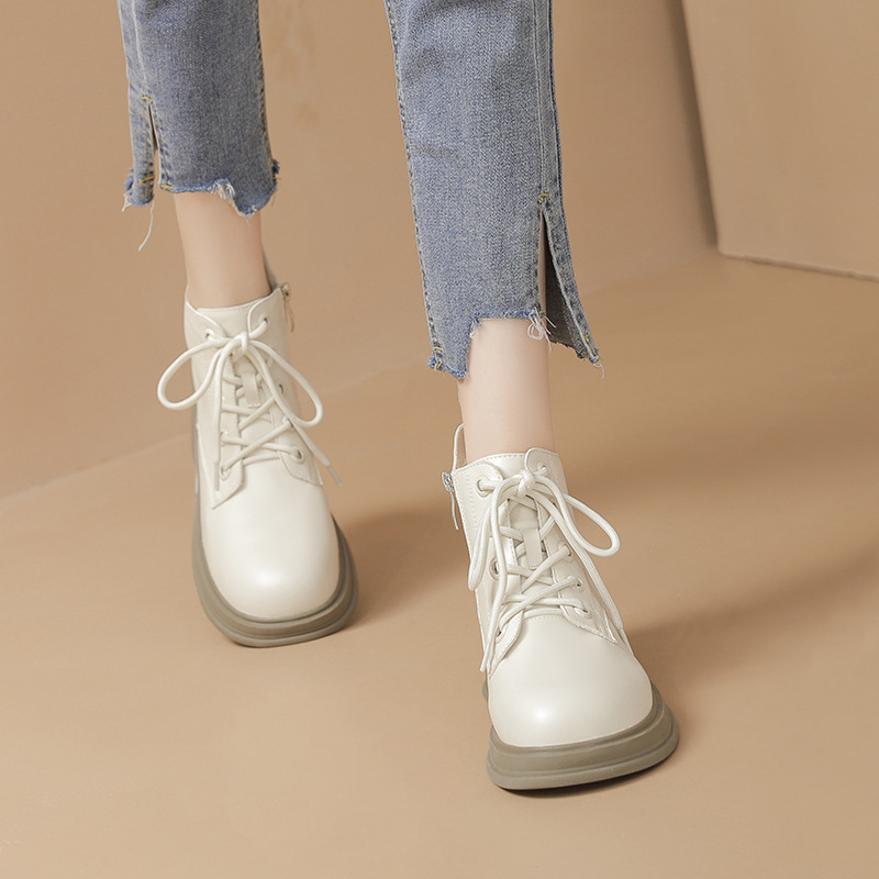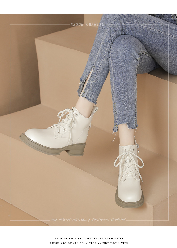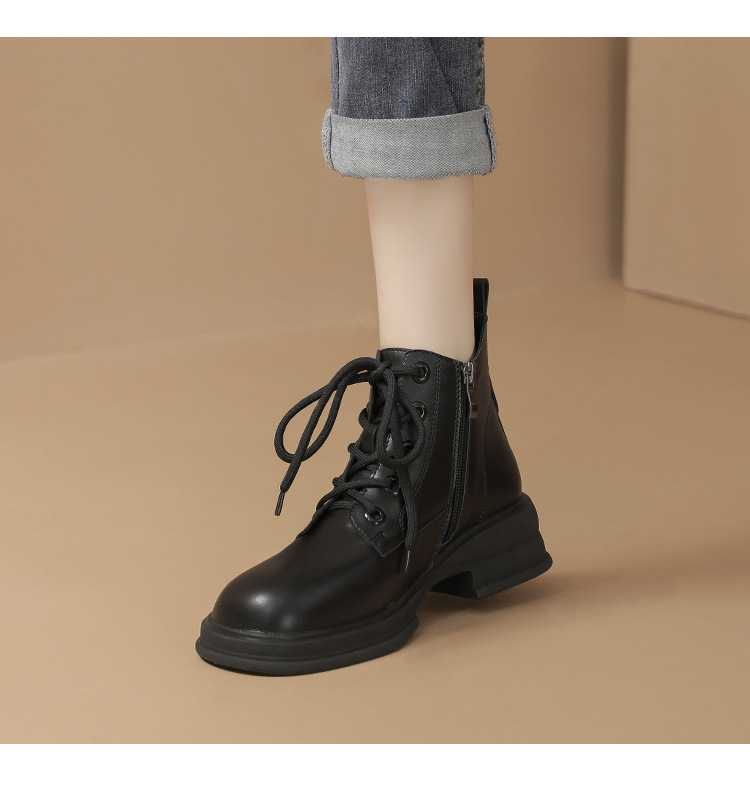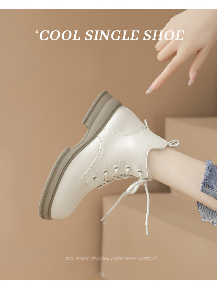 레이스 업 정품 가죽 마틴 부츠 여성용 2023 년 새로운 가을 얇은 싱글 부츠 두꺼운 밑창 작은 높이 증가 스트랩 짧은 부츠 트렌디
