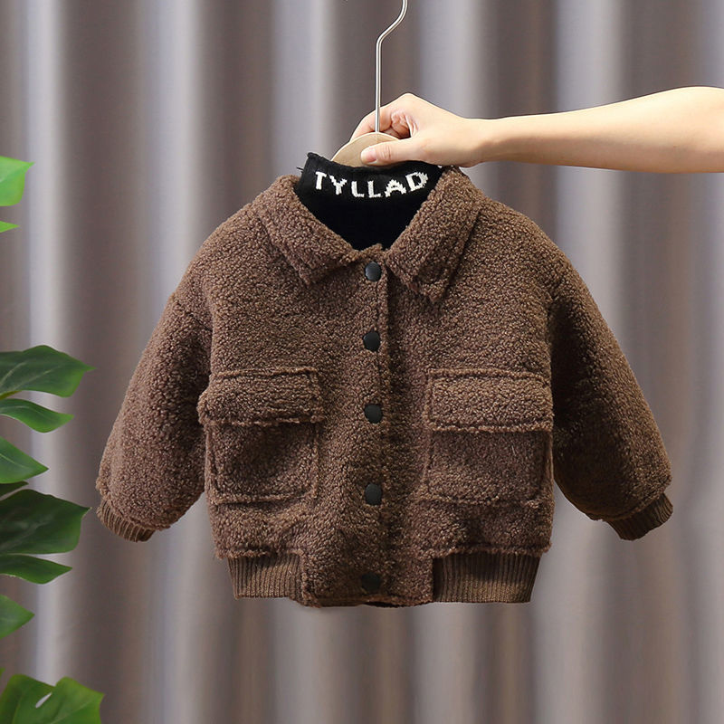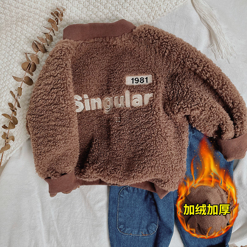 소년 코트 가을과 겨울 유행 기모 두꺼운 소년 아기 양가죽 겨울 자켓 어린이 잘 생긴 면 코트스토어 가기