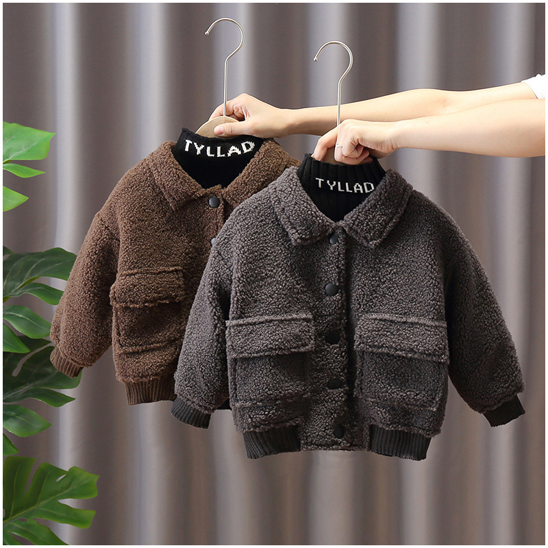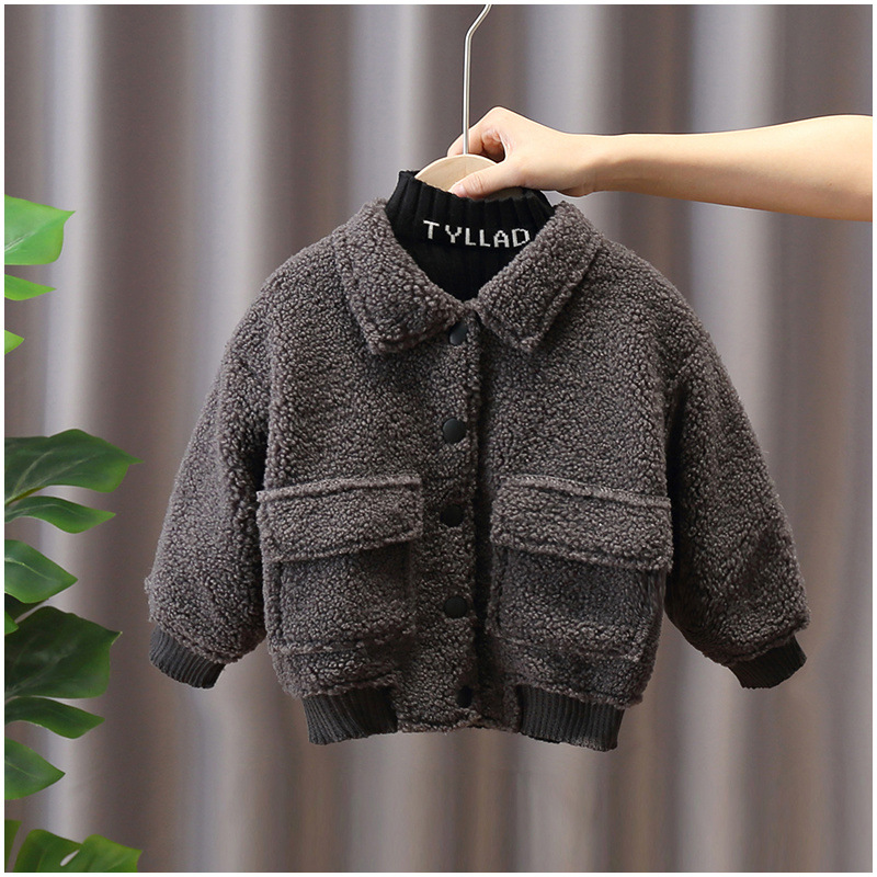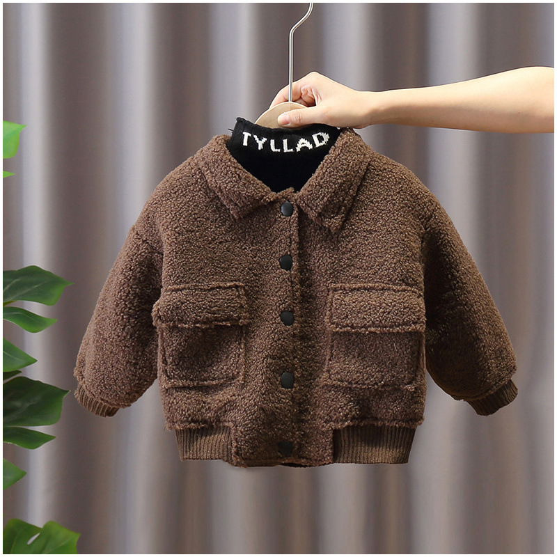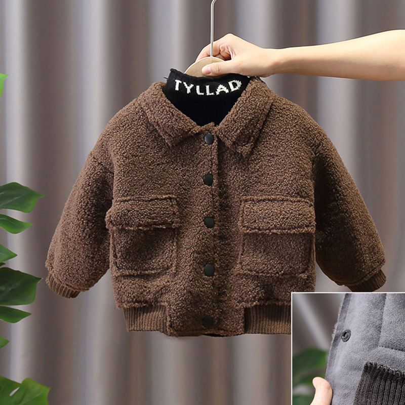 소년 코트 가을과 겨울 유행 기모 두꺼운 소년 아기 양가죽 겨울 자켓 어린이 잘 생긴 면 코트