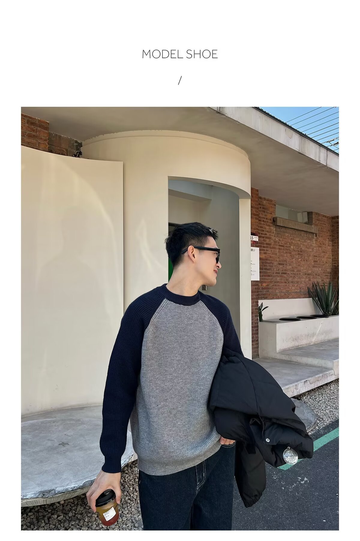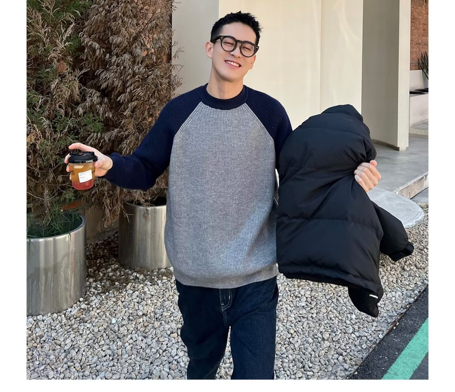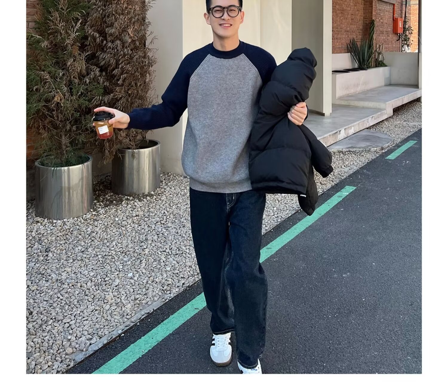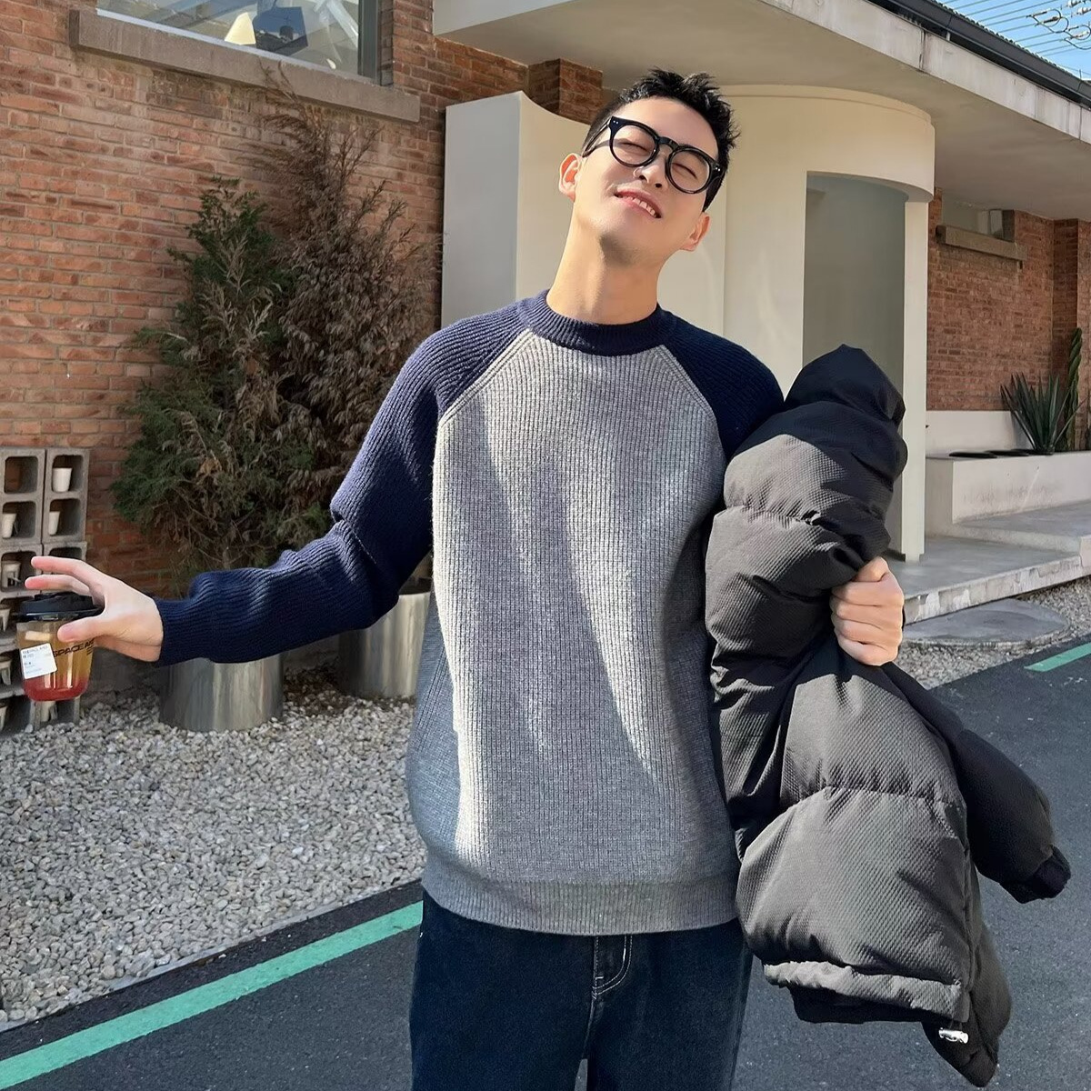 라운드넥 스웨터 남성용 가을 겨울 트렌디 브랜드 배색 풀오버 보온 이너웨어 캐주얼 두꺼운 니트웨어 남성용스토어 가기