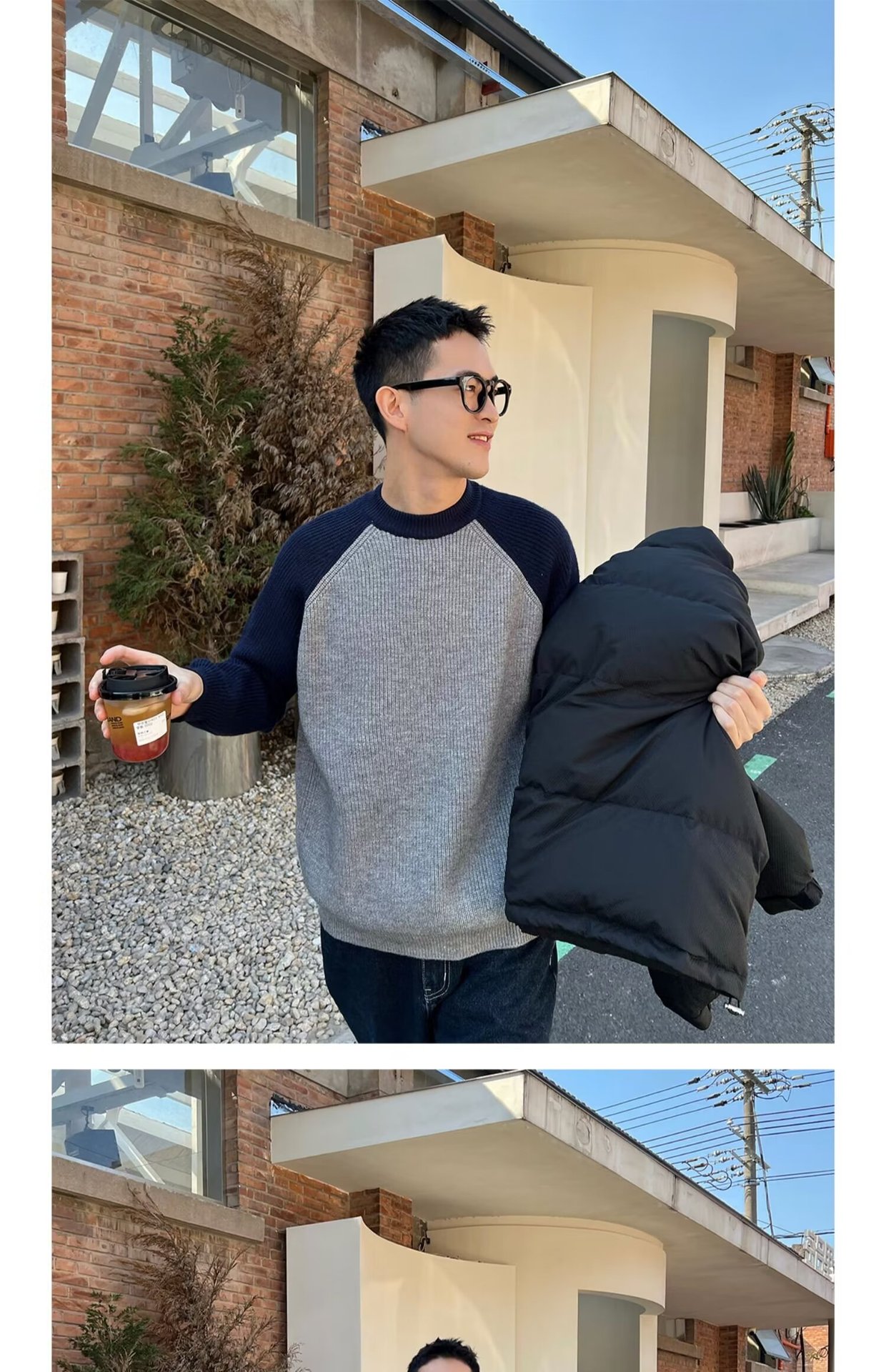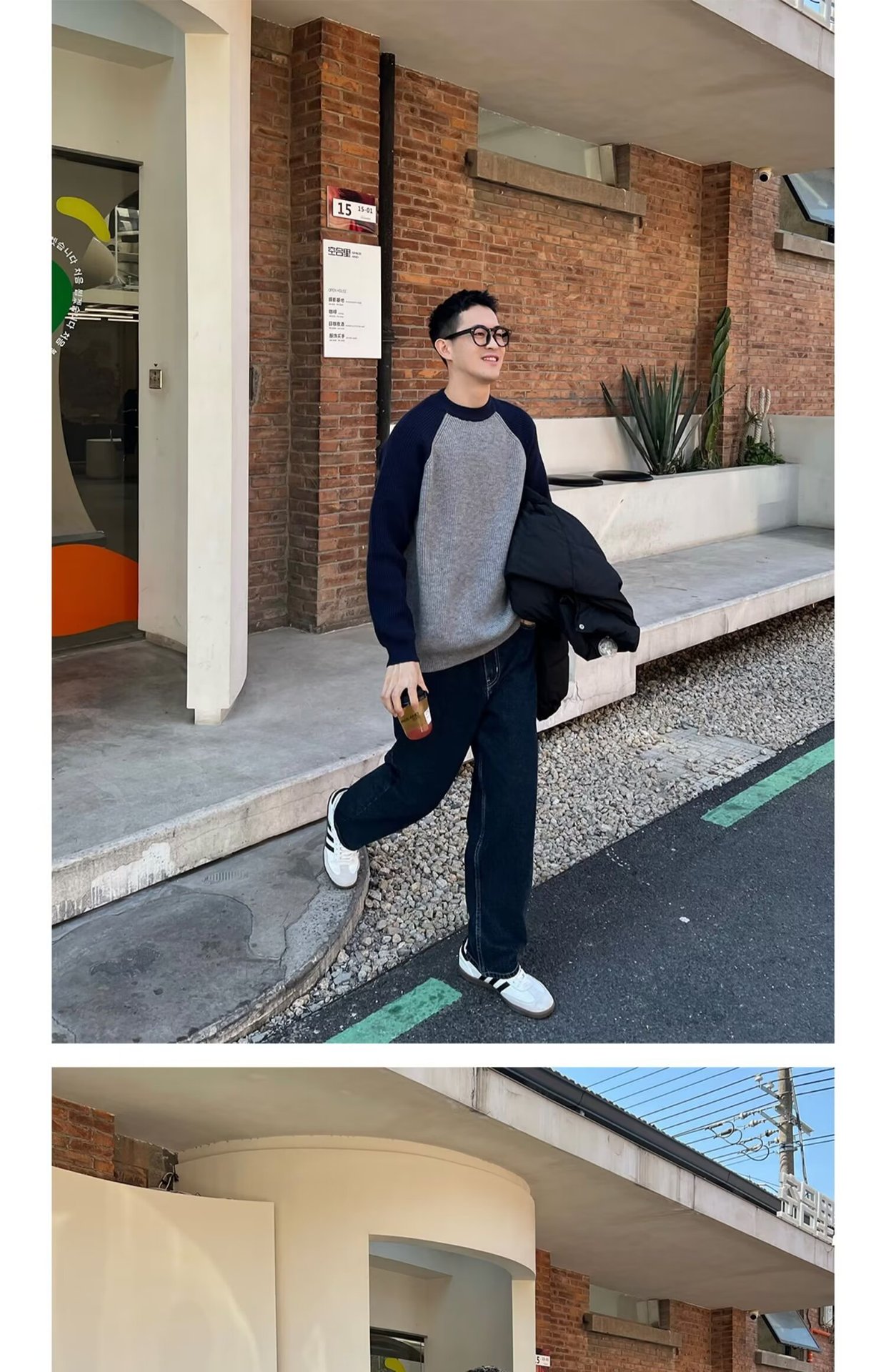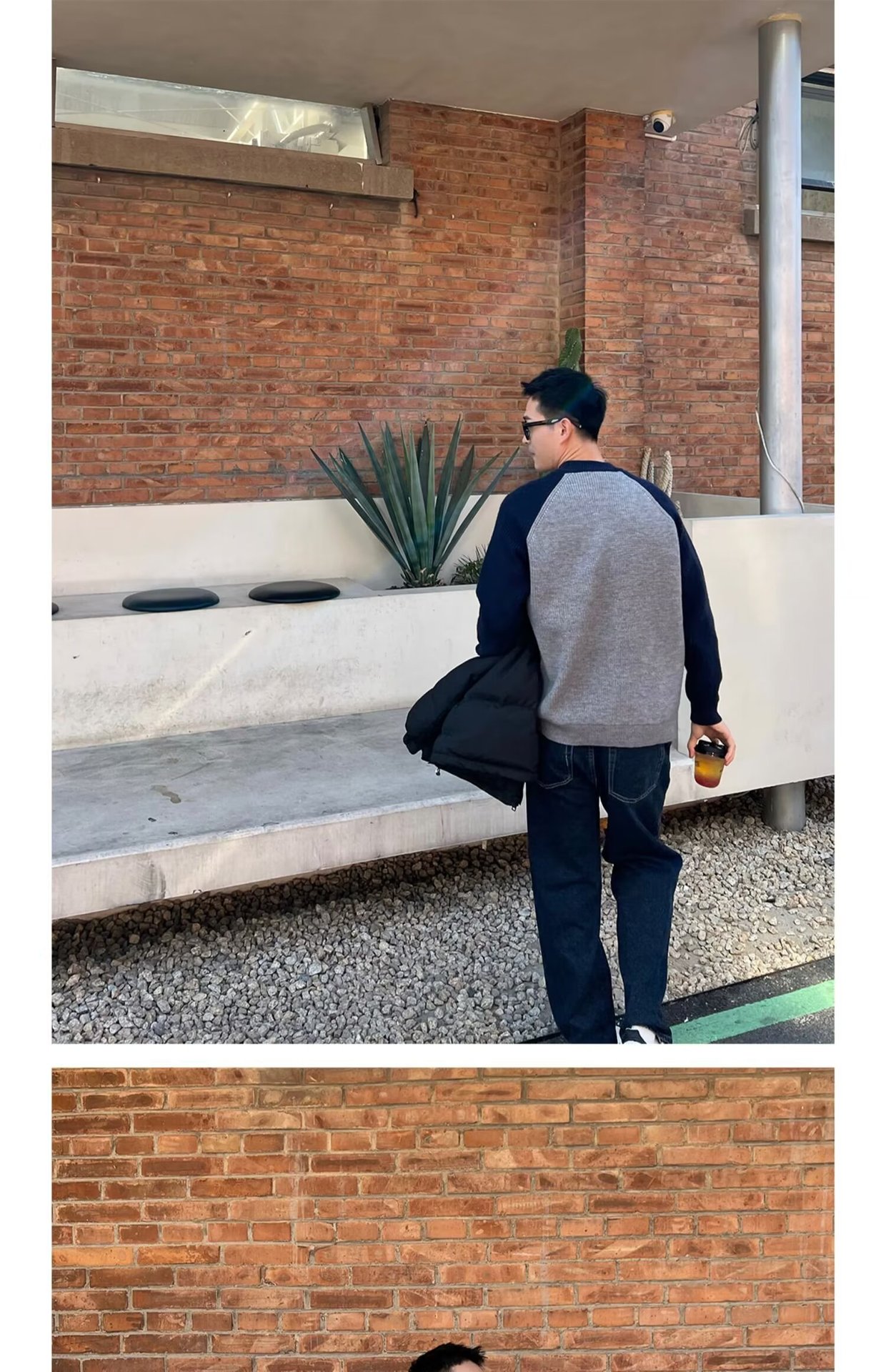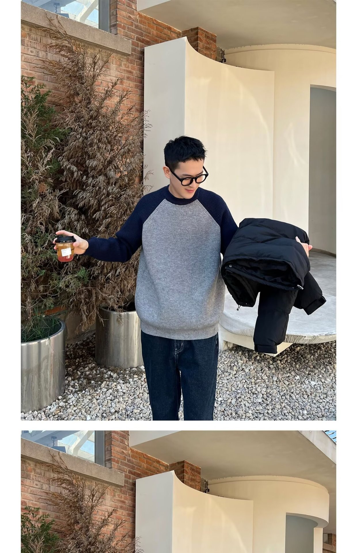 라운드넥 스웨터 남성용 가을 겨울 트렌디 브랜드 배색 풀오버 보온 이너웨어 캐주얼 두꺼운 니트웨어 남성용스토어 가기