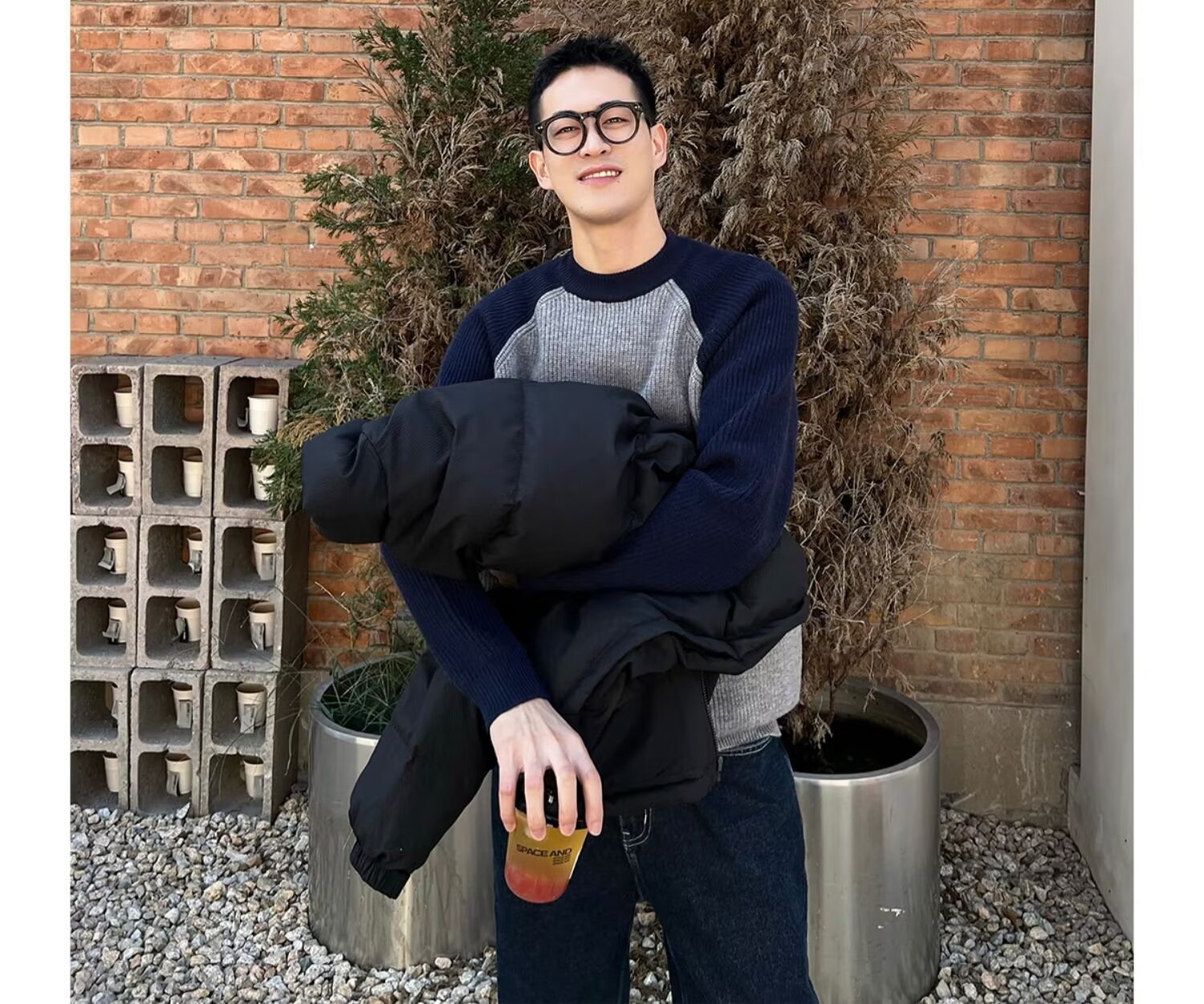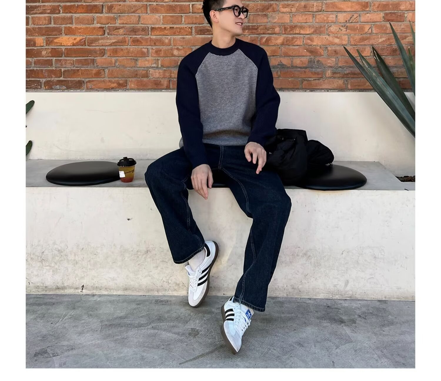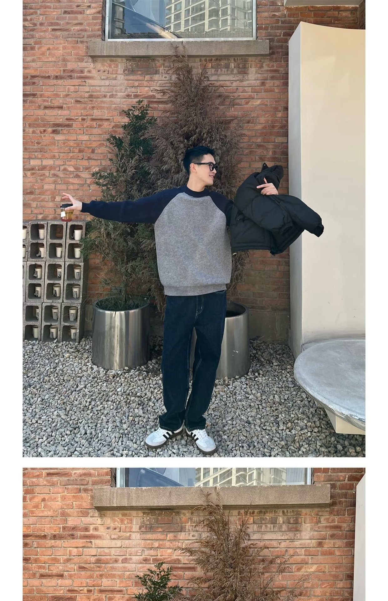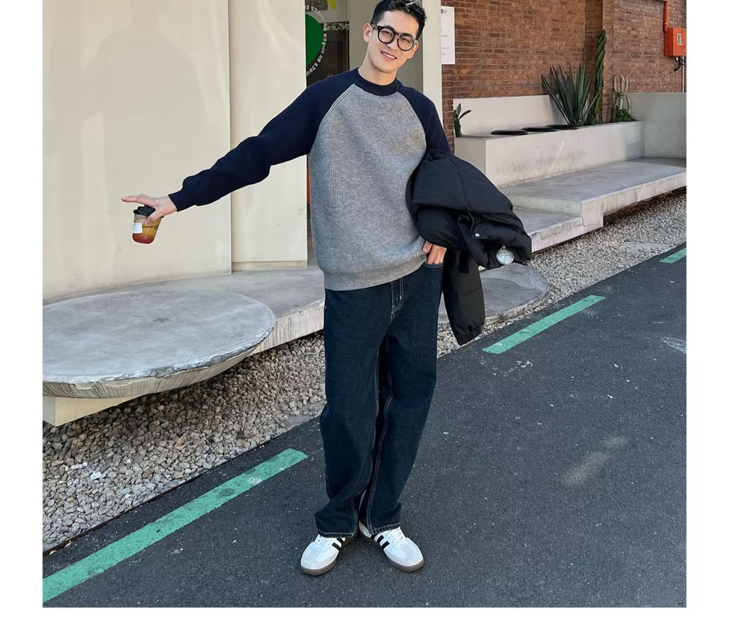 라운드넥 스웨터 남성용 가을 겨울 트렌디 브랜드 배색 풀오버 보온 이너웨어 캐주얼 두꺼운 니트웨어 남성용스토어 가기