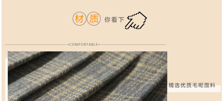 • 새로운 회색 격자 무늬 모직 원피스