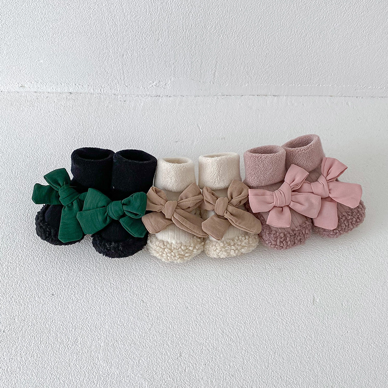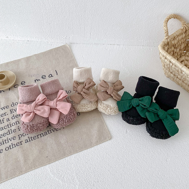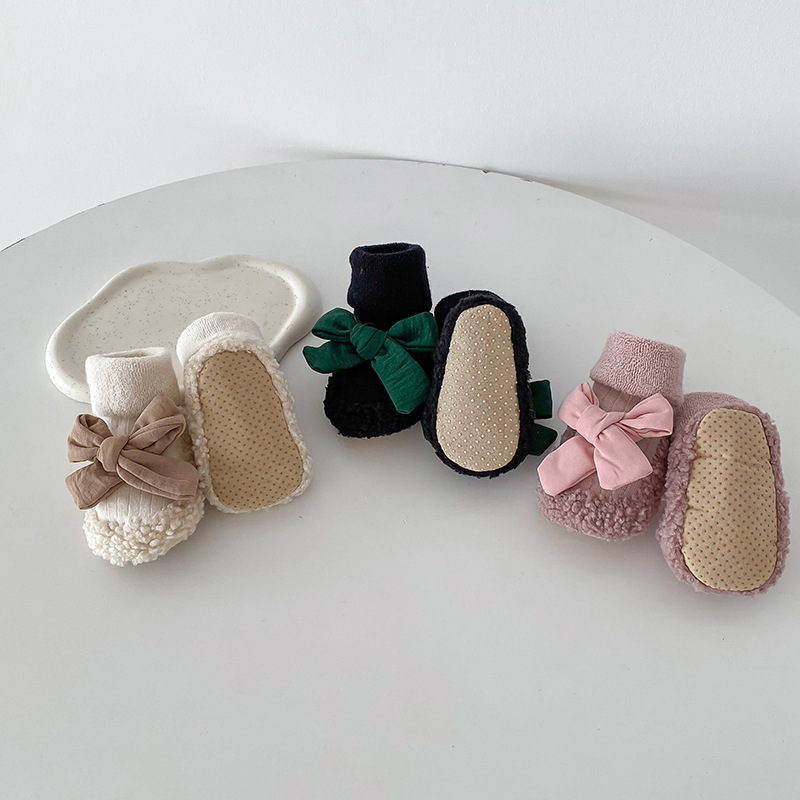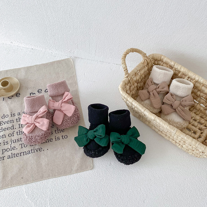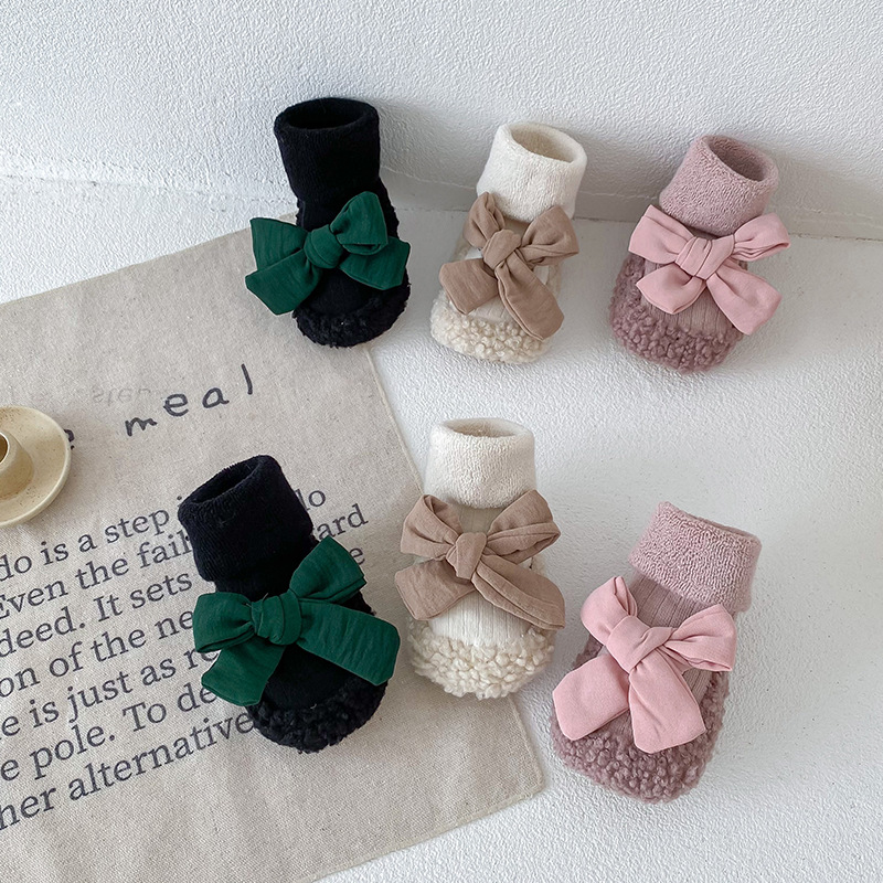 아기 바닥 양말 가을과 겨울 한국 스타일 Bowknot 양말 신발 아기 유아 양말 외국 스타일 공주 두꺼운 중간 길이 양말스토어 가기