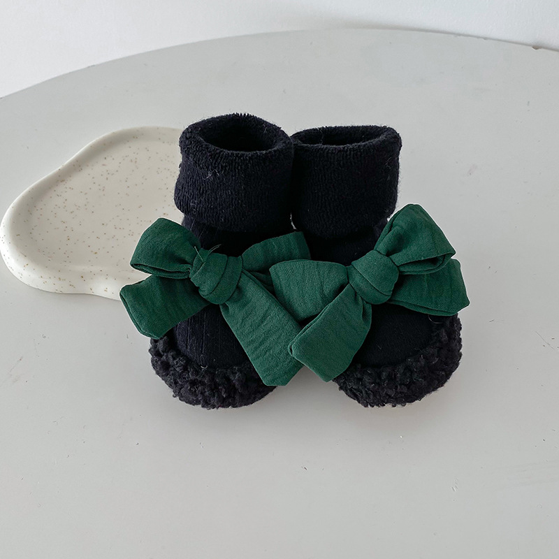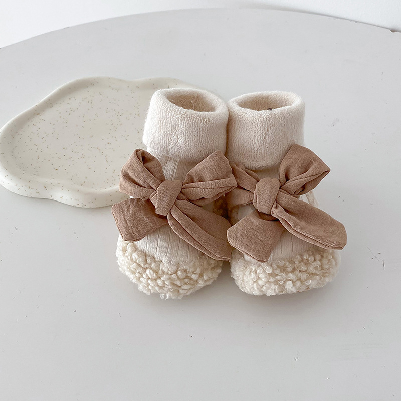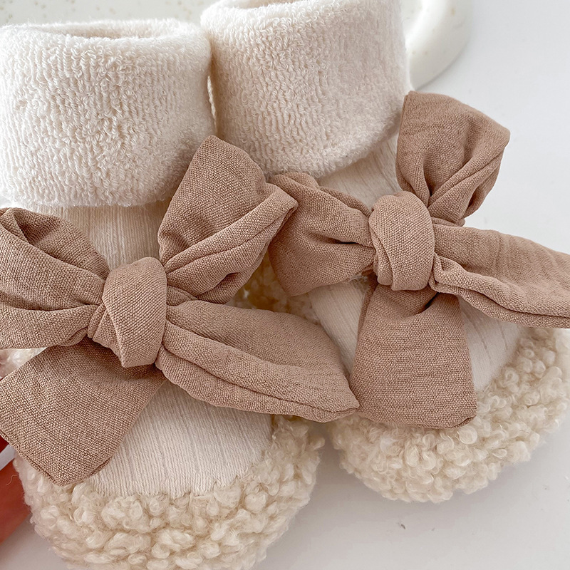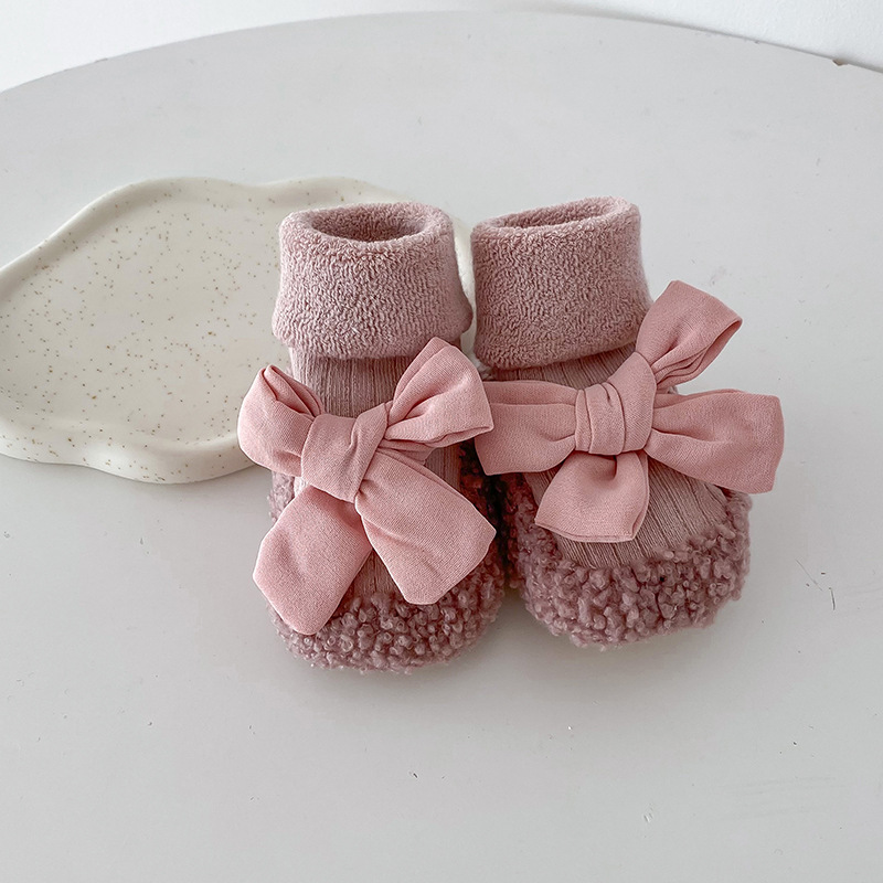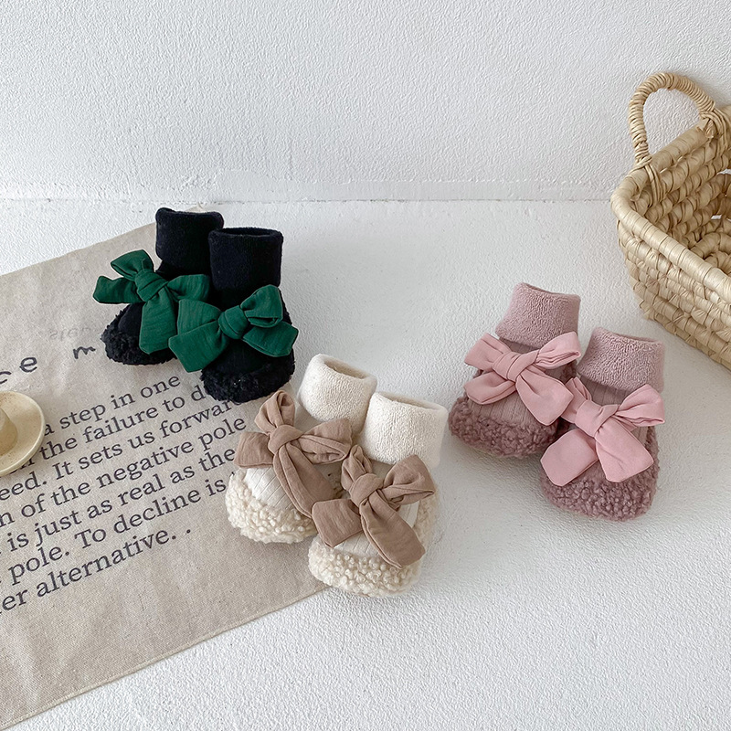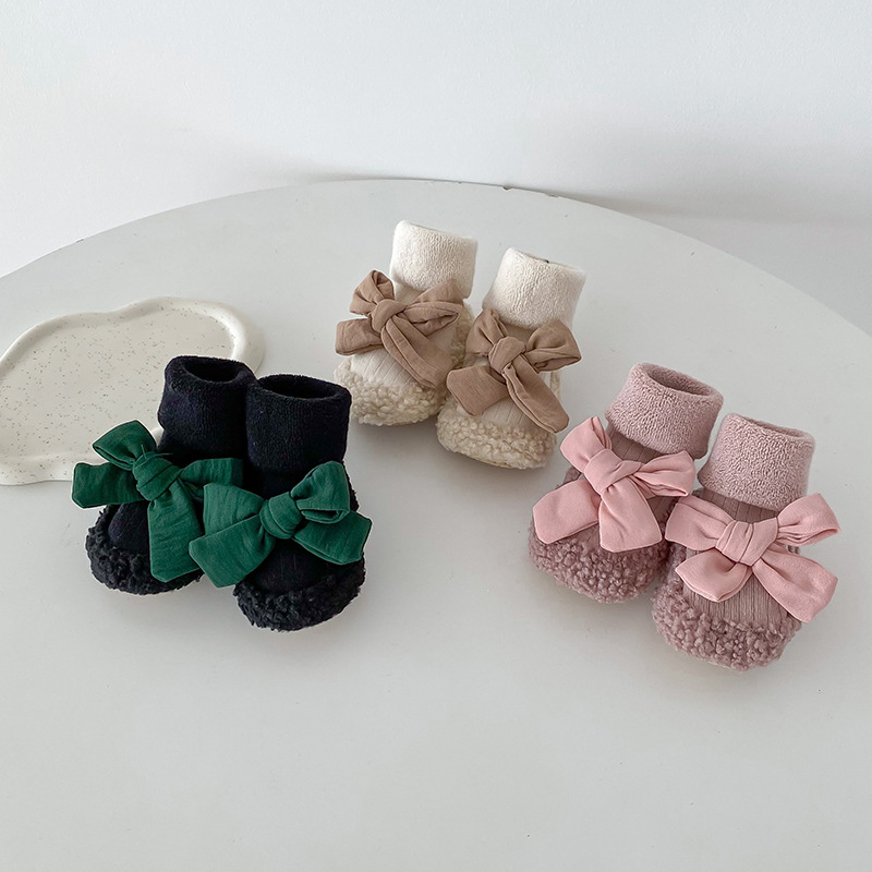 아기 바닥 양말 가을과 겨울 한국 스타일 Bowknot 양말 신발 아기 유아 양말 외국 스타일 공주 두꺼운 중간 길이 양말스토어 가기
