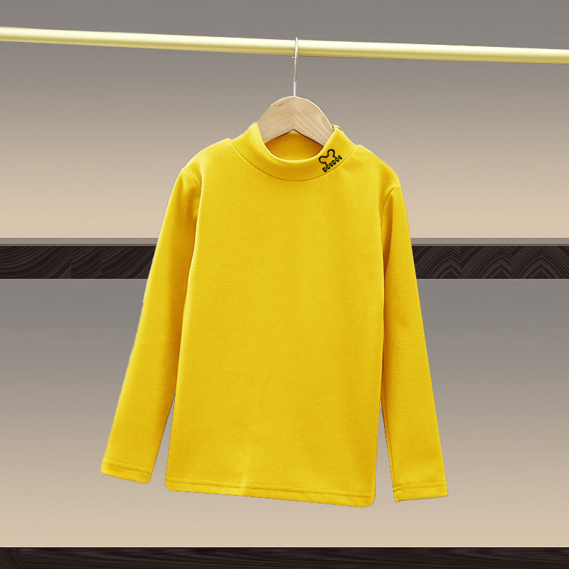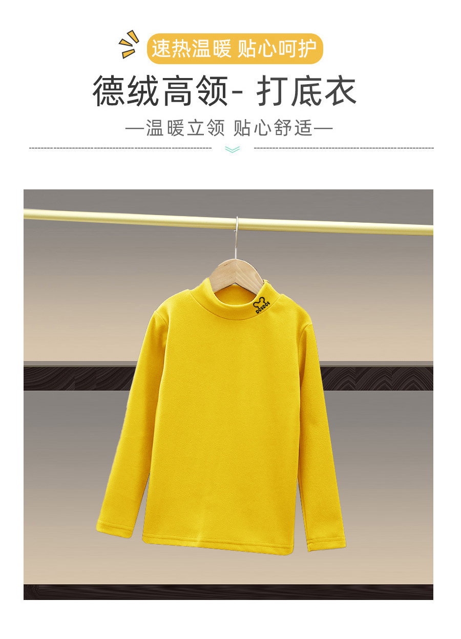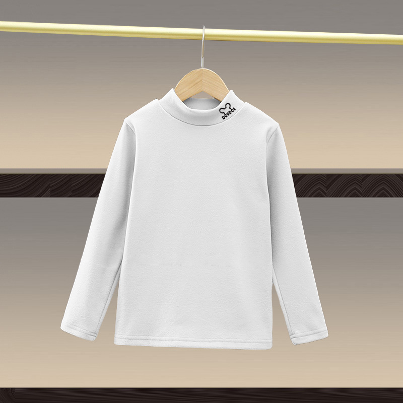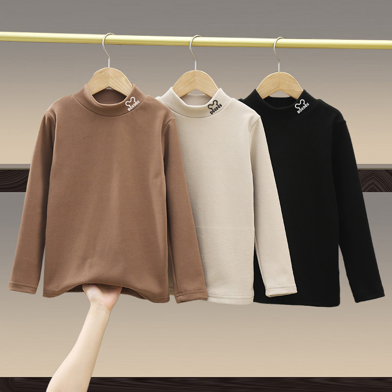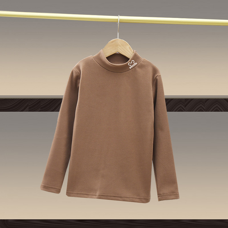 CUHK 아동용 겨울 의류 벨벳 세미 하이 칼라 보텀 셔츠 3-12 세 소년과 소녀를위한 인쇄 목선이있는 긴 소매 봄과 가을 t