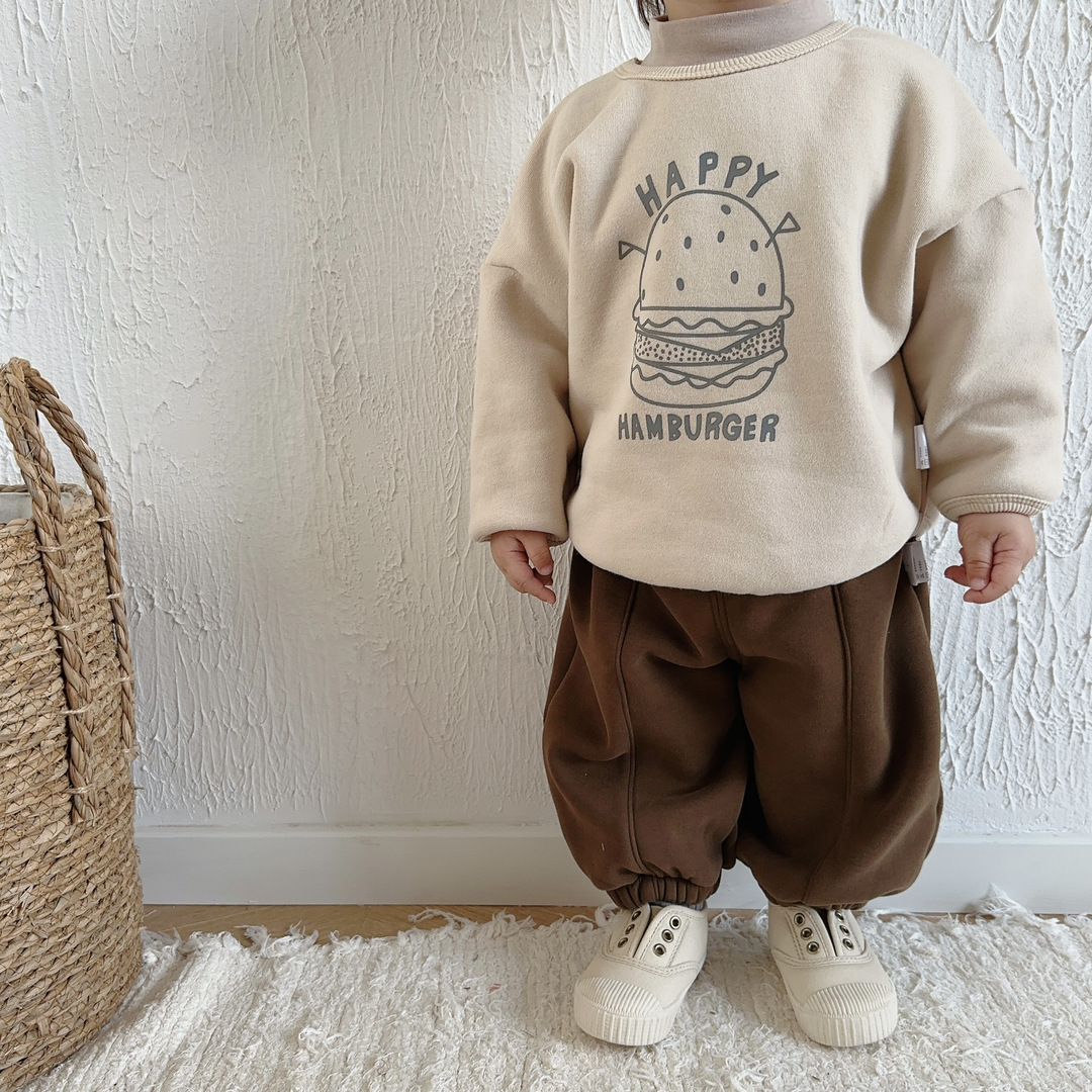 아기의 가을과 겨울 기모 큰 PP 바지 소년과 소녀를위한 겨울 착용 바지 어린이를위한 스포츠 바지 어린이를위한 따뜻한 바지 아기 겉옷스토어 가기