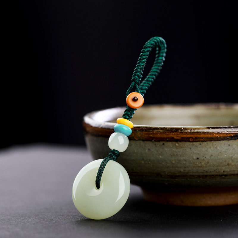 남성과 여성을위한 천연 Hetian 옥 안전 버클 자동차 키 펜던트 옥 자동차 액세서리 펜던트 휴일 선물