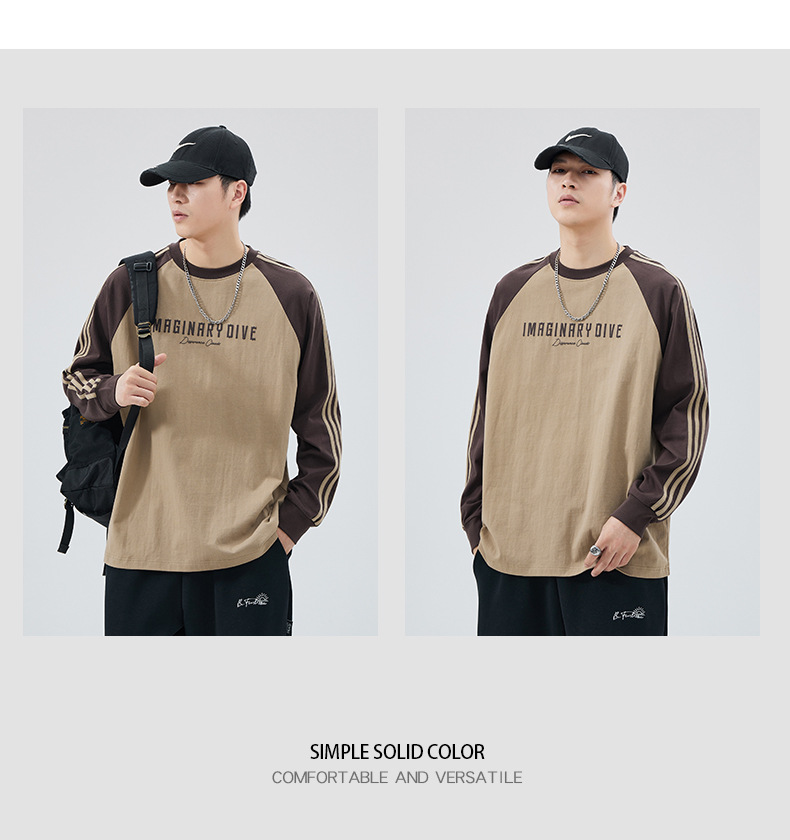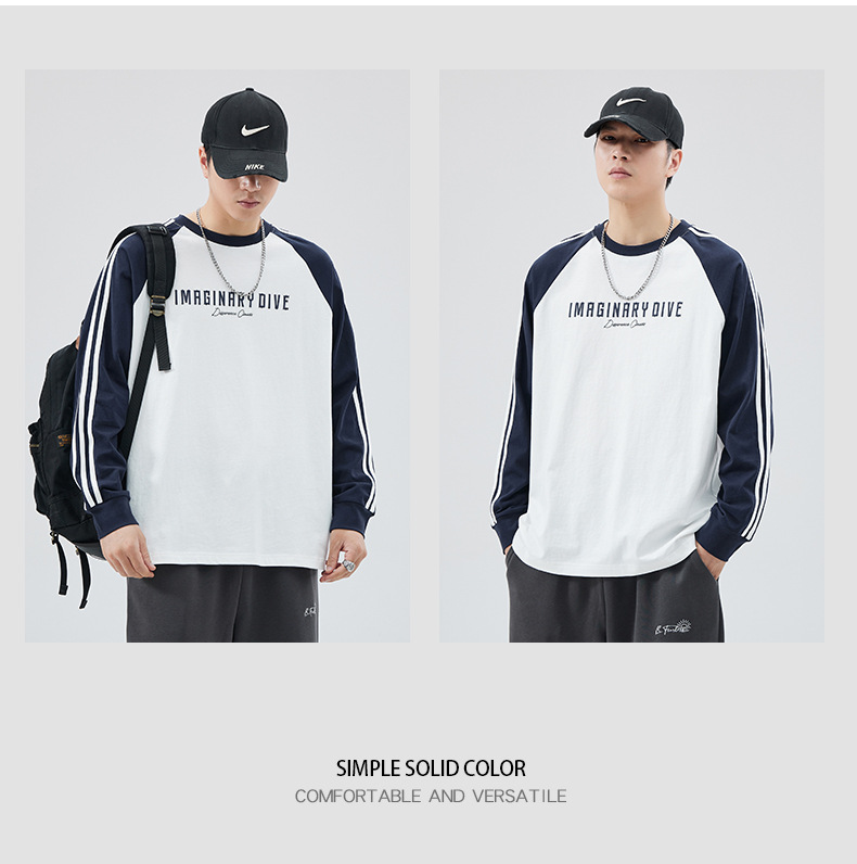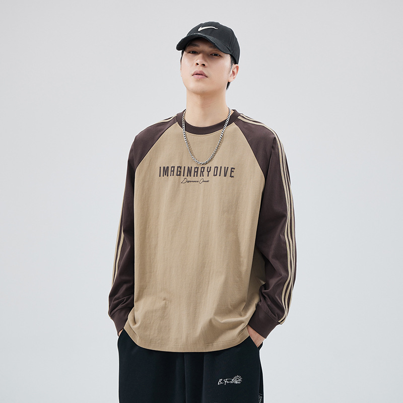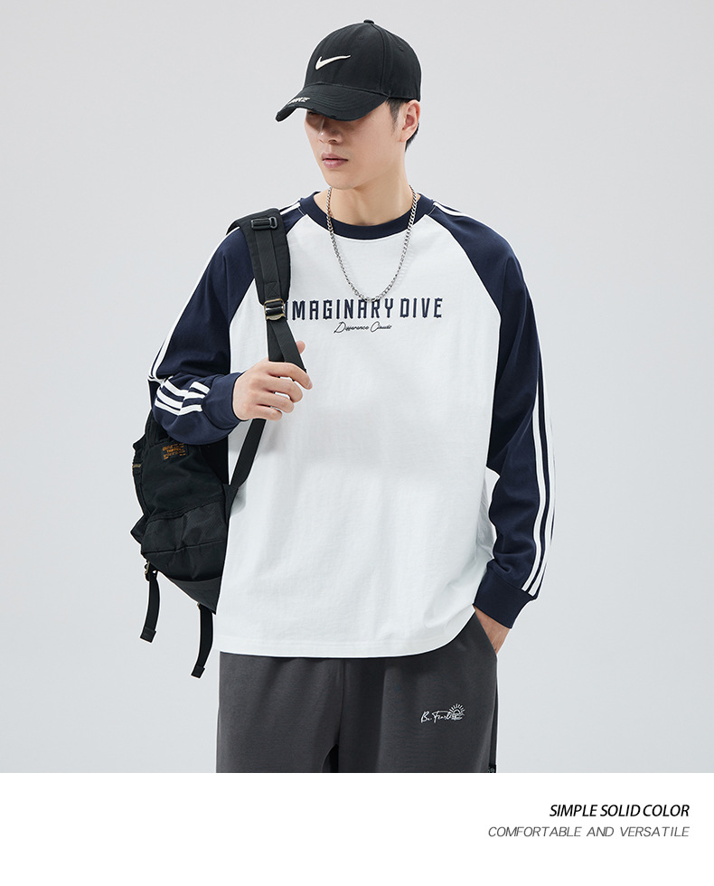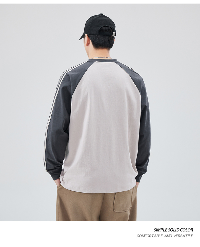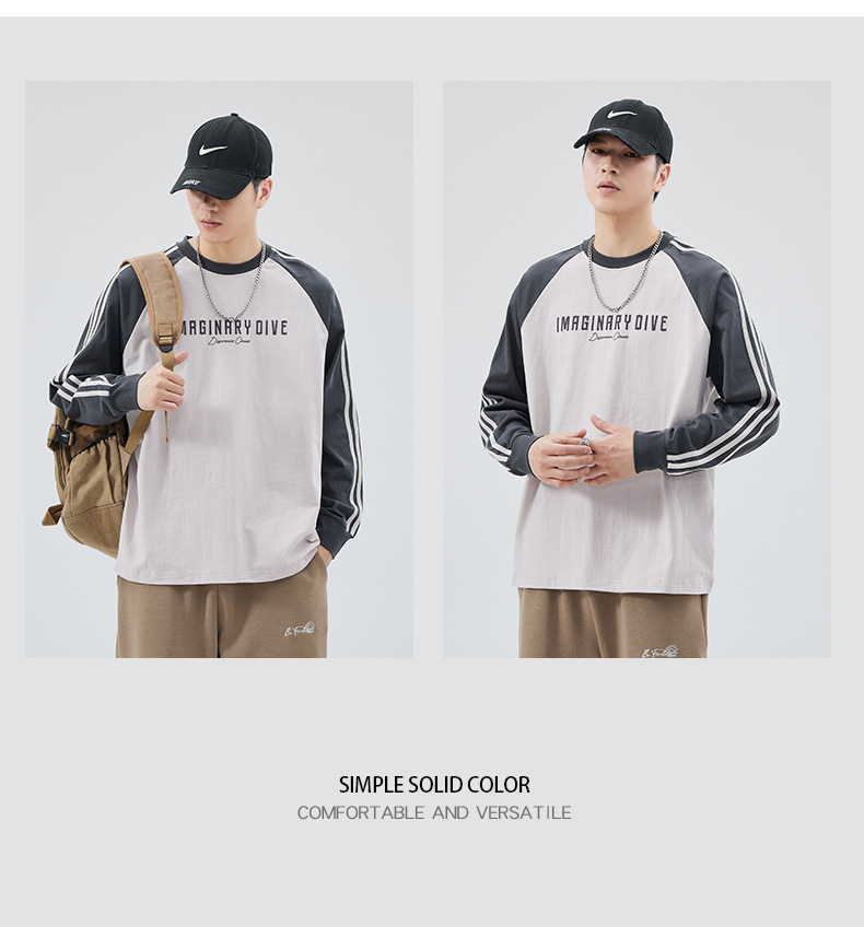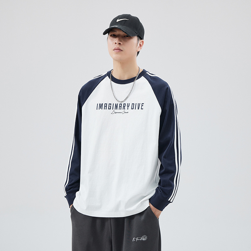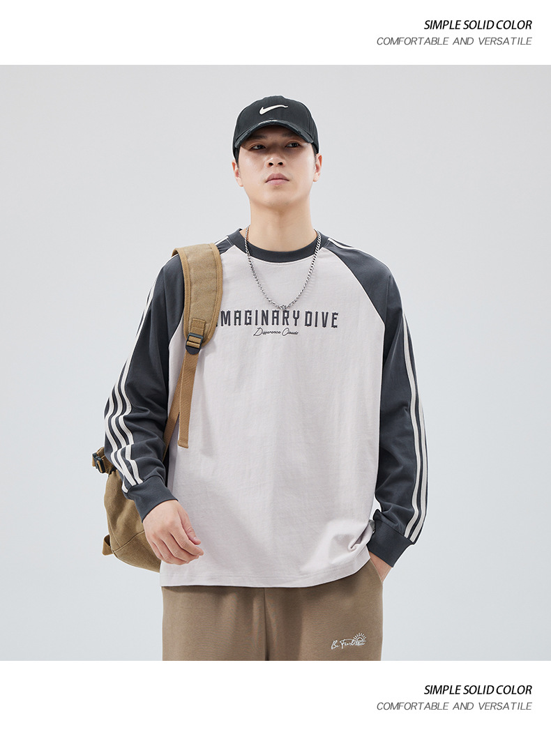 가을 유행 쓰리 바 스포츠 라글란 긴팔 티셔츠 남자의 느슨한 플러스 사이즈 봄과 가을 라운드 넥 베이스 셔츠 스웨터 유행스토어 가기