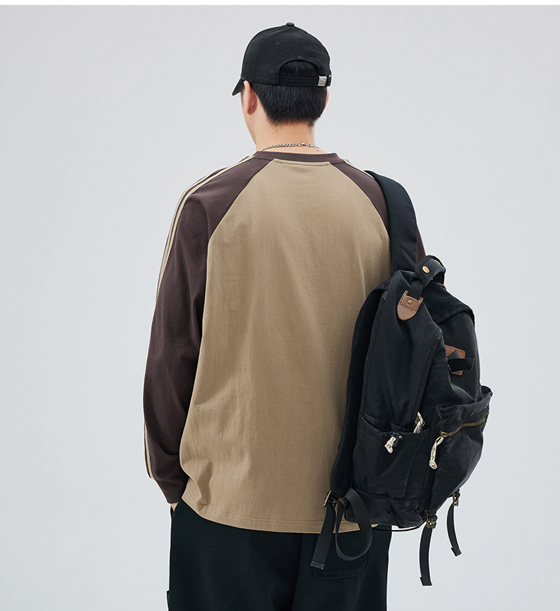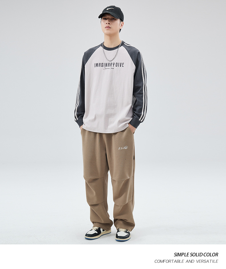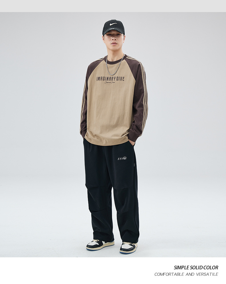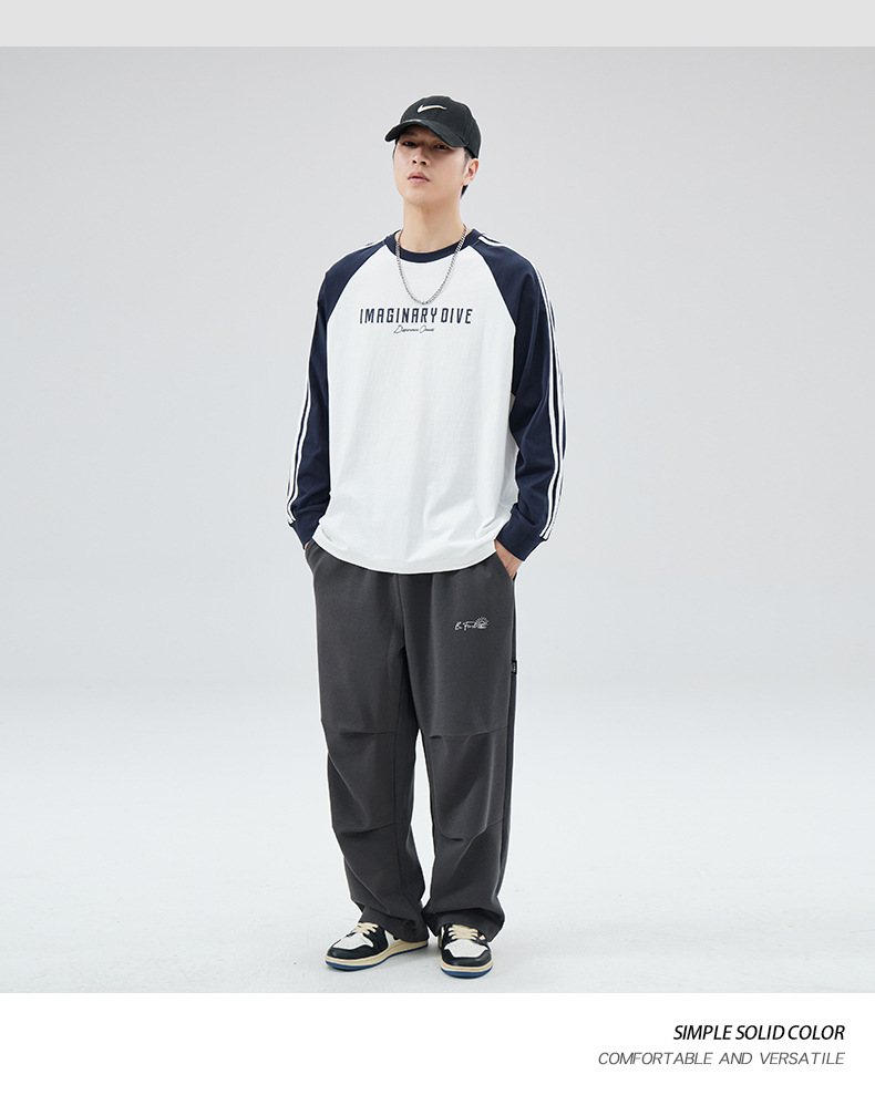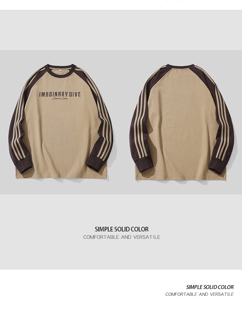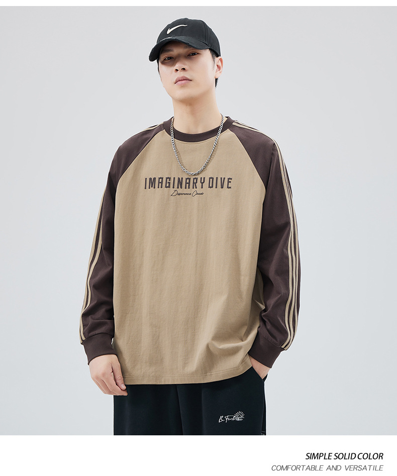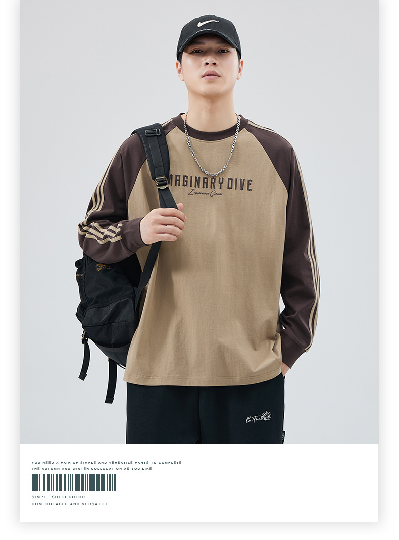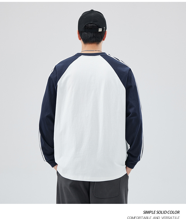 가을 유행 쓰리 바 스포츠 라글란 긴팔 티셔츠 남자의 느슨한 플러스 사이즈 봄과 가을 라운드 넥 베이스 셔츠 스웨터 유행스토어 가기