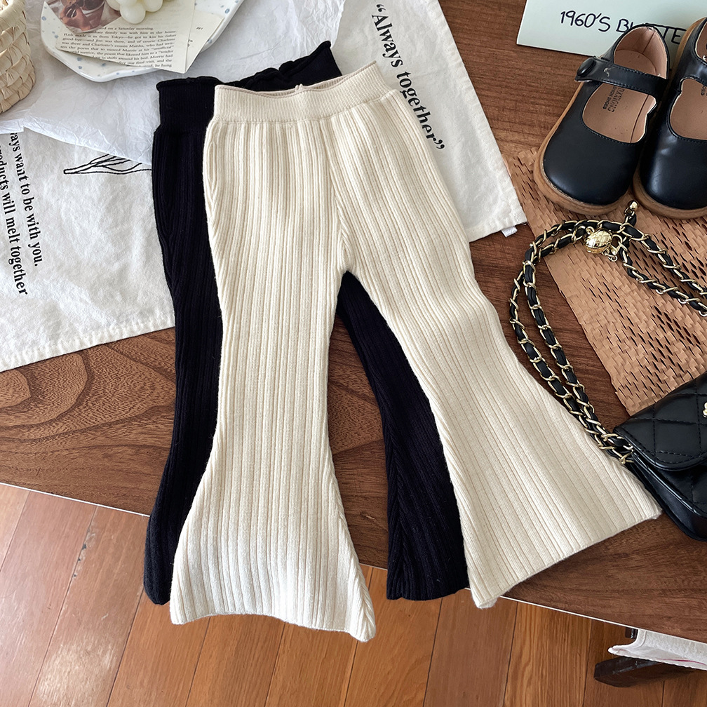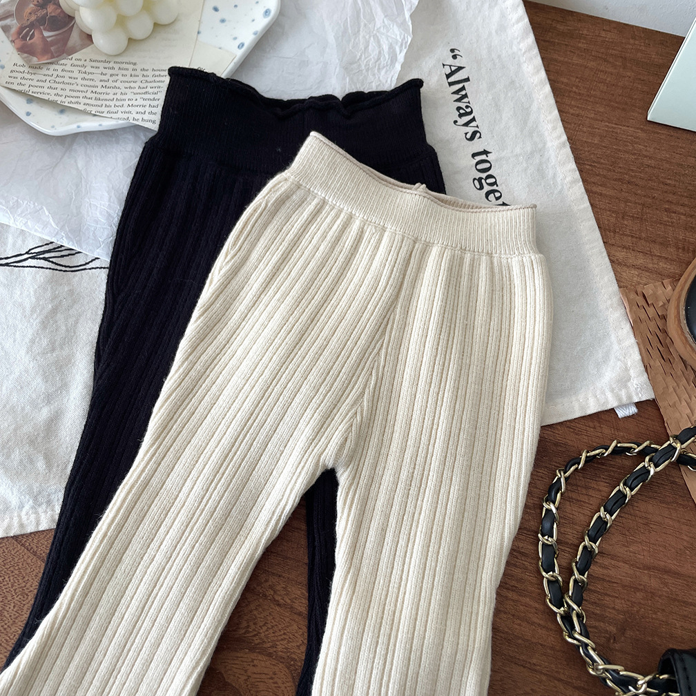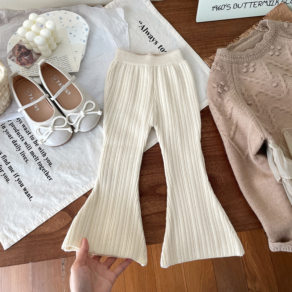 가을과 겨울 여아 울 바지 유행 아기 니트 플레어 팬츠 스트레치 여아 두꺼운 바지 여성용 어린이 레깅스