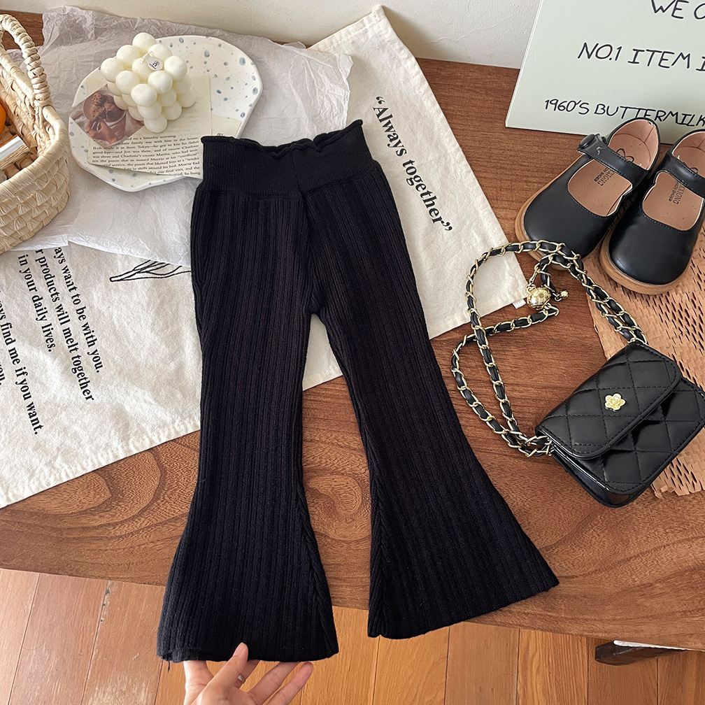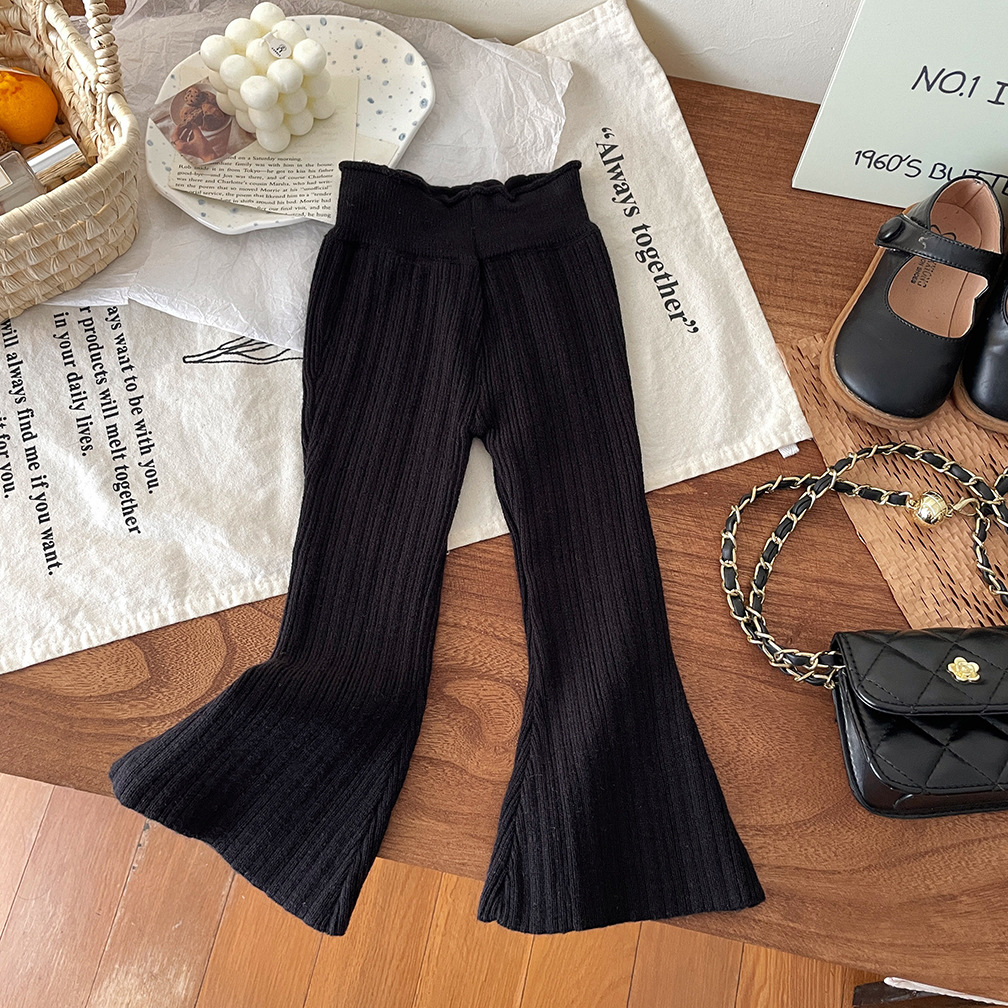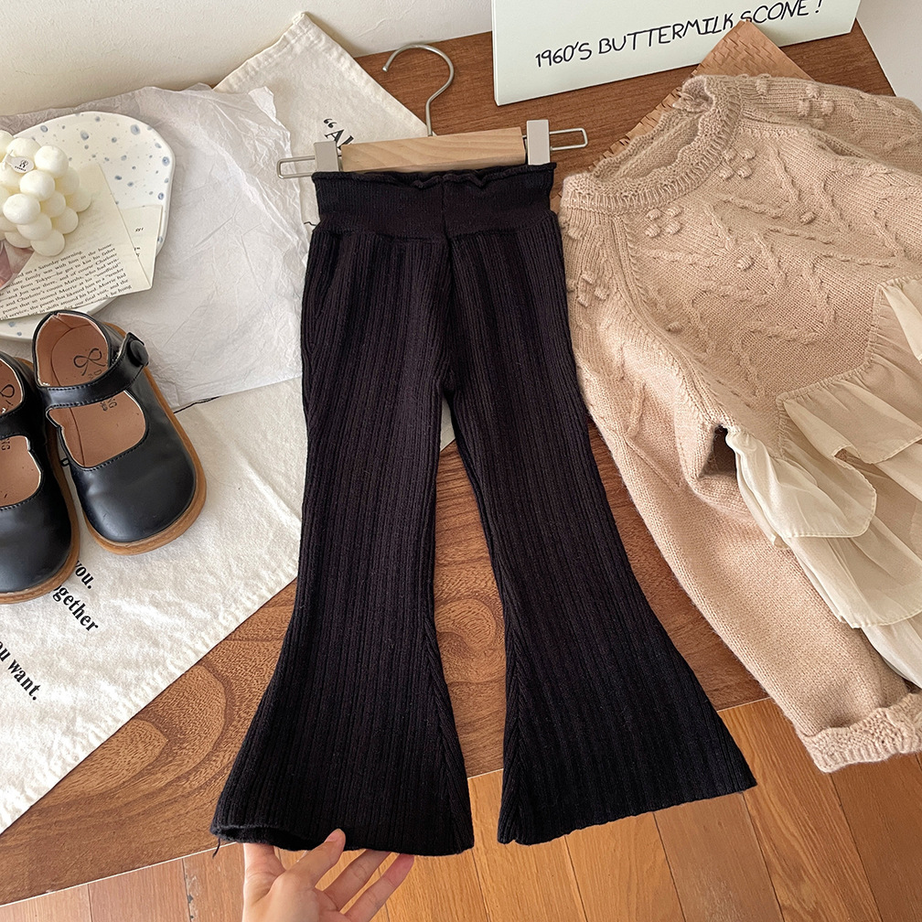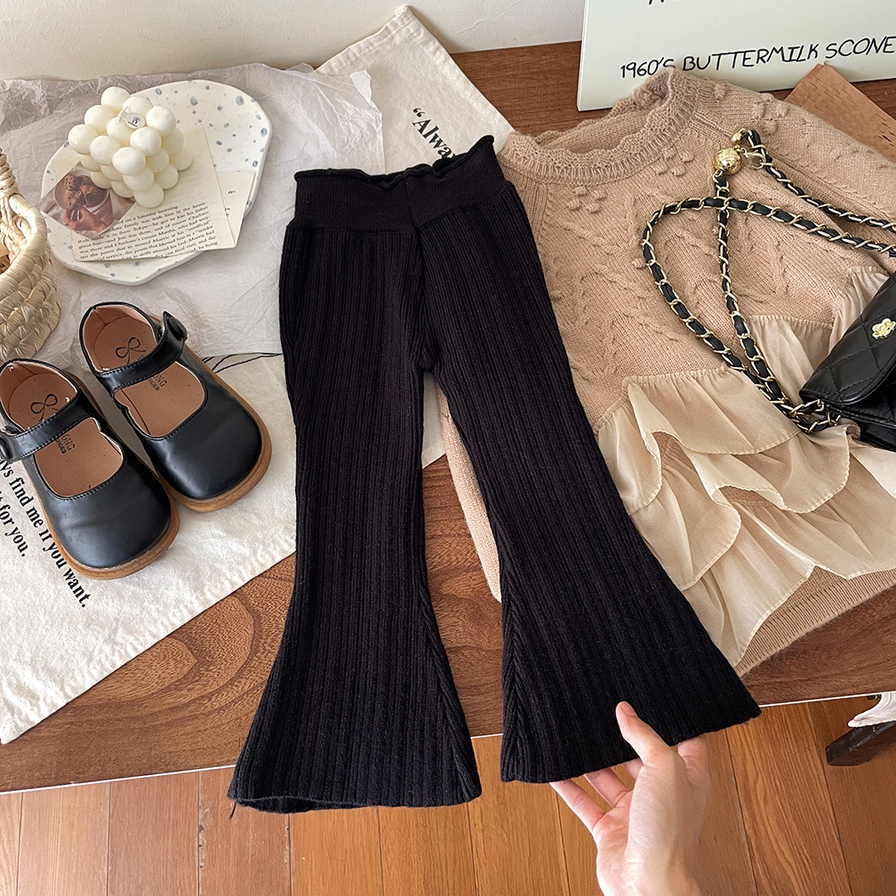 가을과 겨울 여아 울 바지 유행 아기 니트 플레어 팬츠 스트레치 여아 두꺼운 바지 여성용 어린이 레깅스