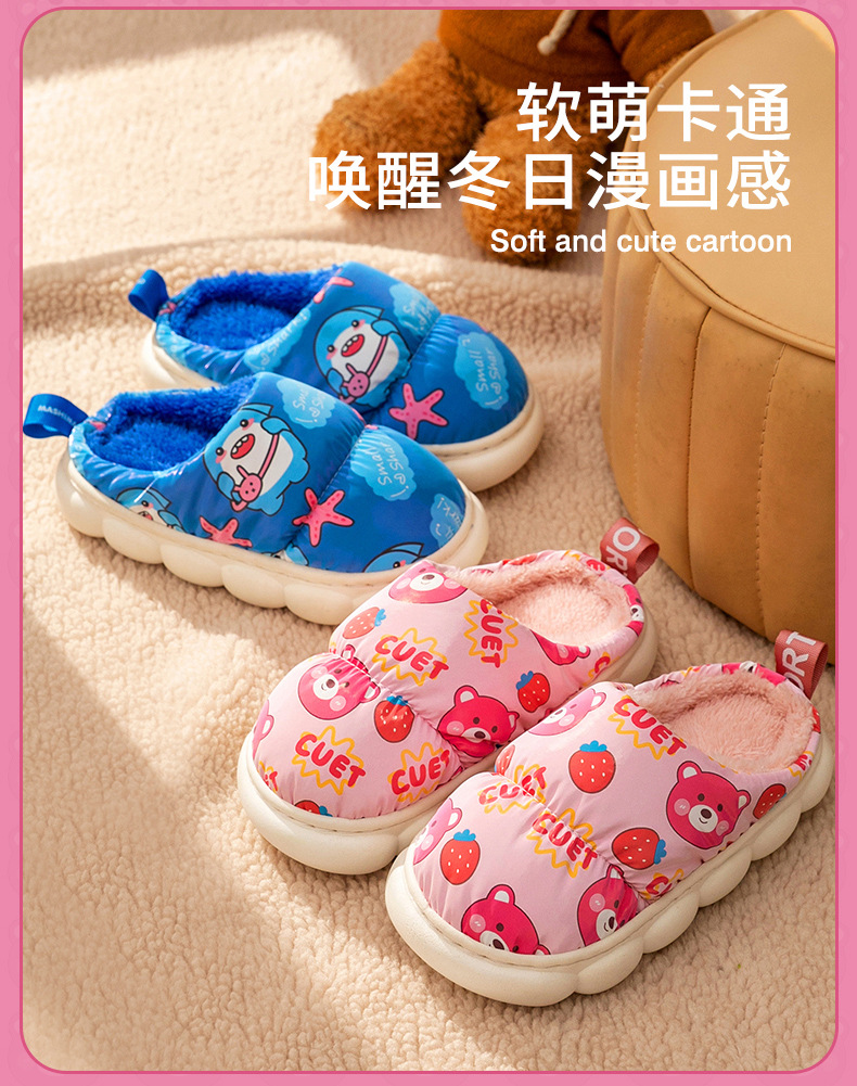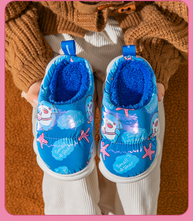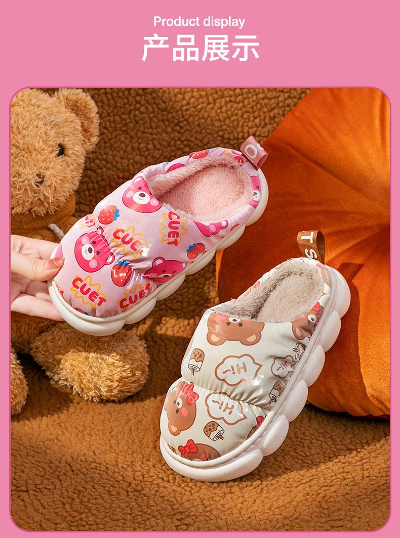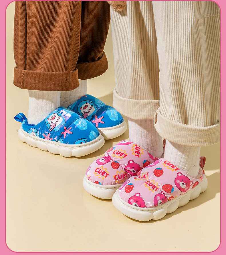 아빠 돼지 어린이 면 슬리퍼 겨울 남성과 여성의 중간 및 큰 어린이 다운 방수 슬리퍼 어린이 면 신발 홈 실내 신발스토어 가기