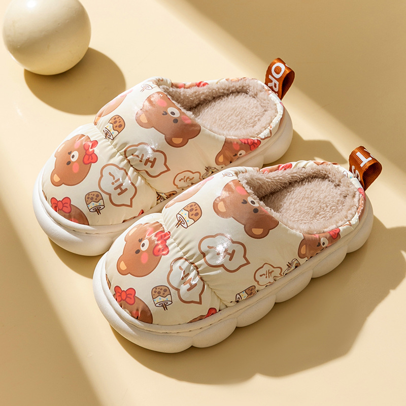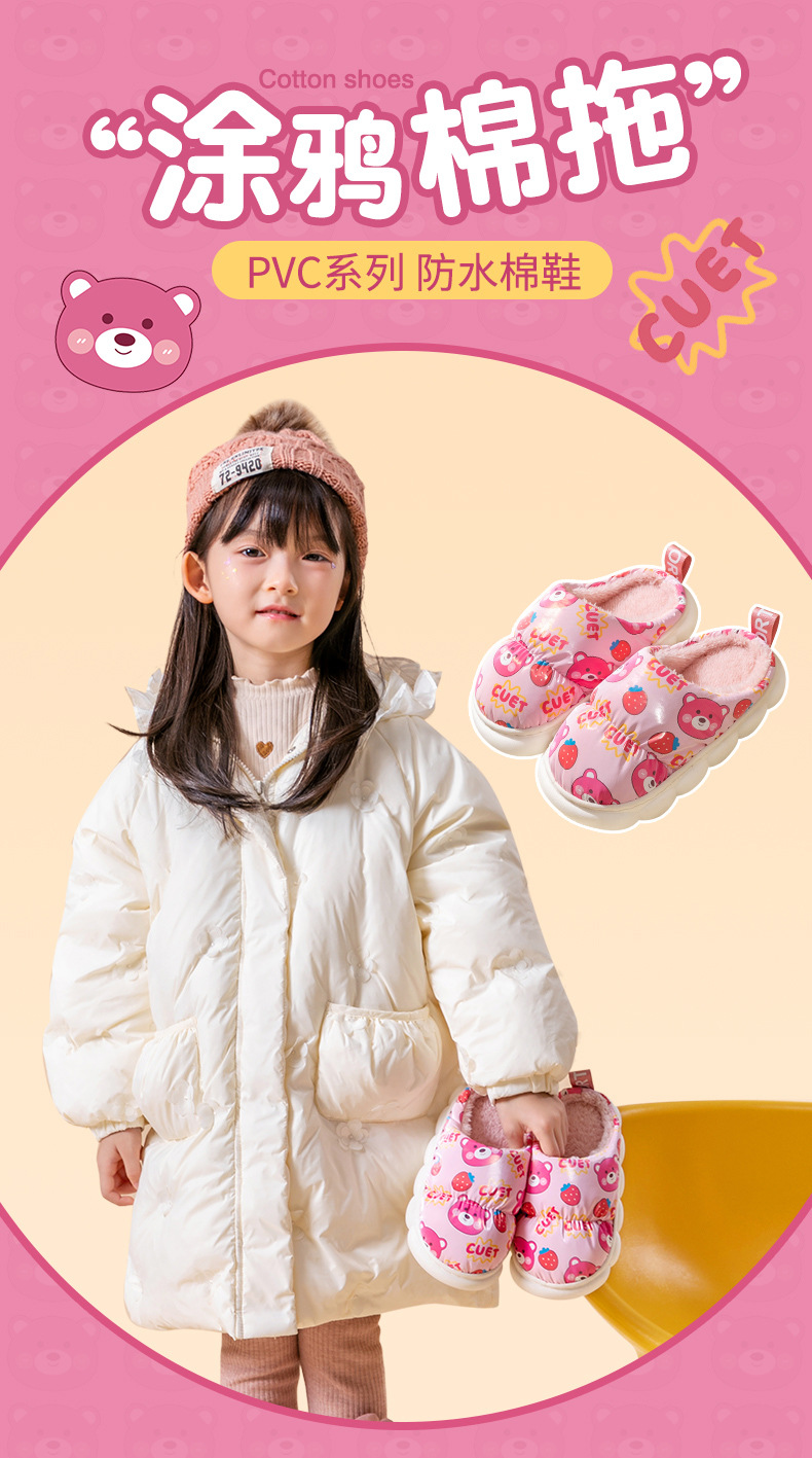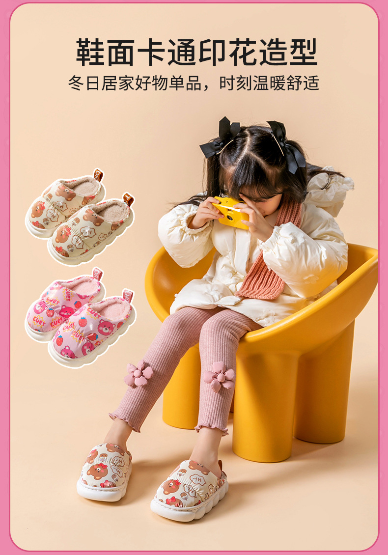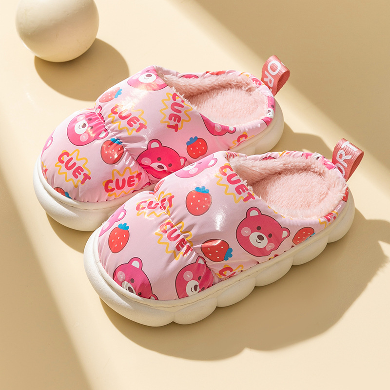 아빠 돼지 어린이 면 슬리퍼 겨울 남성과 여성의 중간 및 큰 어린이 다운 방수 슬리퍼 어린이 면 신발 홈 실내 신발스토어 가기