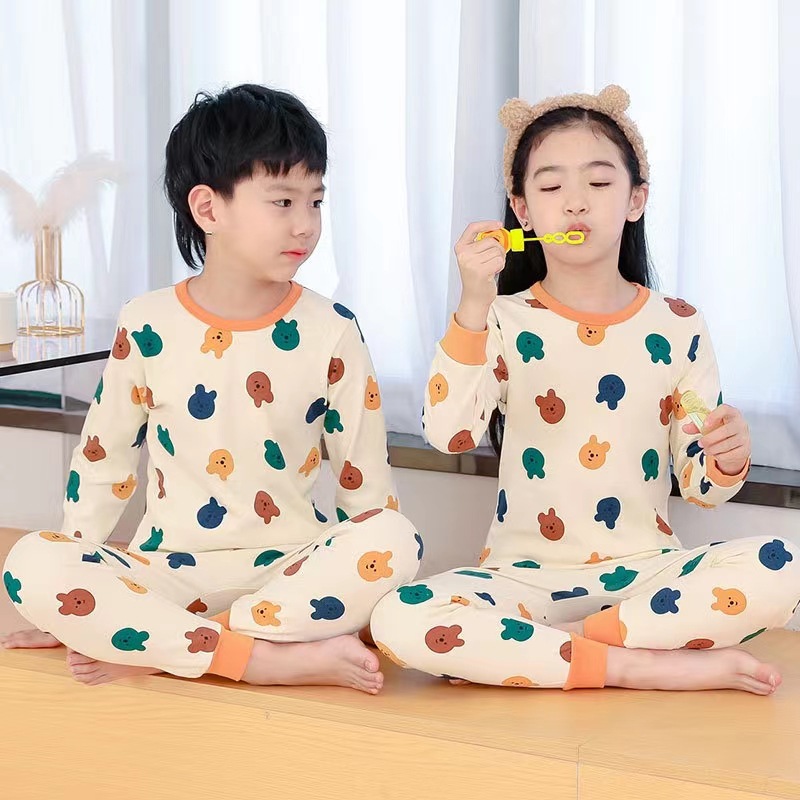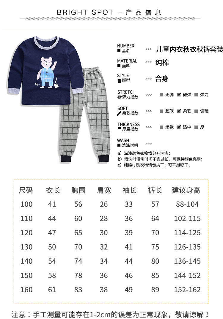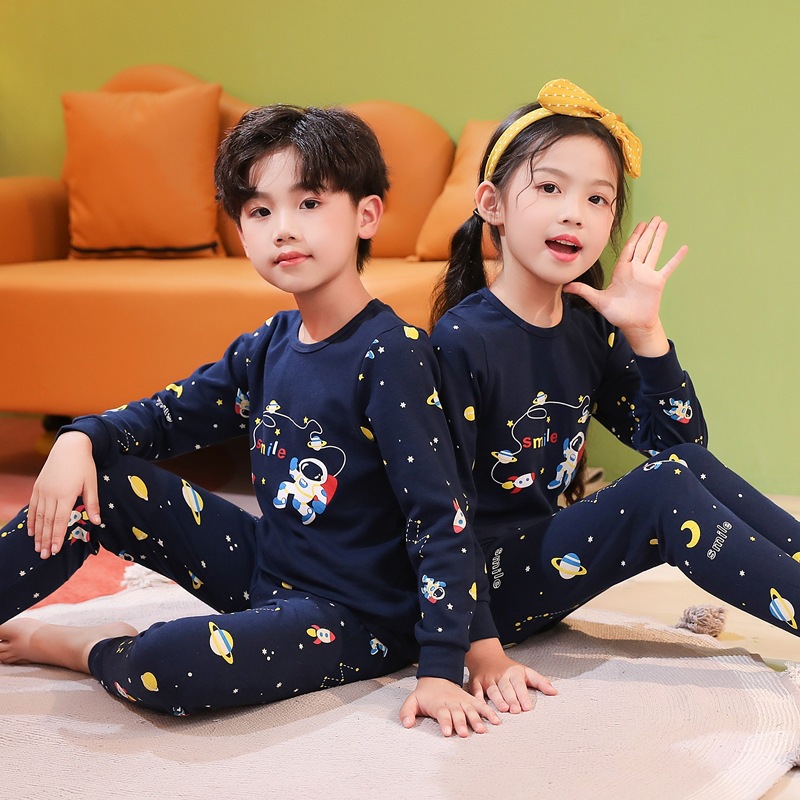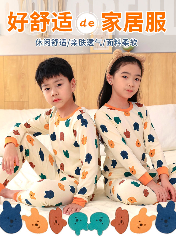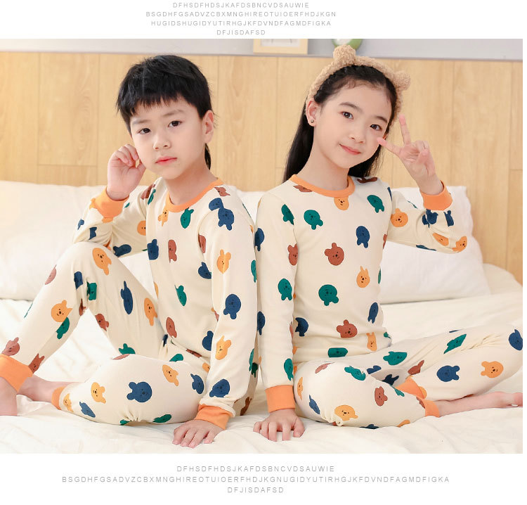 가을과 겨울 아동면 속옷 세트 소년과 소녀 가정복 따뜻한 땀 흡수 가을 옷과 바지 투피스 세트스토어 가기