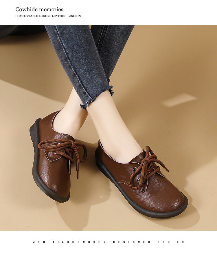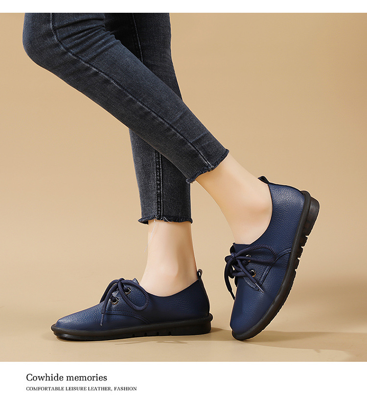 크로스 보더 봄과 가을 새로운 레이스 업 여성 신발 플랫 캐주얼 편안한 부드러운 바닥 플러스 사이즈 신발 어머니 부드러운 바닥 라운드 발가락 단일 레이어 신발