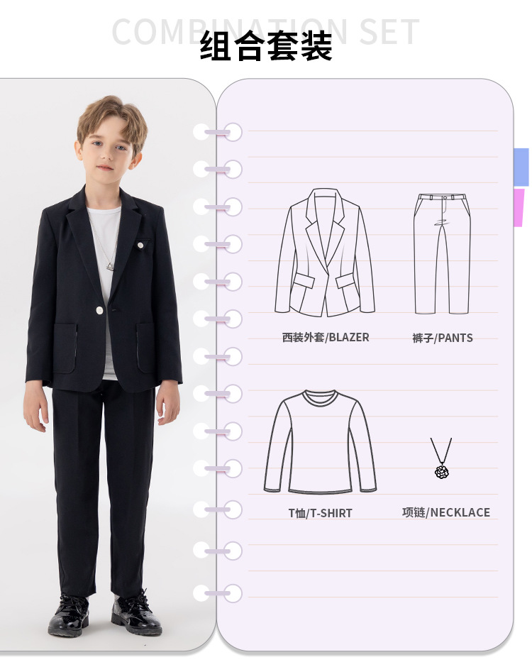 • 블랙 3 피스 (재킷 + 바지 + 목걸이)
