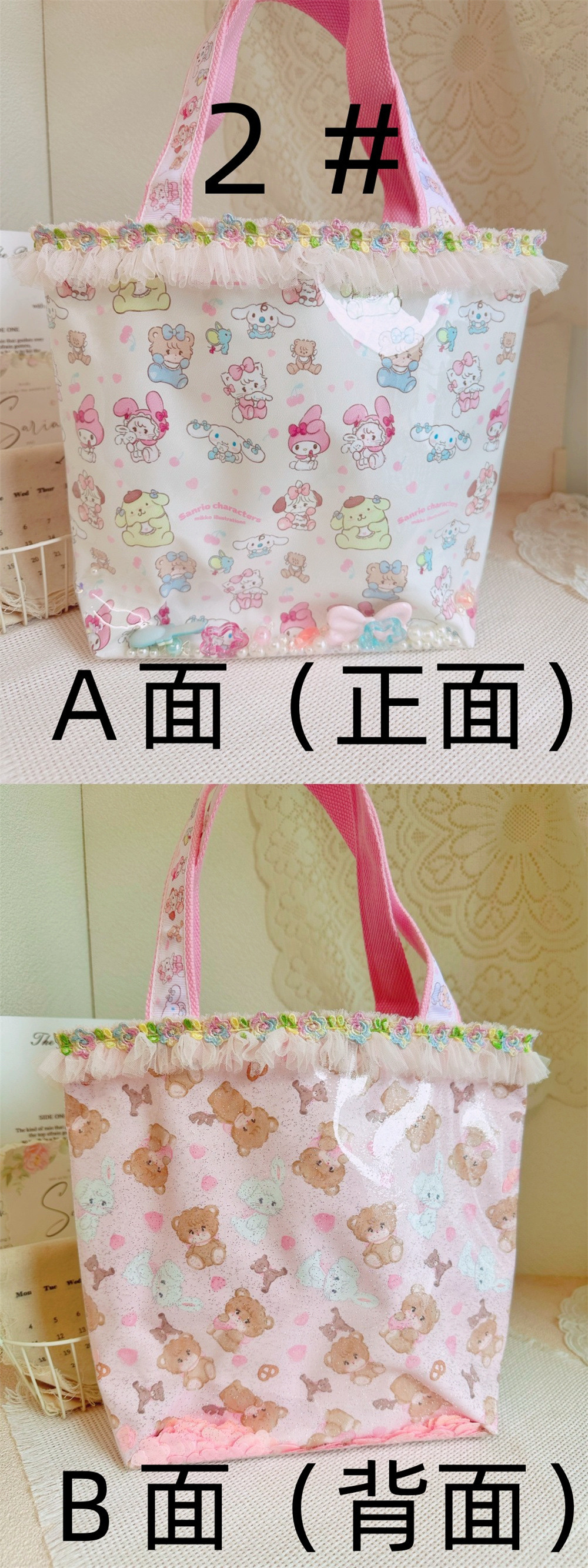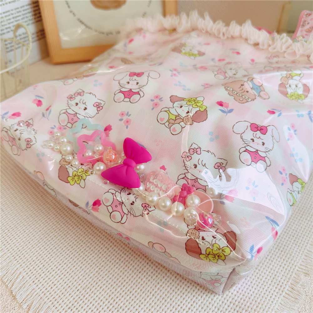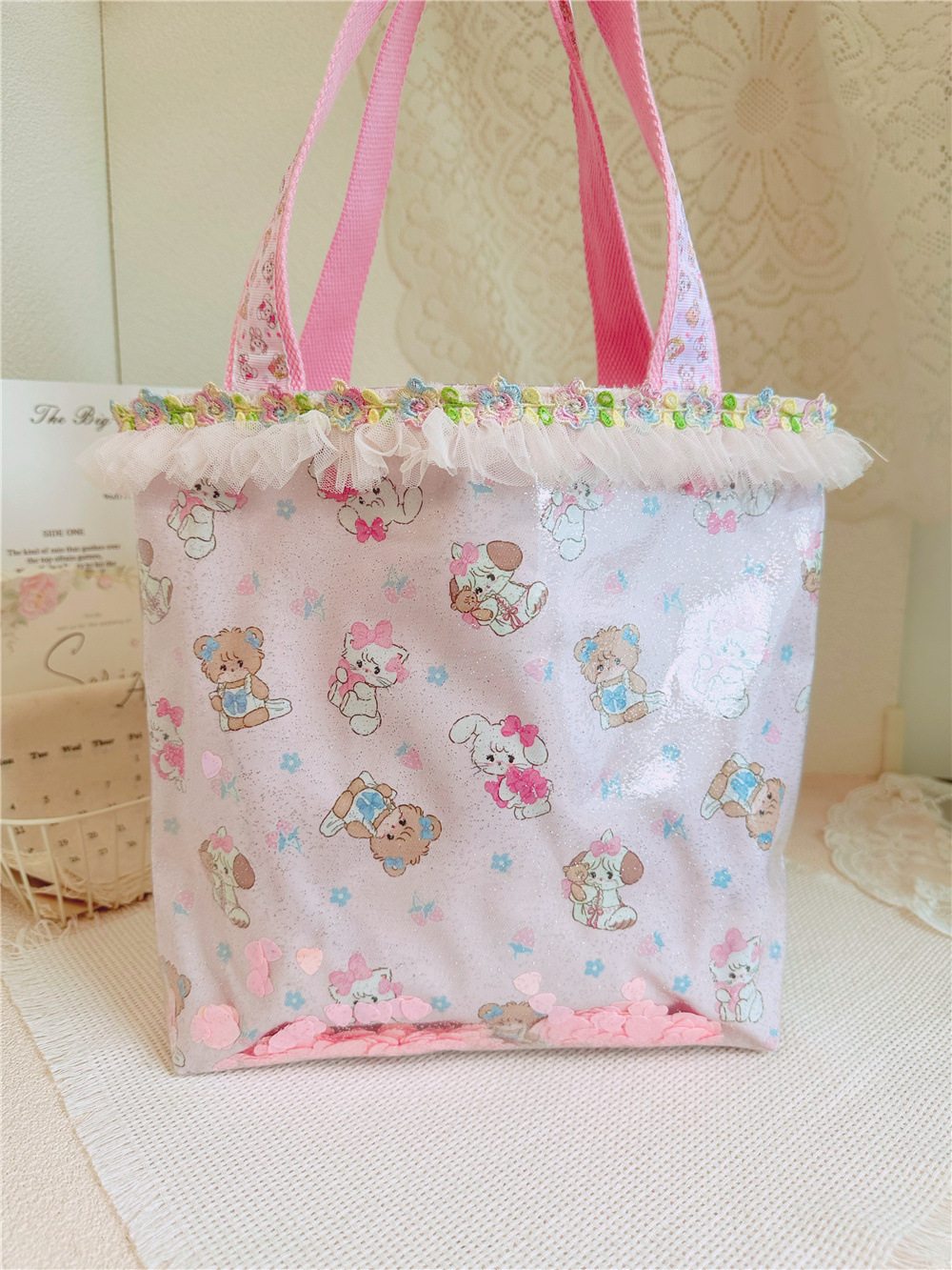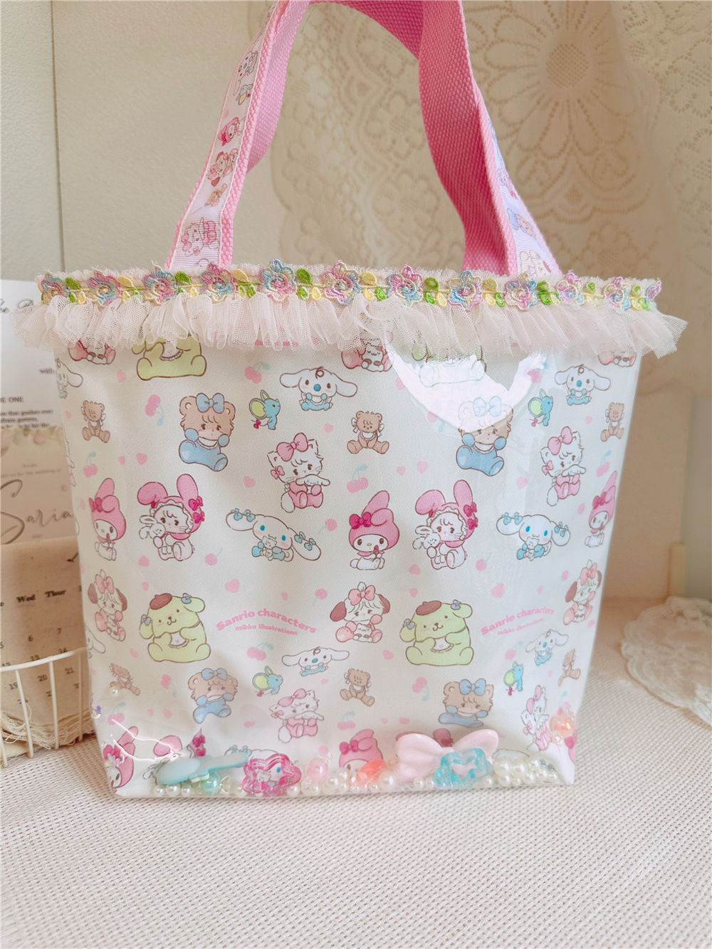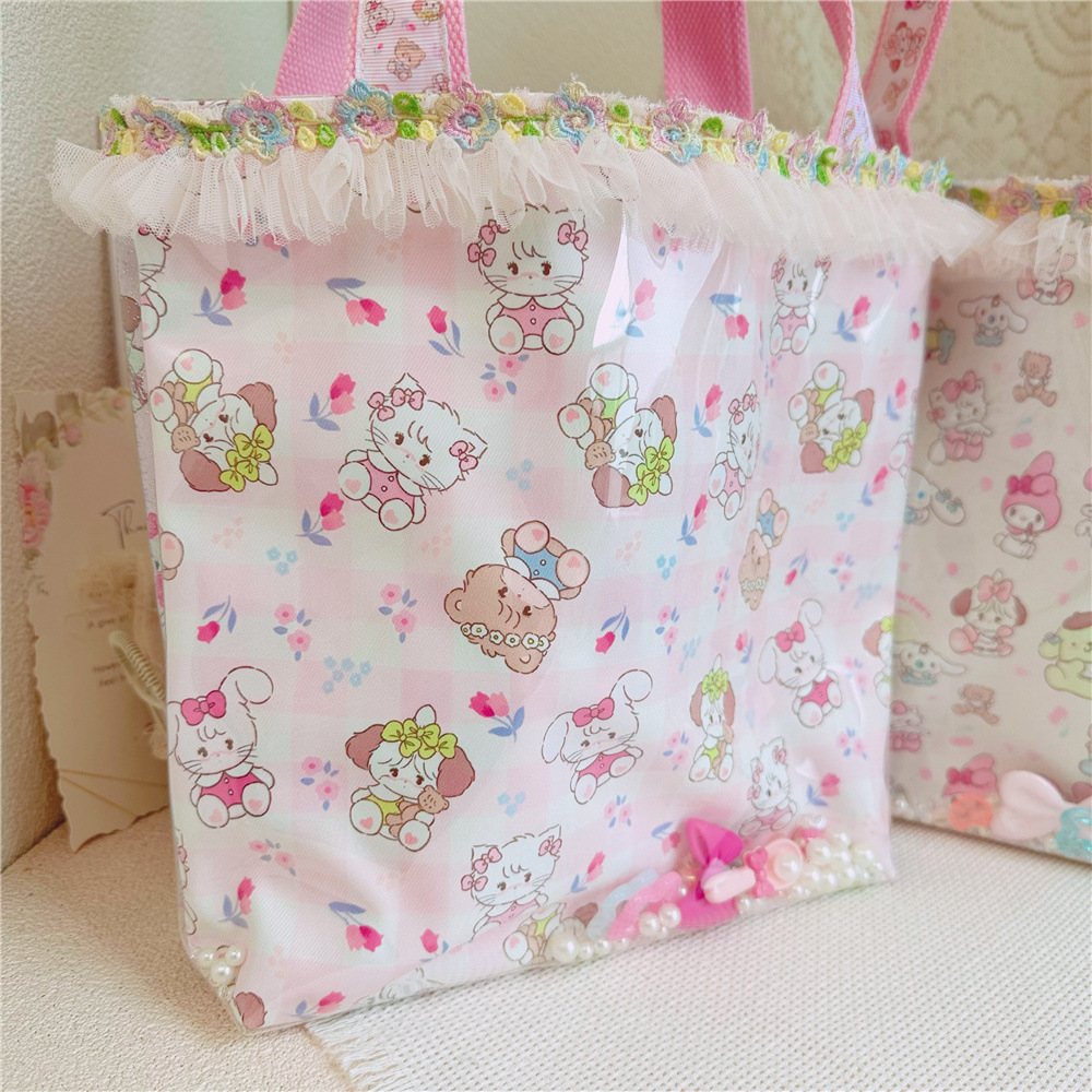 새로운 귀여운 만화 인쇄 방수 직물 산리오 메를로 작은 동물 투명 퀵샌드 핸드백 숄더백스토어 가기
