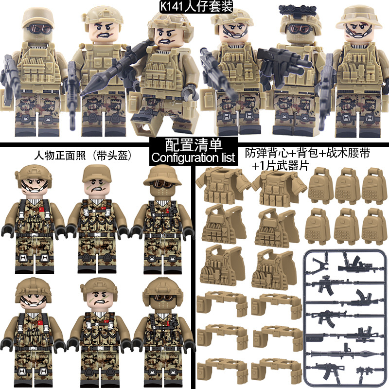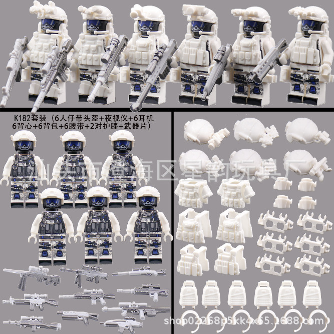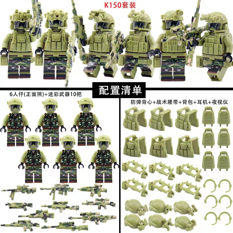국경 간 군사 빌딩 블록 유령 위장 특수 군인 부대 특수 경찰 팀 무기 및 장비 소년 조립