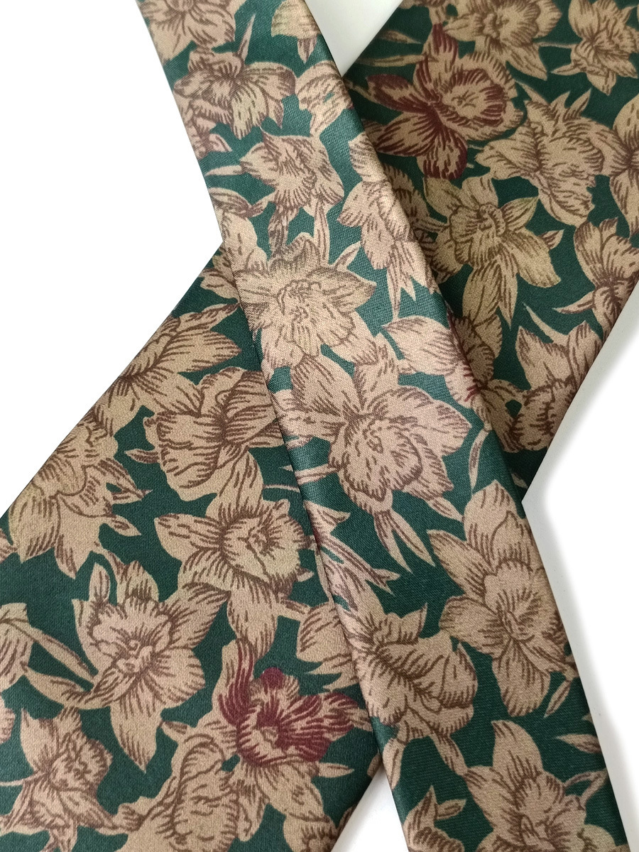 십대 손 넥타이 긴 넥타이 와이드 버전 남자와 여자의 복고풍 홍콩 스타일 인쇄 다크 그린 꽃 캐주얼 모든 매치 액세서리 유행스토어 가기