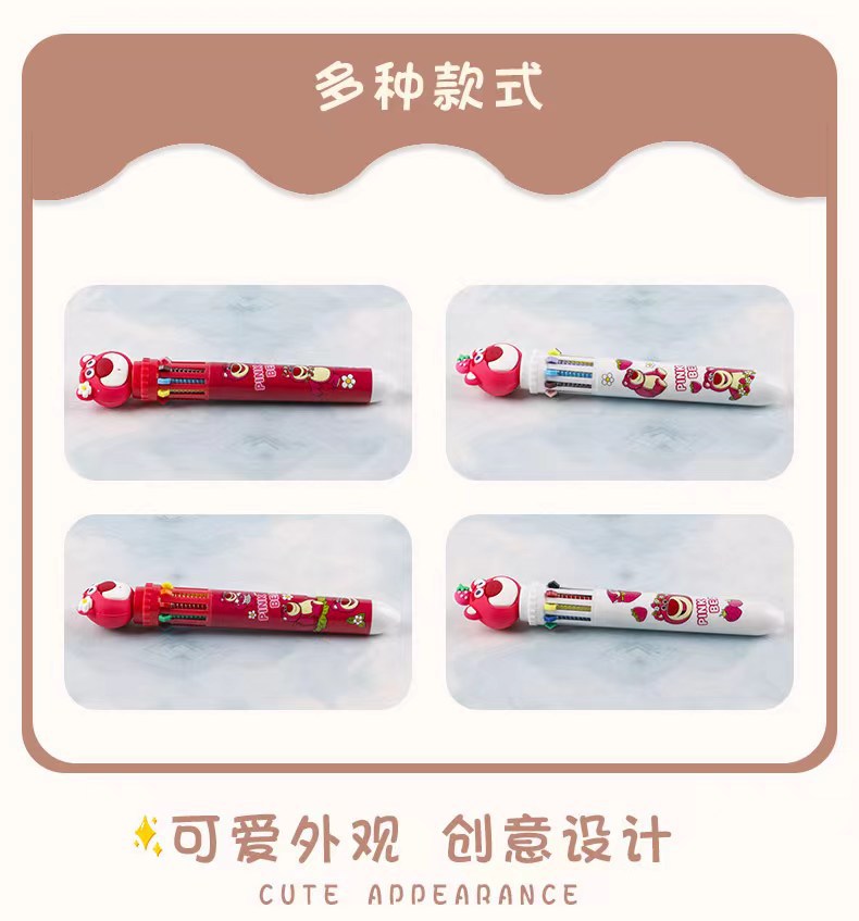 딸기 곰 10 색 펜 귀여운 핑크 딸기 손 계정 프레스 볼펜 학생 학습 문구 도매