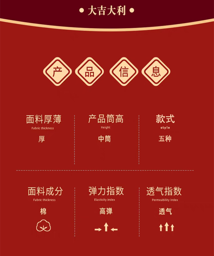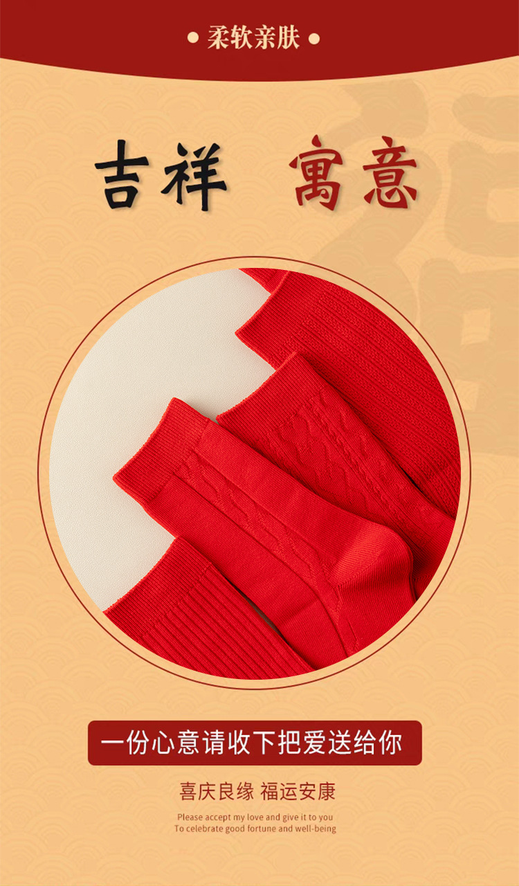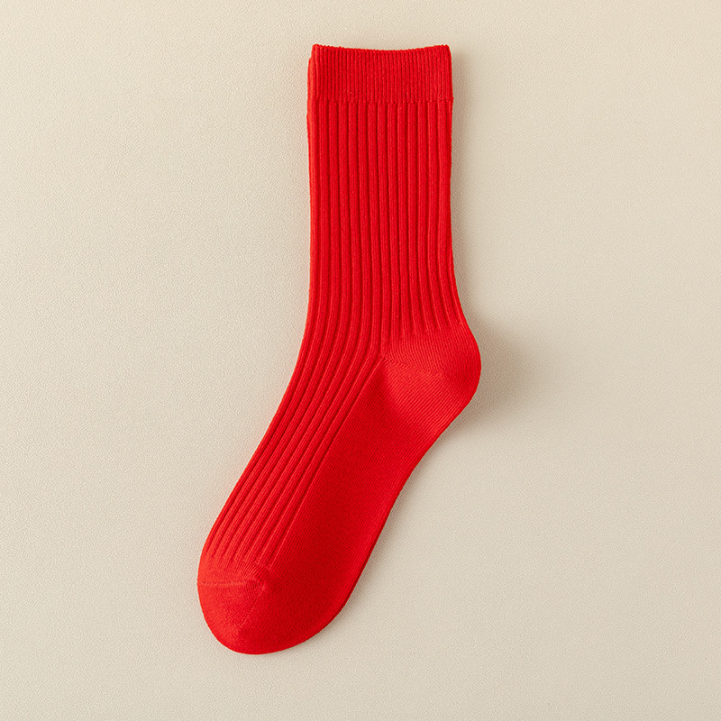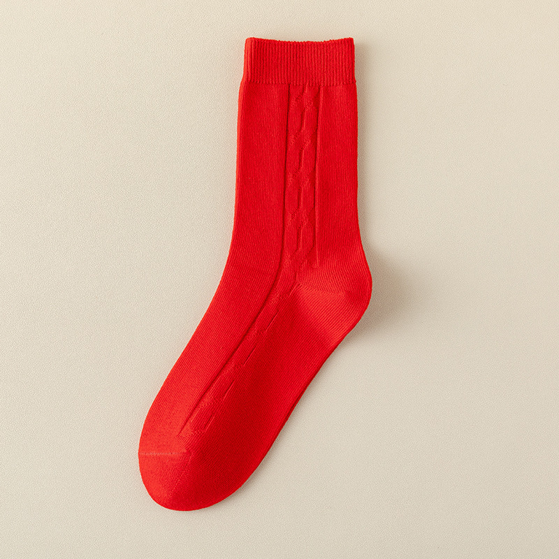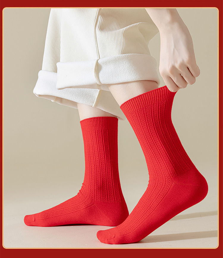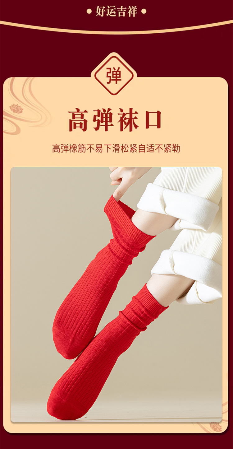 대형 빨간 양말, 여성용 순면 중목 양말, 가을 겨울 여성용 새해 양말, 순면 이중 바늘 여성 양말, 주지 면 양말