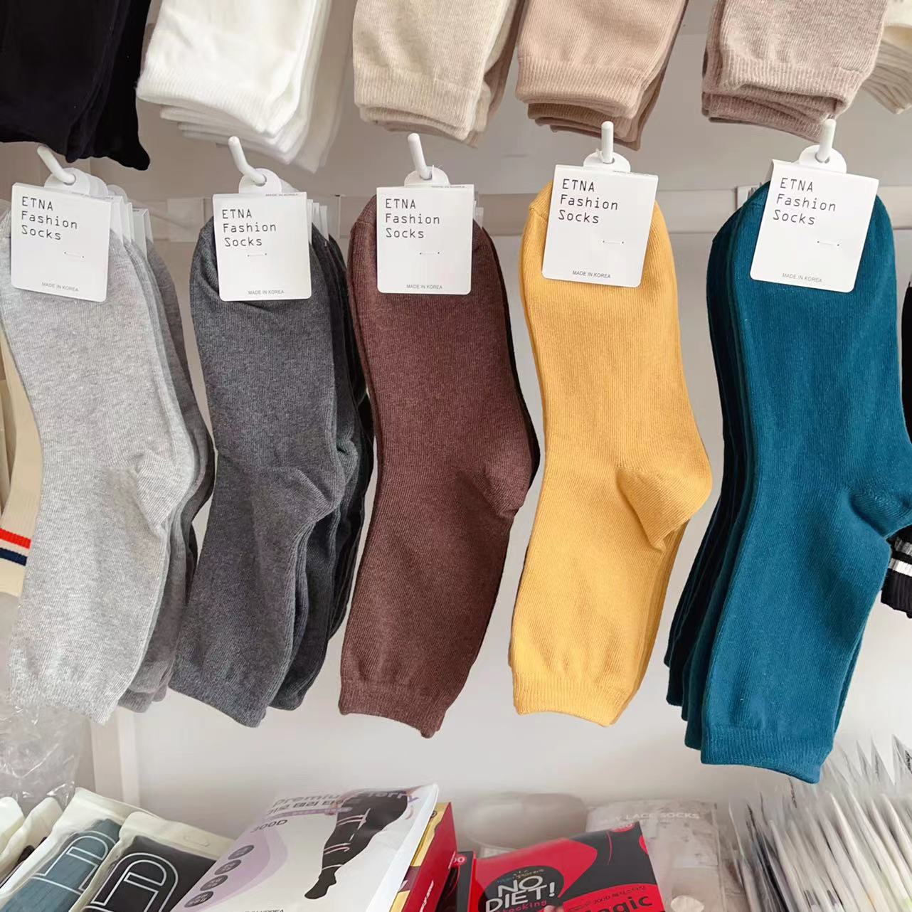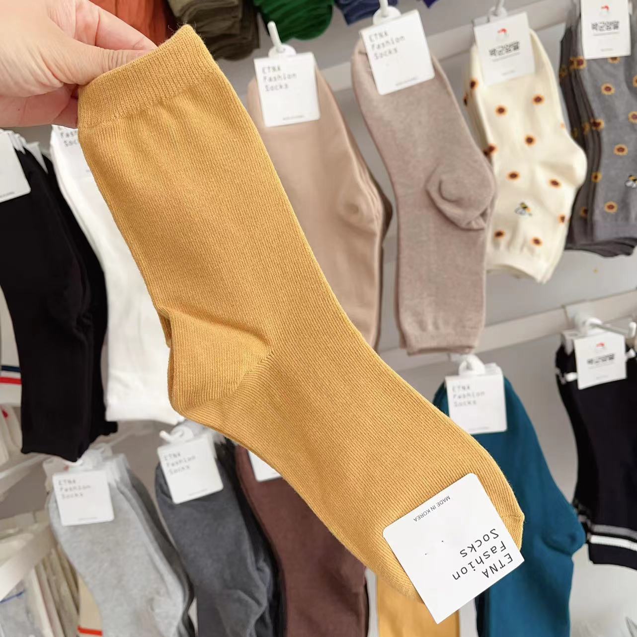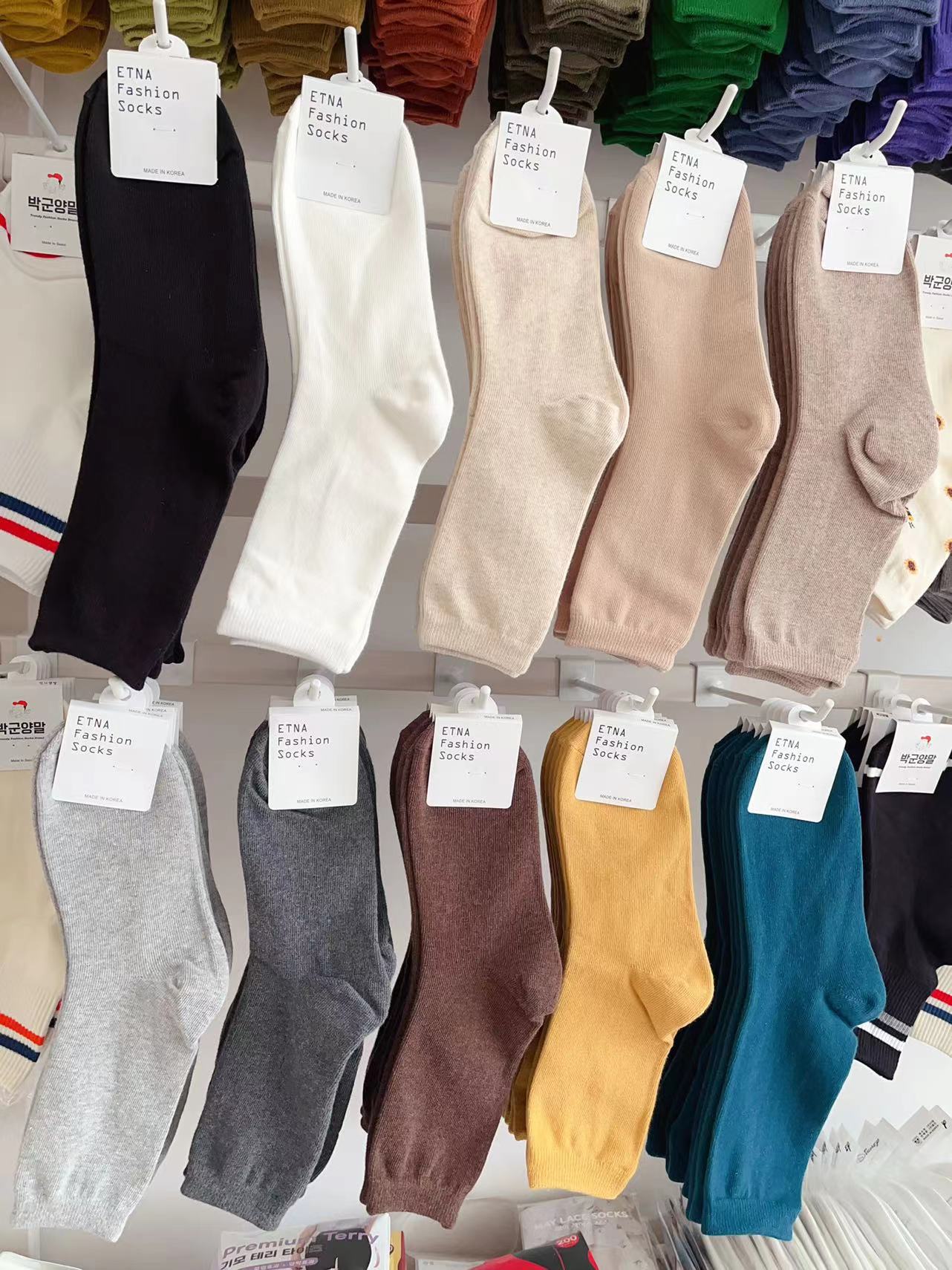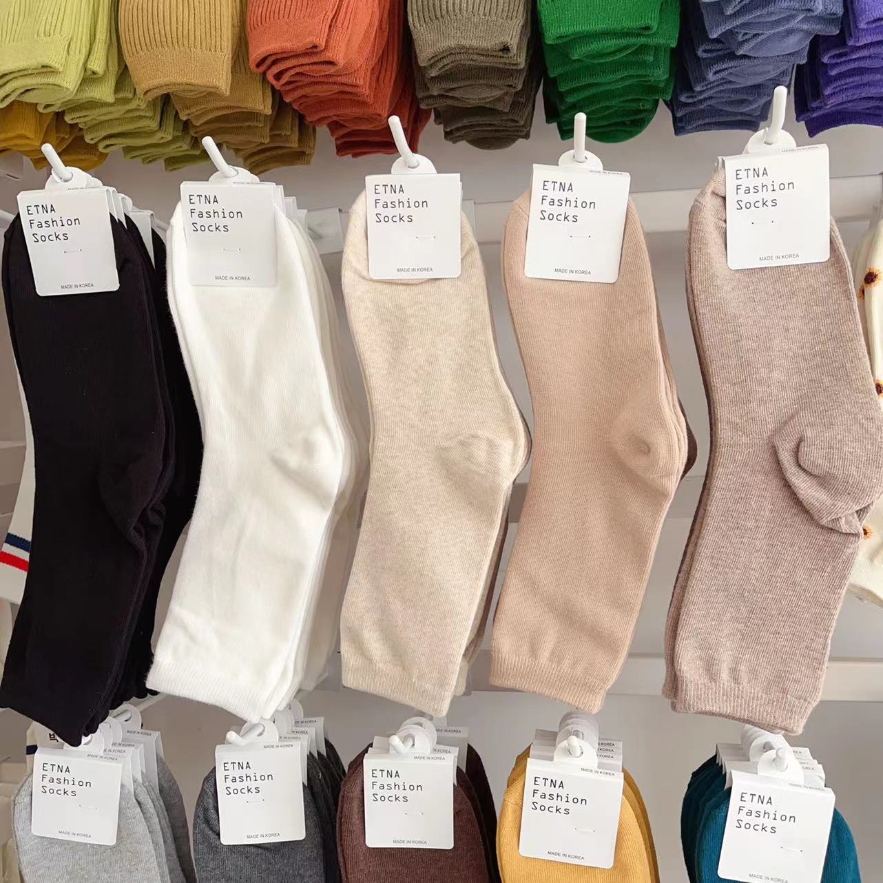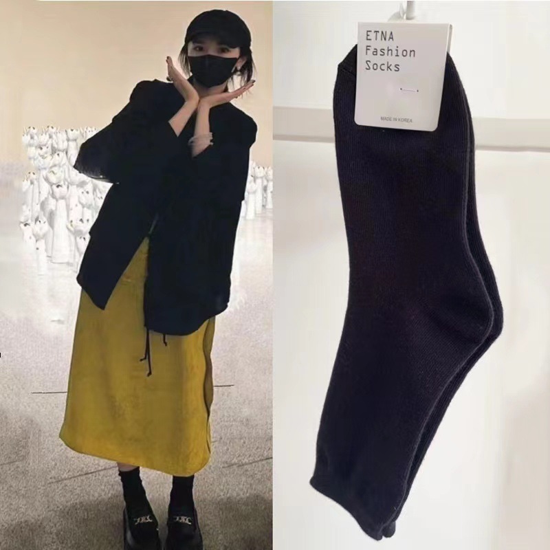 한국 숙녀 단색 스타킹 ETNA 가을과 겨울 Maillard 색 파일 양말 간단한 한국 양말 수입 양말 도매스토어 가기