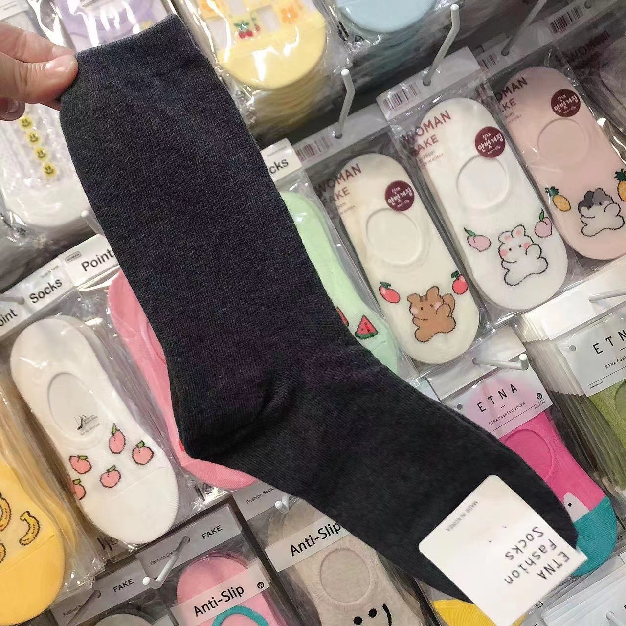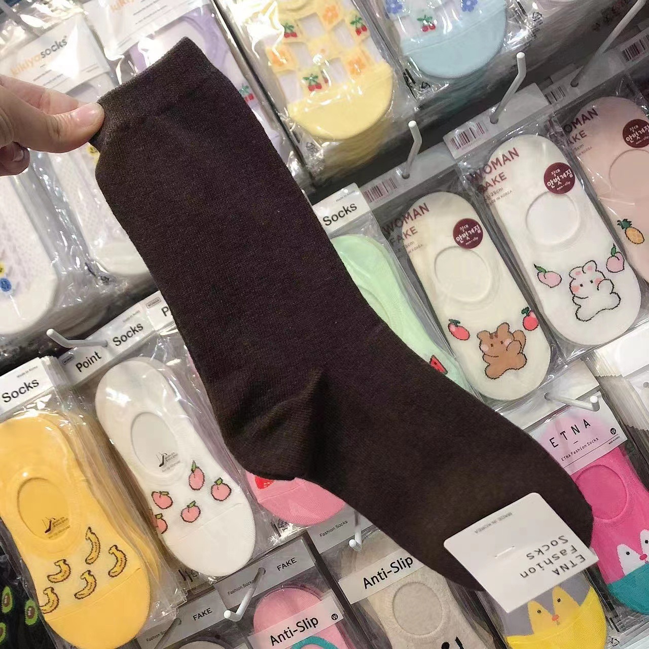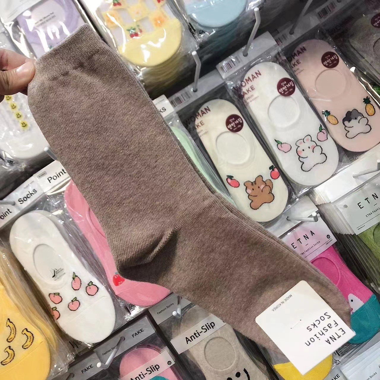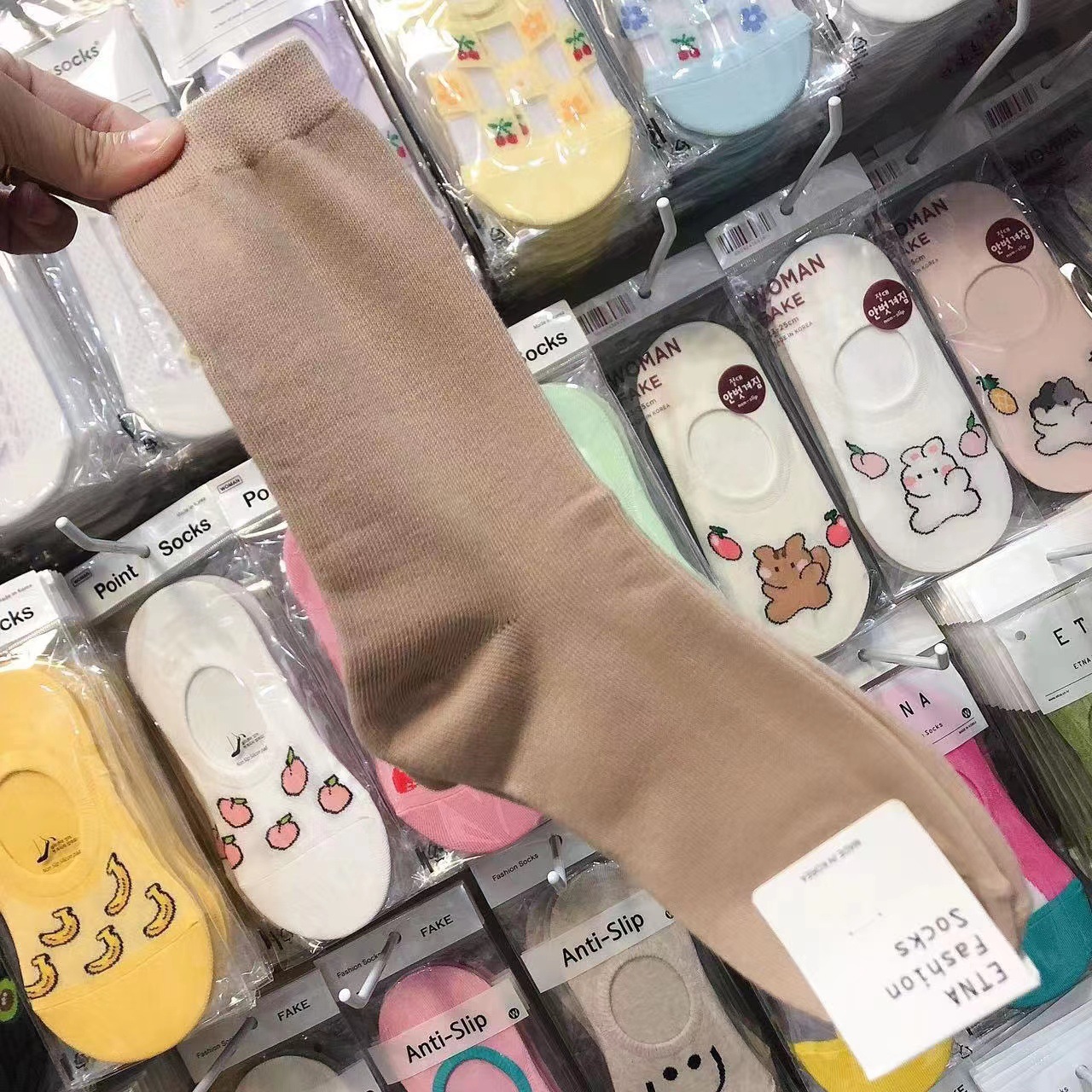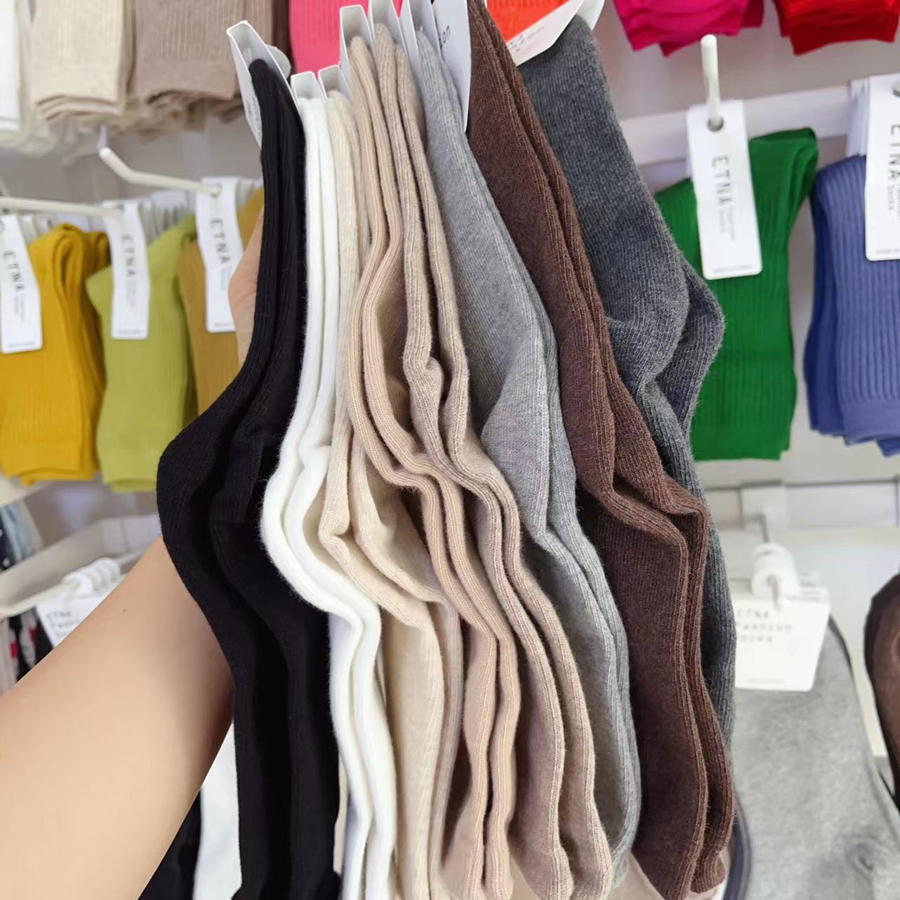 한국 숙녀 단색 스타킹 ETNA 가을과 겨울 Maillard 색 파일 양말 간단한 한국 양말 수입 양말 도매스토어 가기