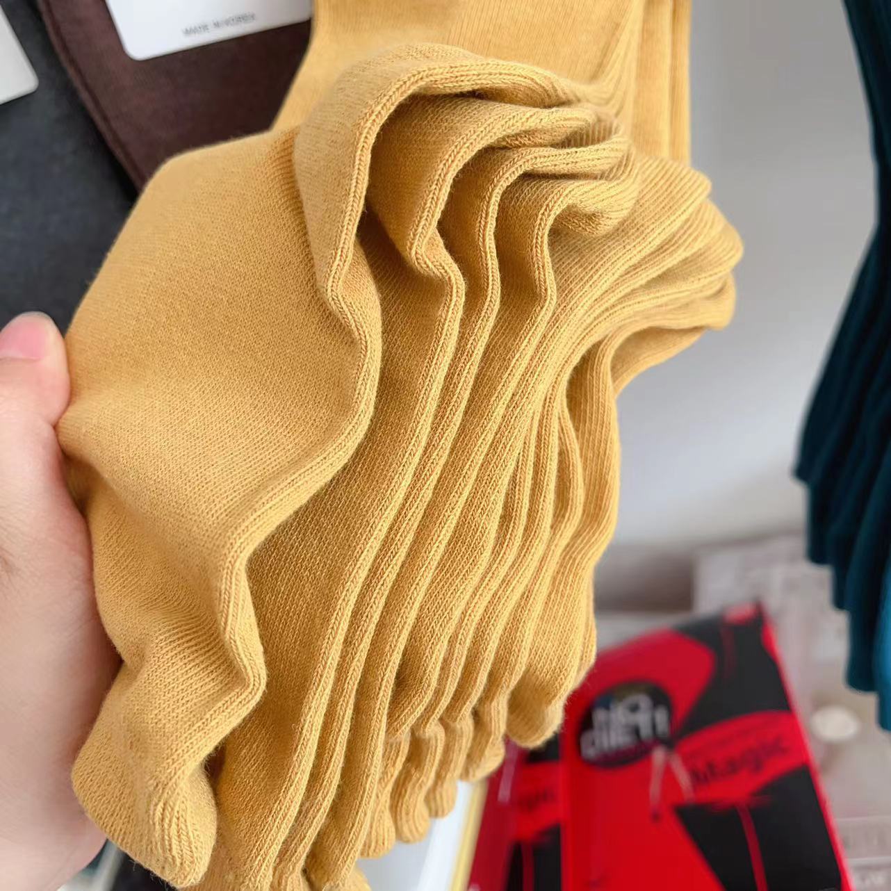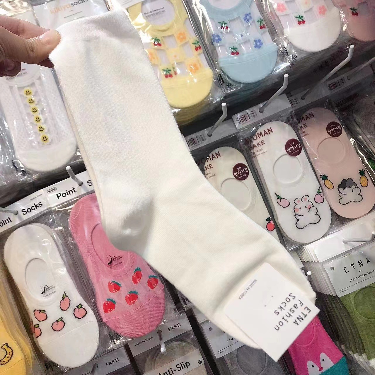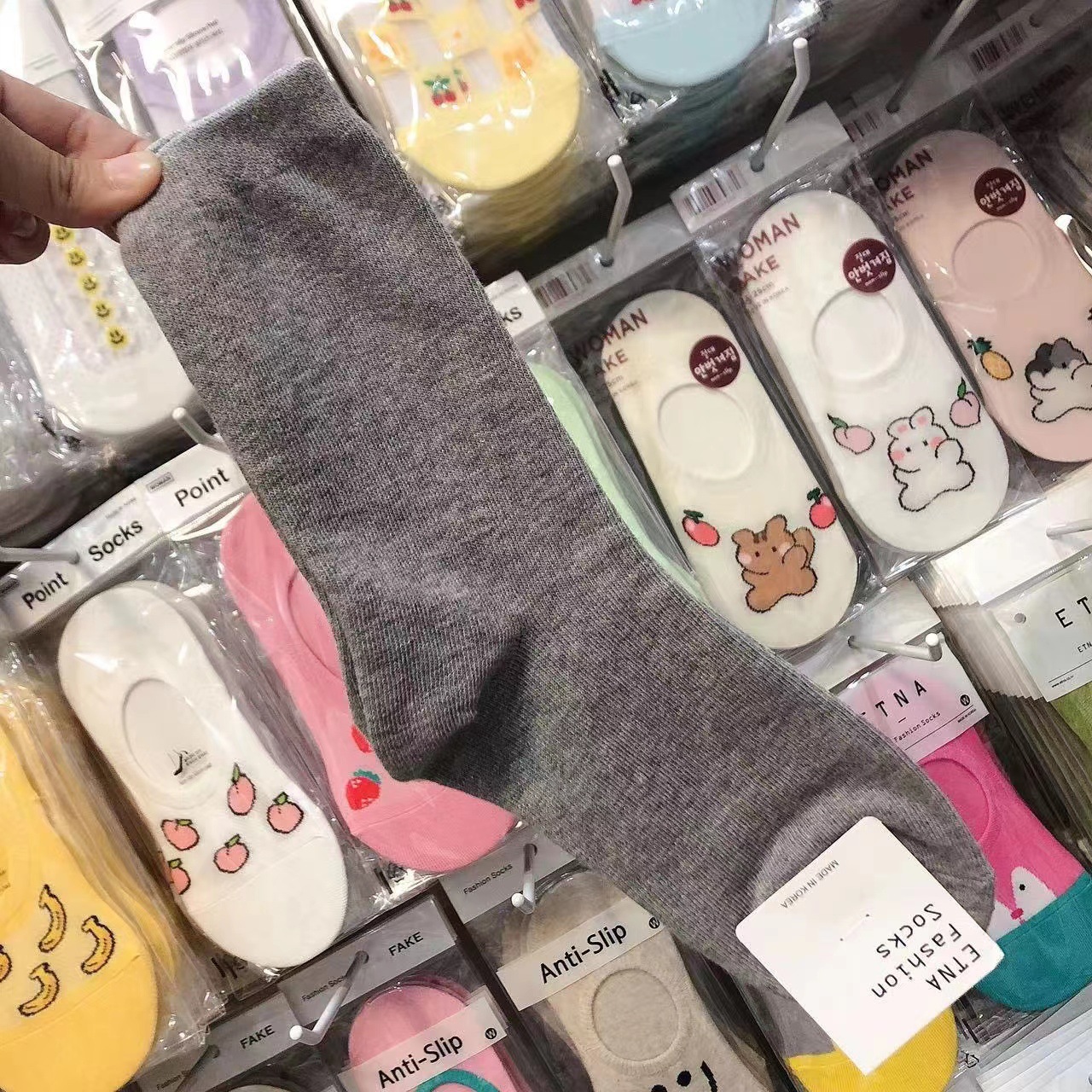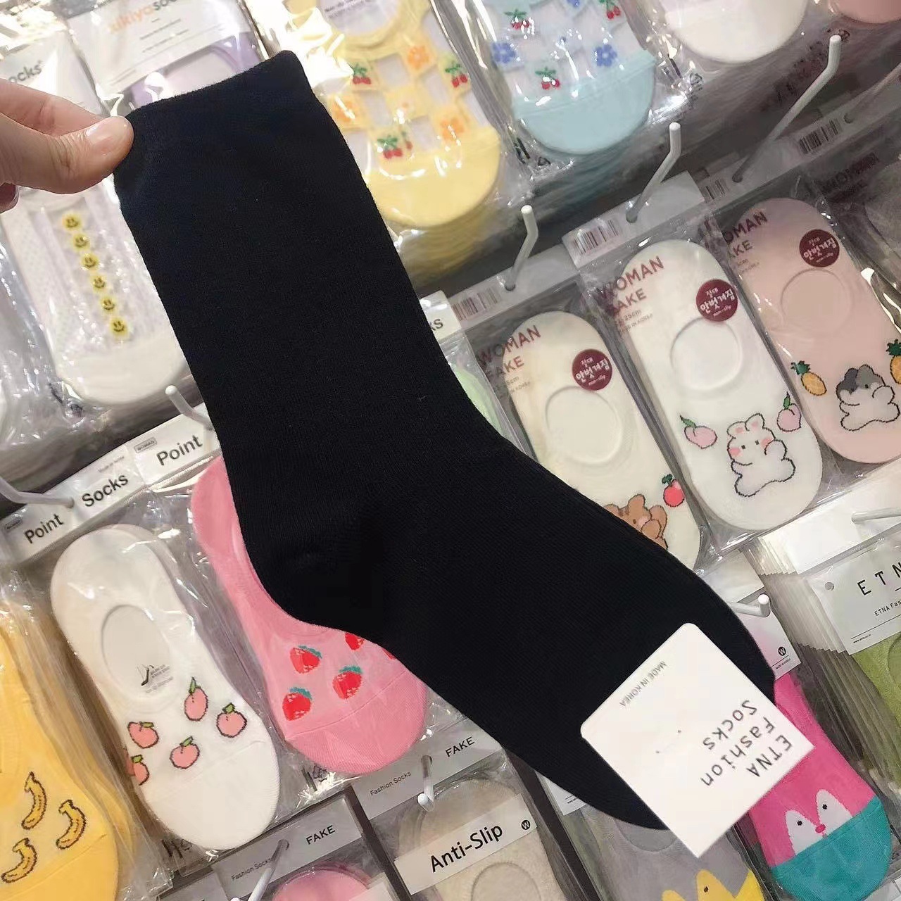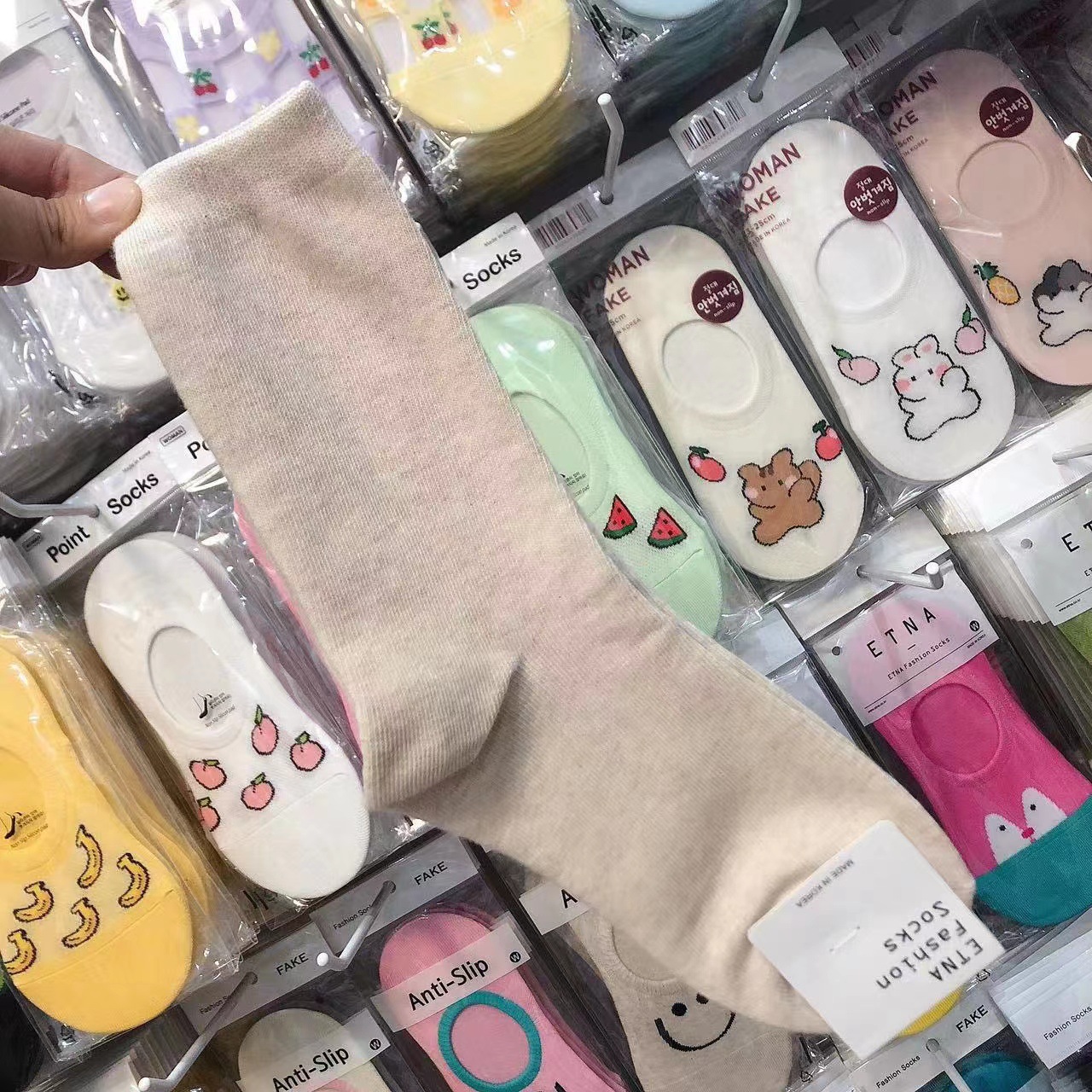 한국 숙녀 단색 스타킹 ETNA 가을과 겨울 Maillard 색 파일 양말 간단한 한국 양말 수입 양말 도매스토어 가기