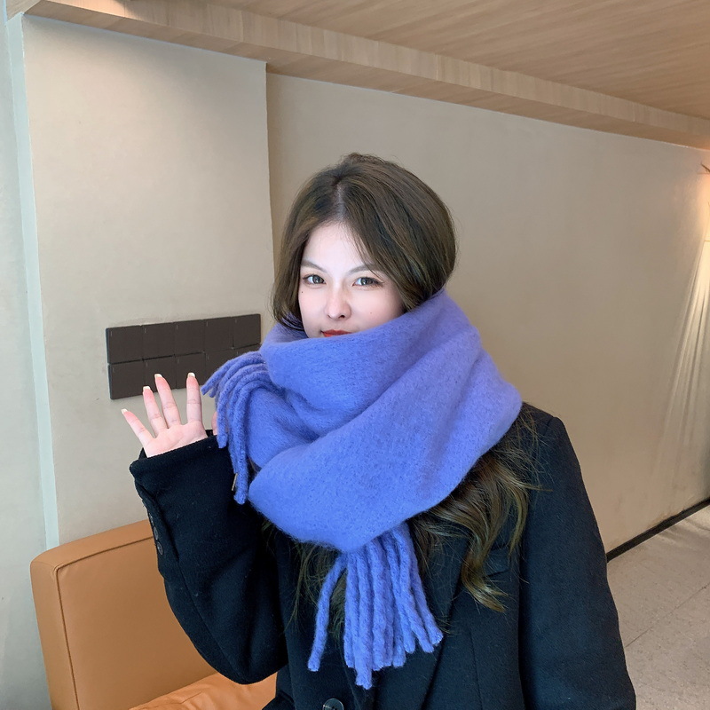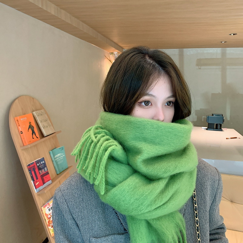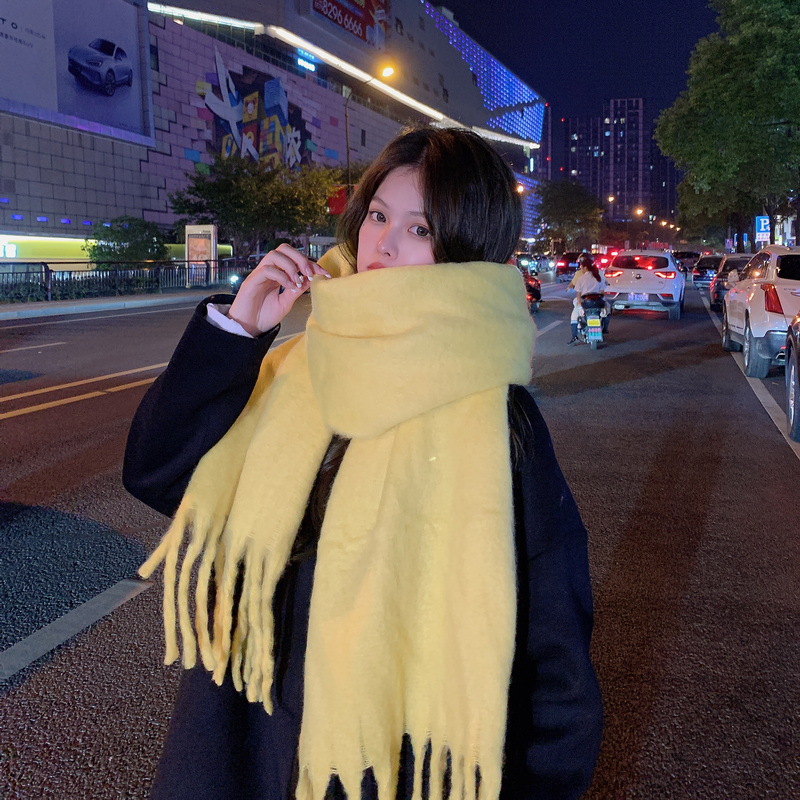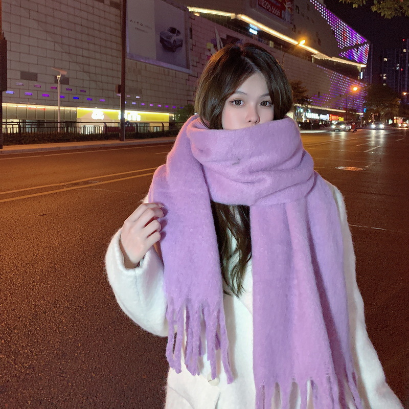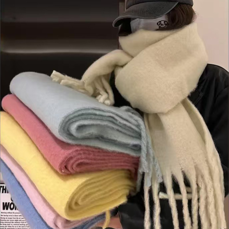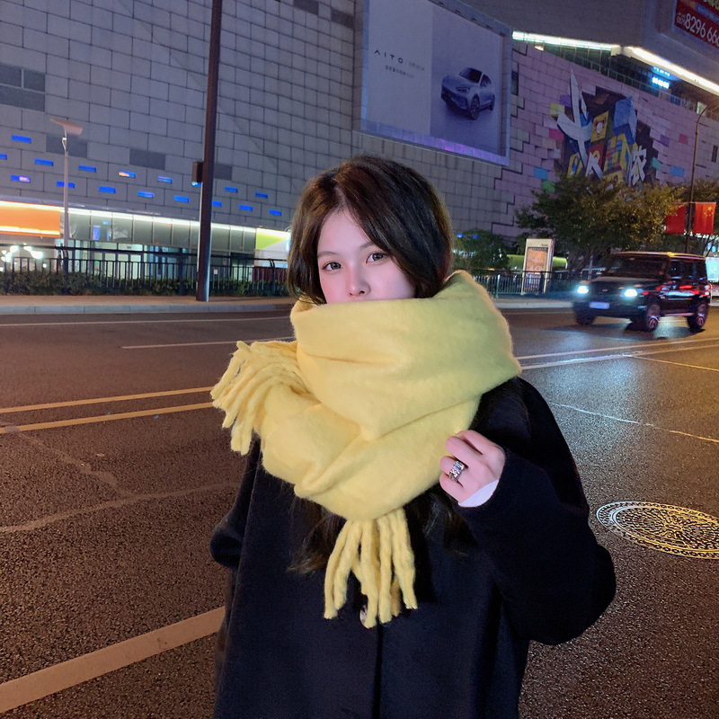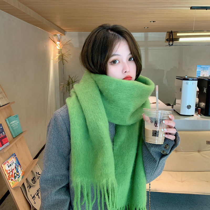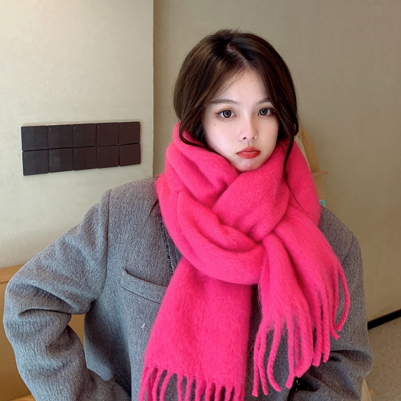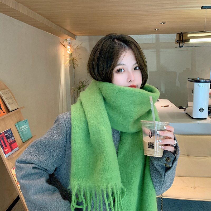 세련된 한국식 조커 단색 모헤어 니프 스카프 겨울 따뜻한 부드러운 왁스 달콤한 단색 학생 스카프스토어 가기