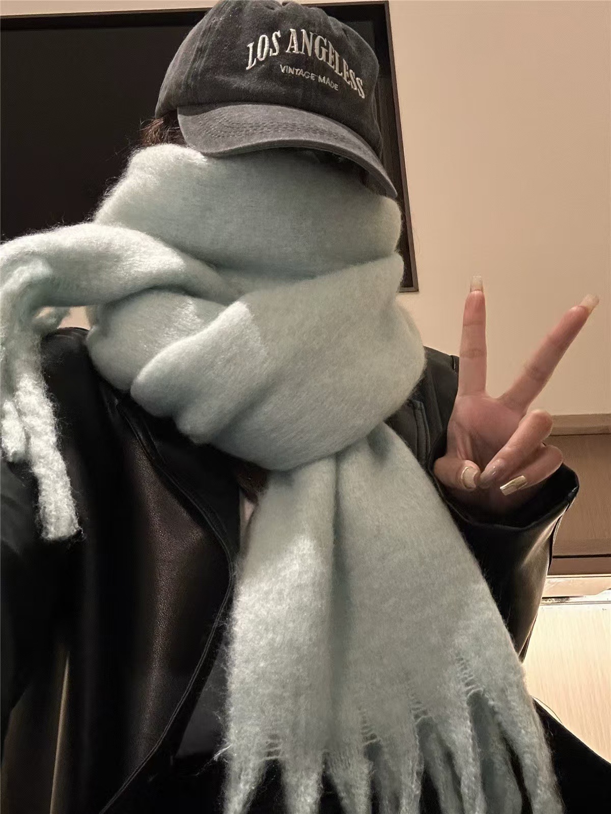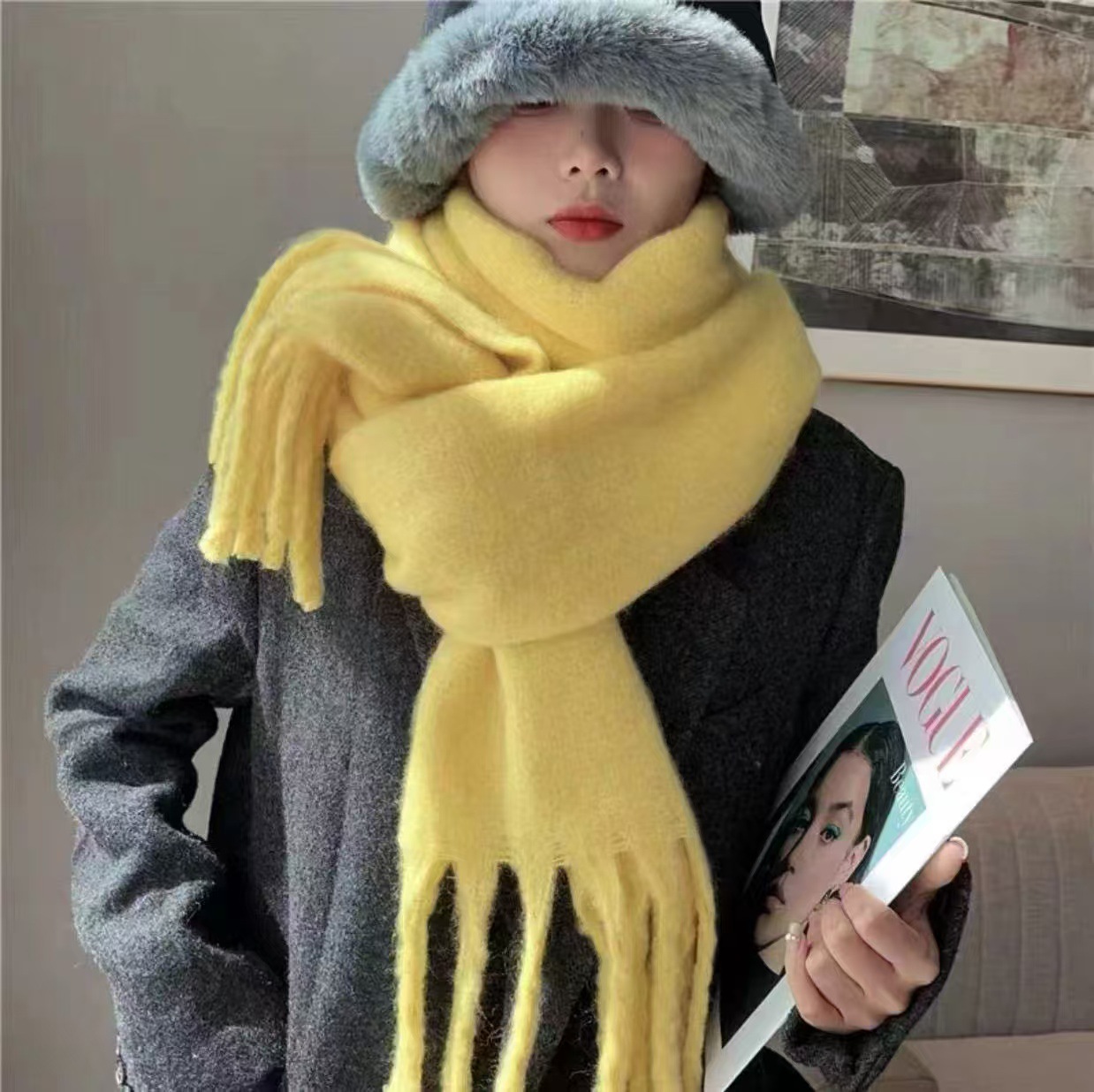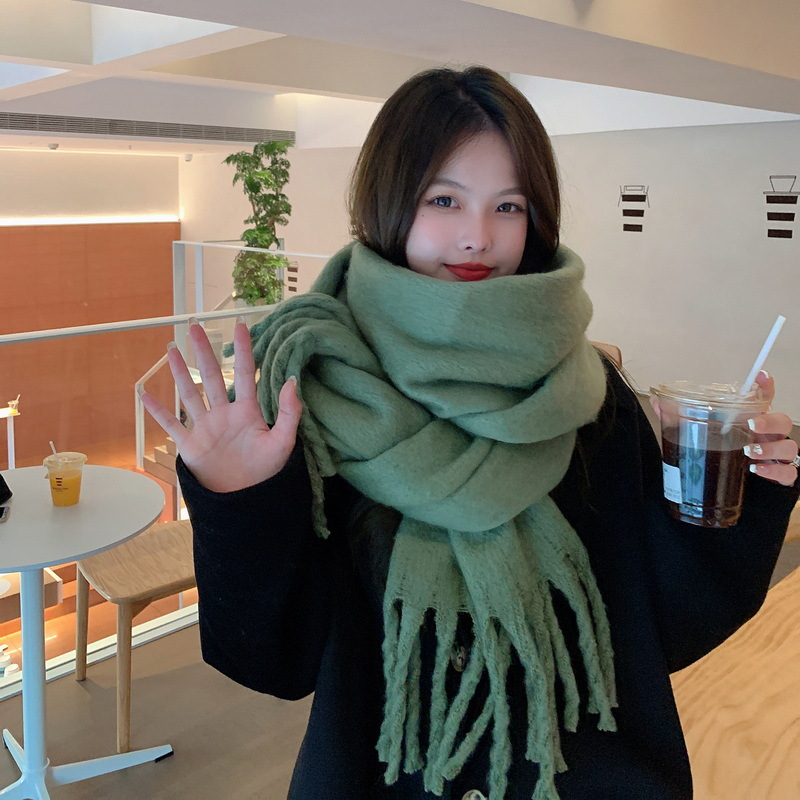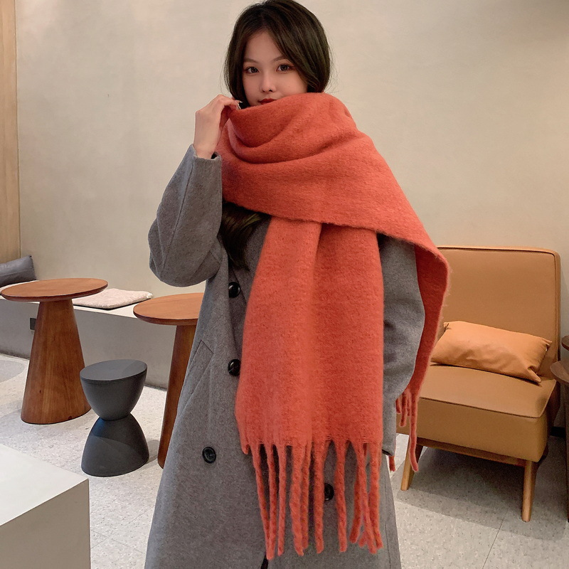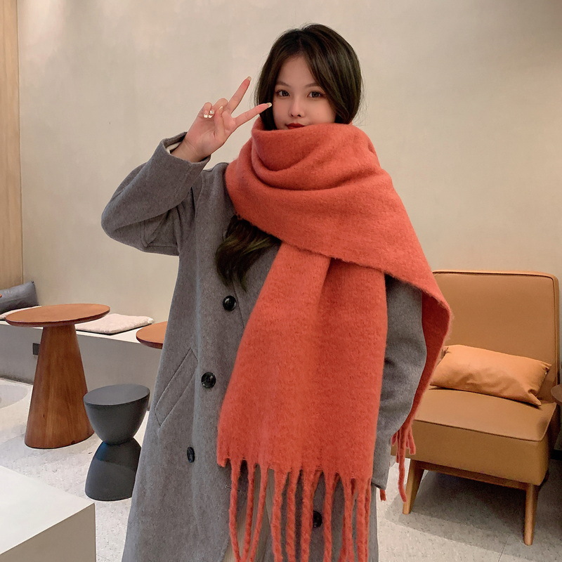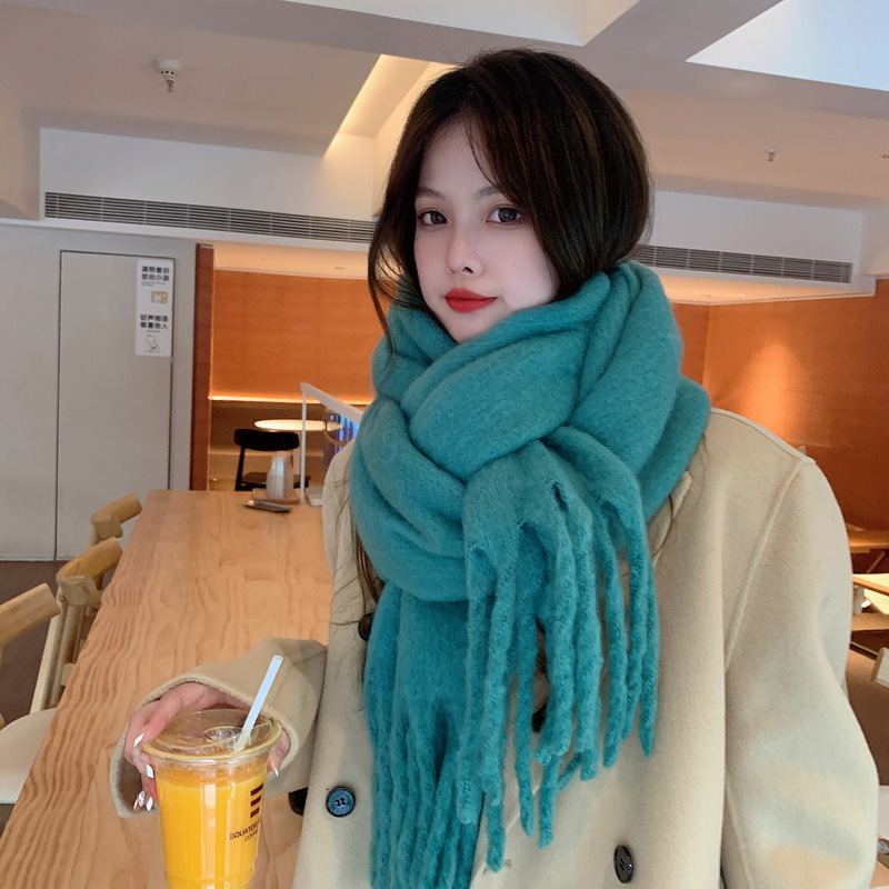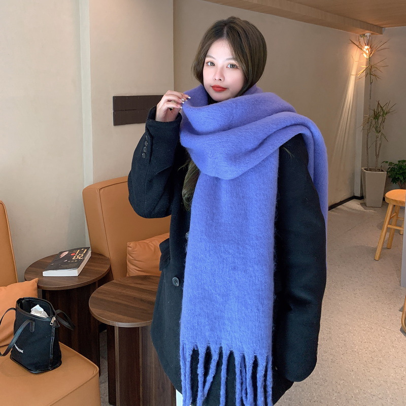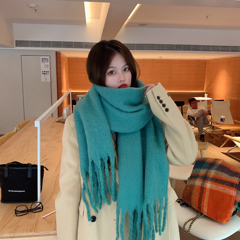 세련된 한국식 조커 단색 모헤어 니프 스카프 겨울 따뜻한 부드러운 왁스 달콤한 단색 학생 스카프스토어 가기