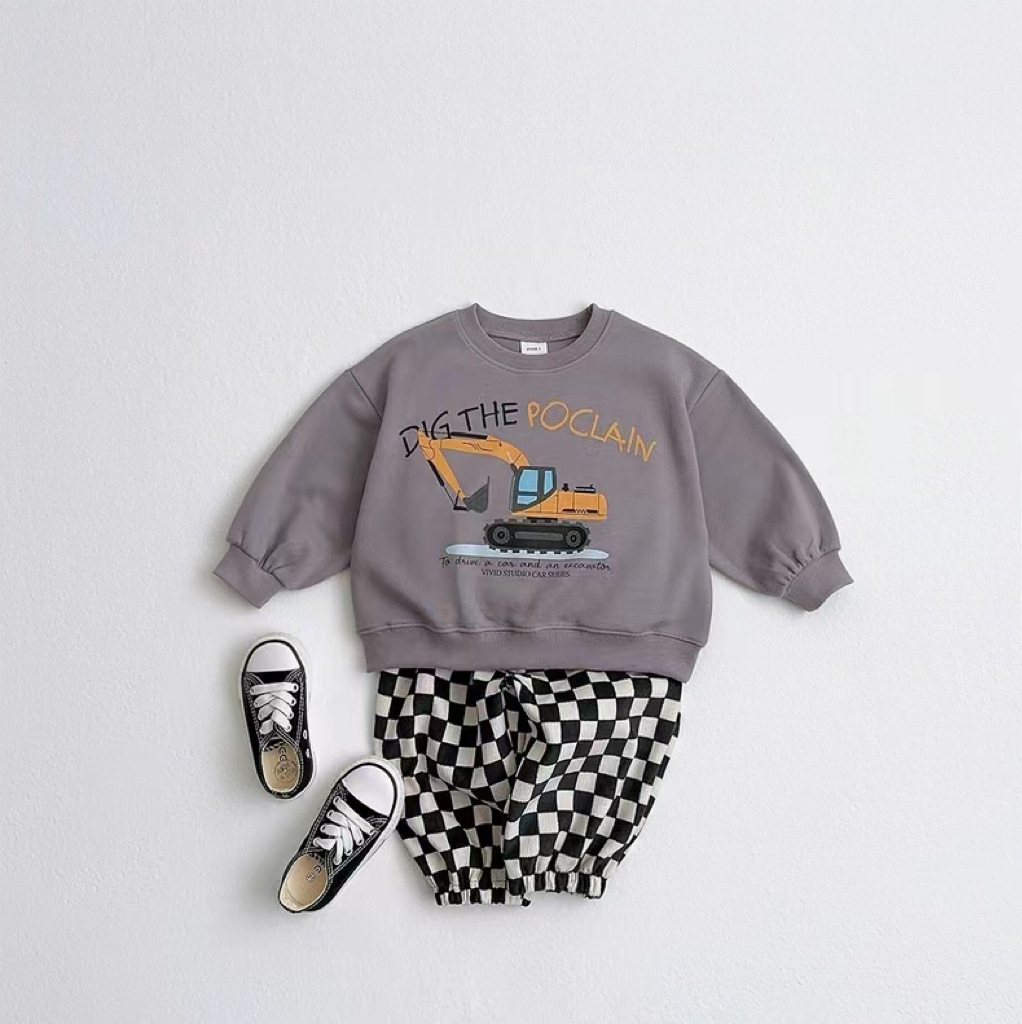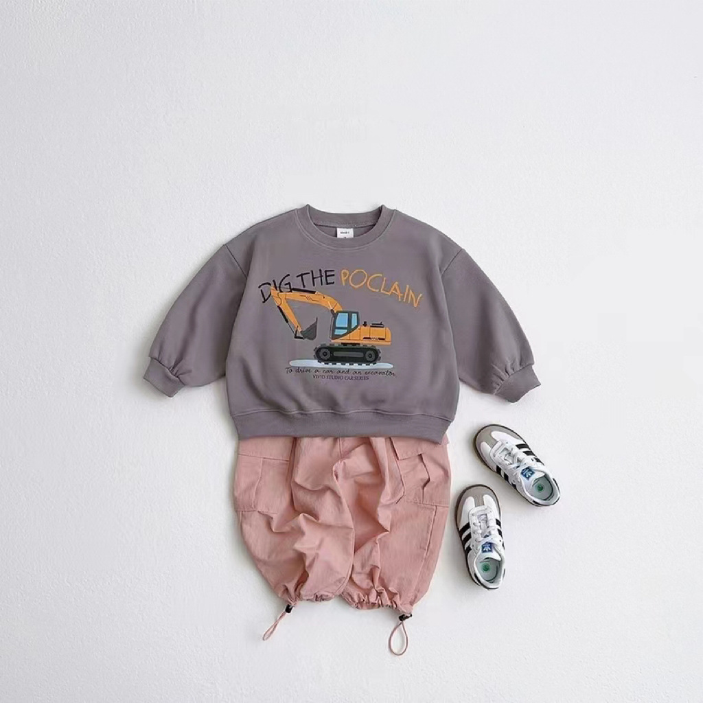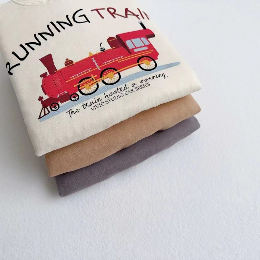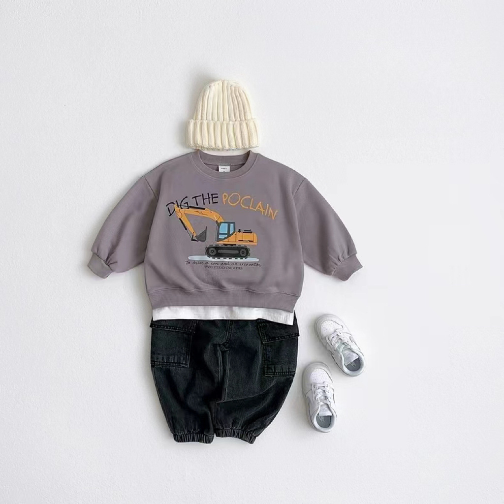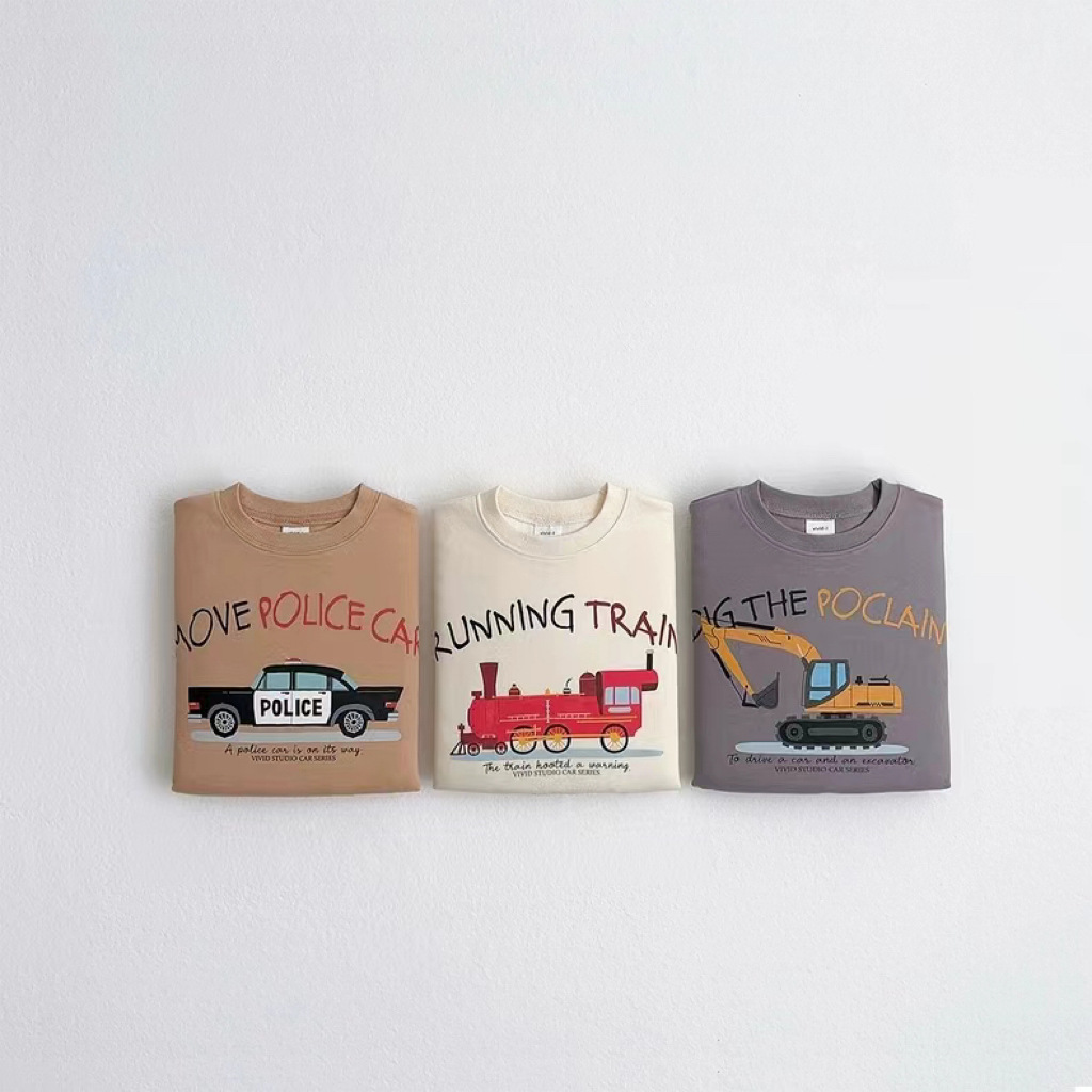 한국 스타일의 크루넥 만화 스웨터 자동차 기차 굴삭기 인쇄 테리 탑 아기 소년 소녀 봄과 가을스토어 가기