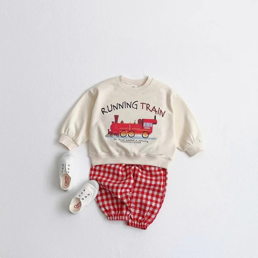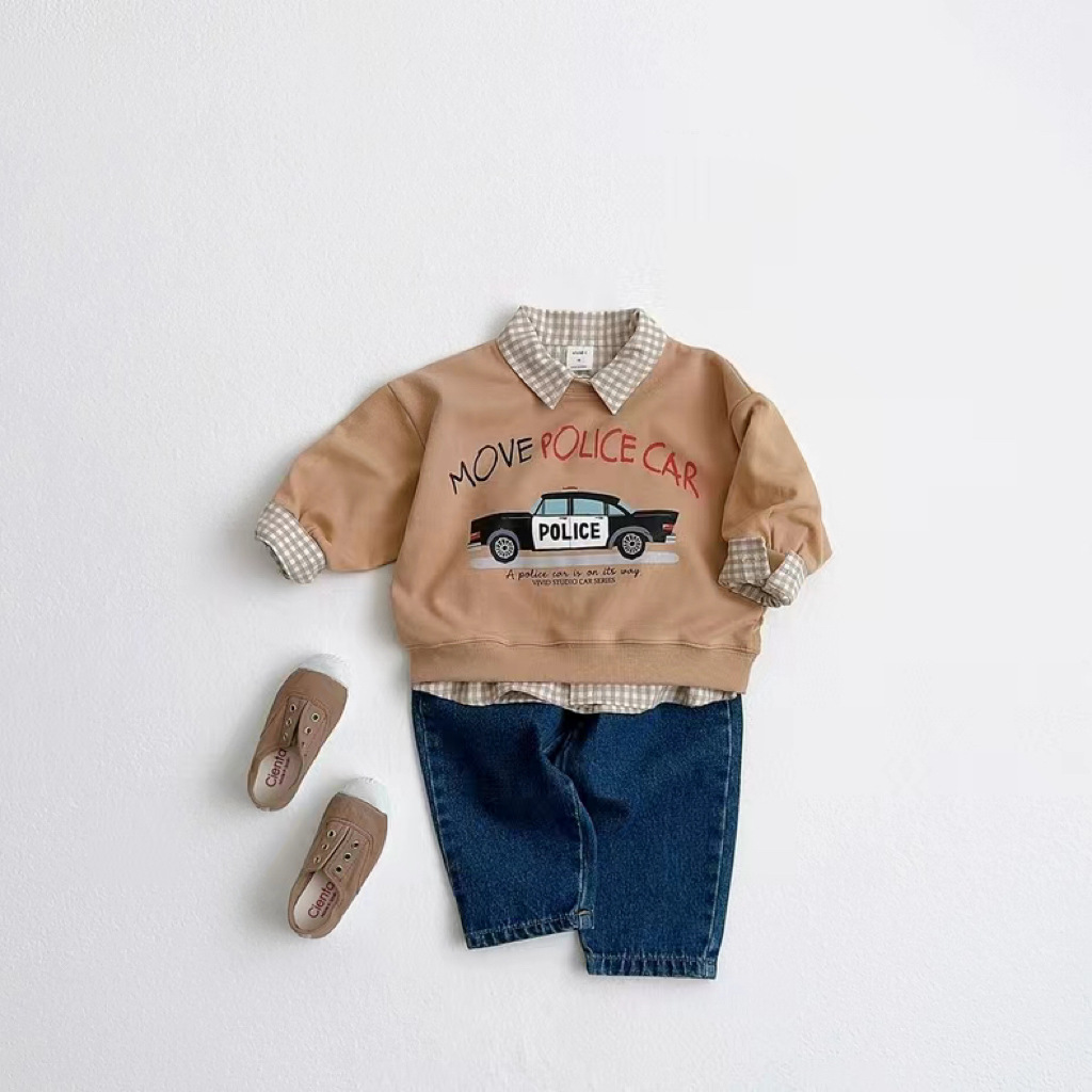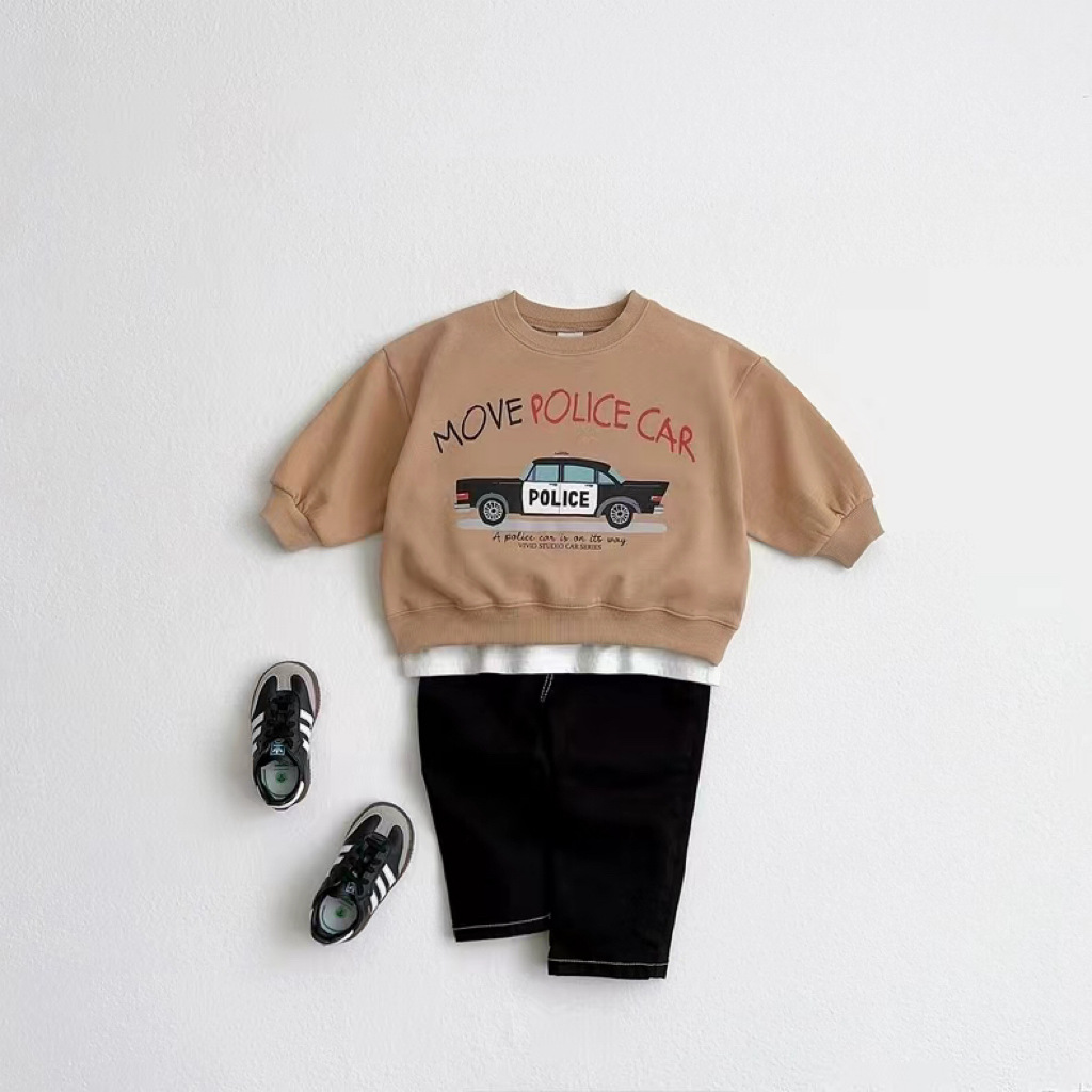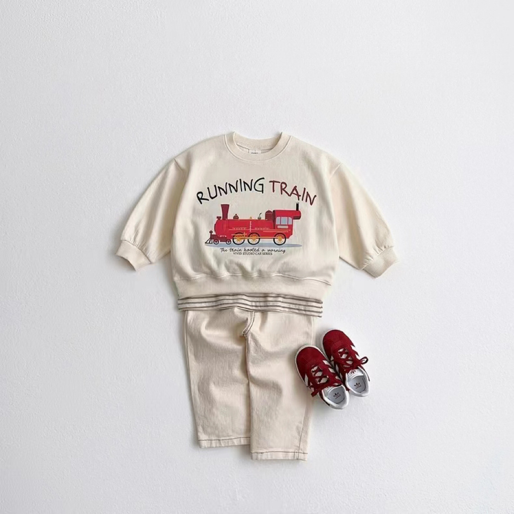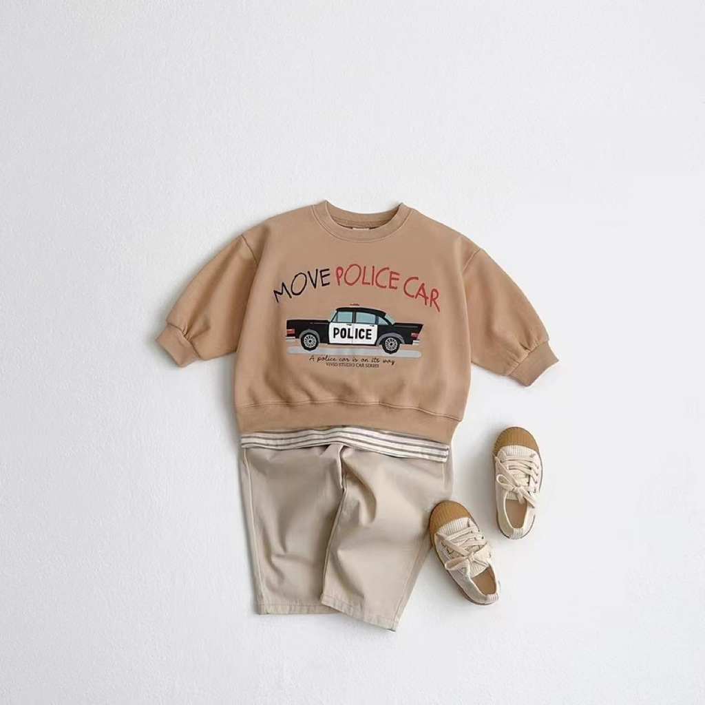 한국 스타일의 크루넥 만화 스웨터 자동차 기차 굴삭기 인쇄 테리 탑 아기 소년 소녀 봄과 가을스토어 가기