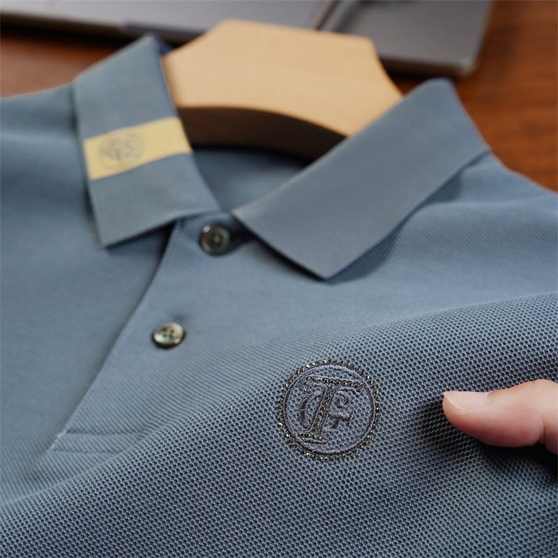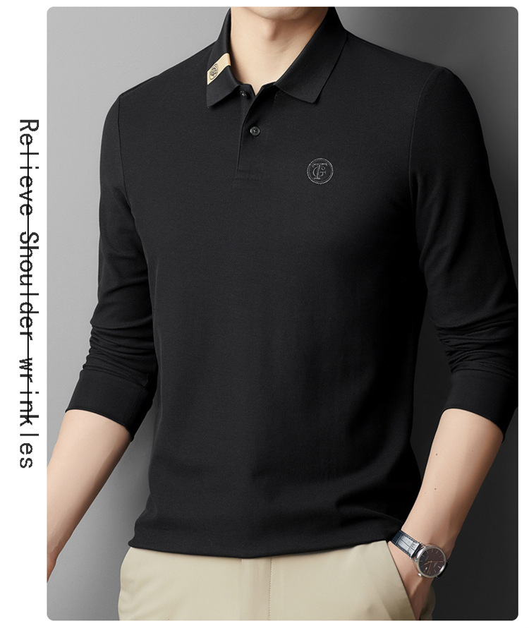 가을 긴팔 폴로 셔츠 남성 머서라이즈 코튼 라펠 비즈니스 패션 캐주얼 중년 착용 순수 코튼 티셔츠스토어 가기