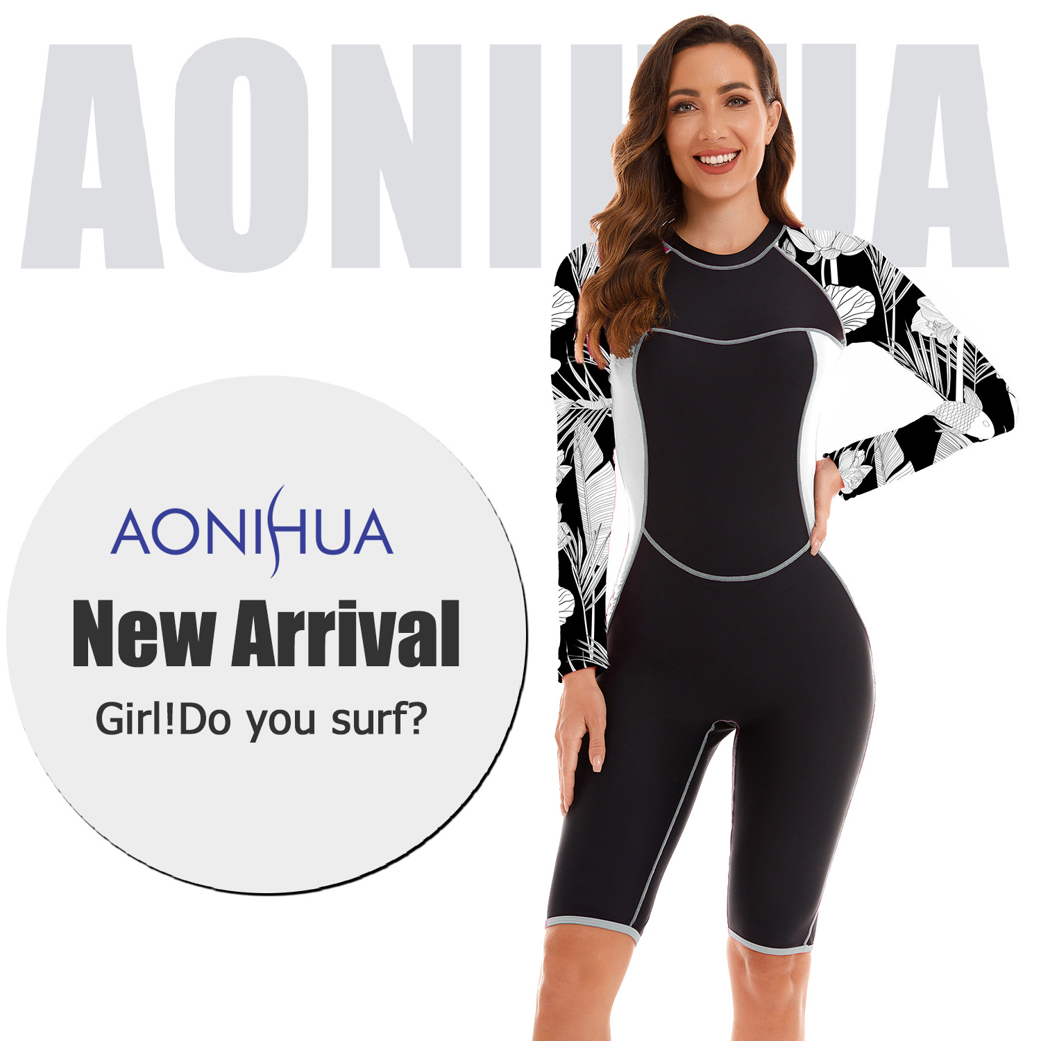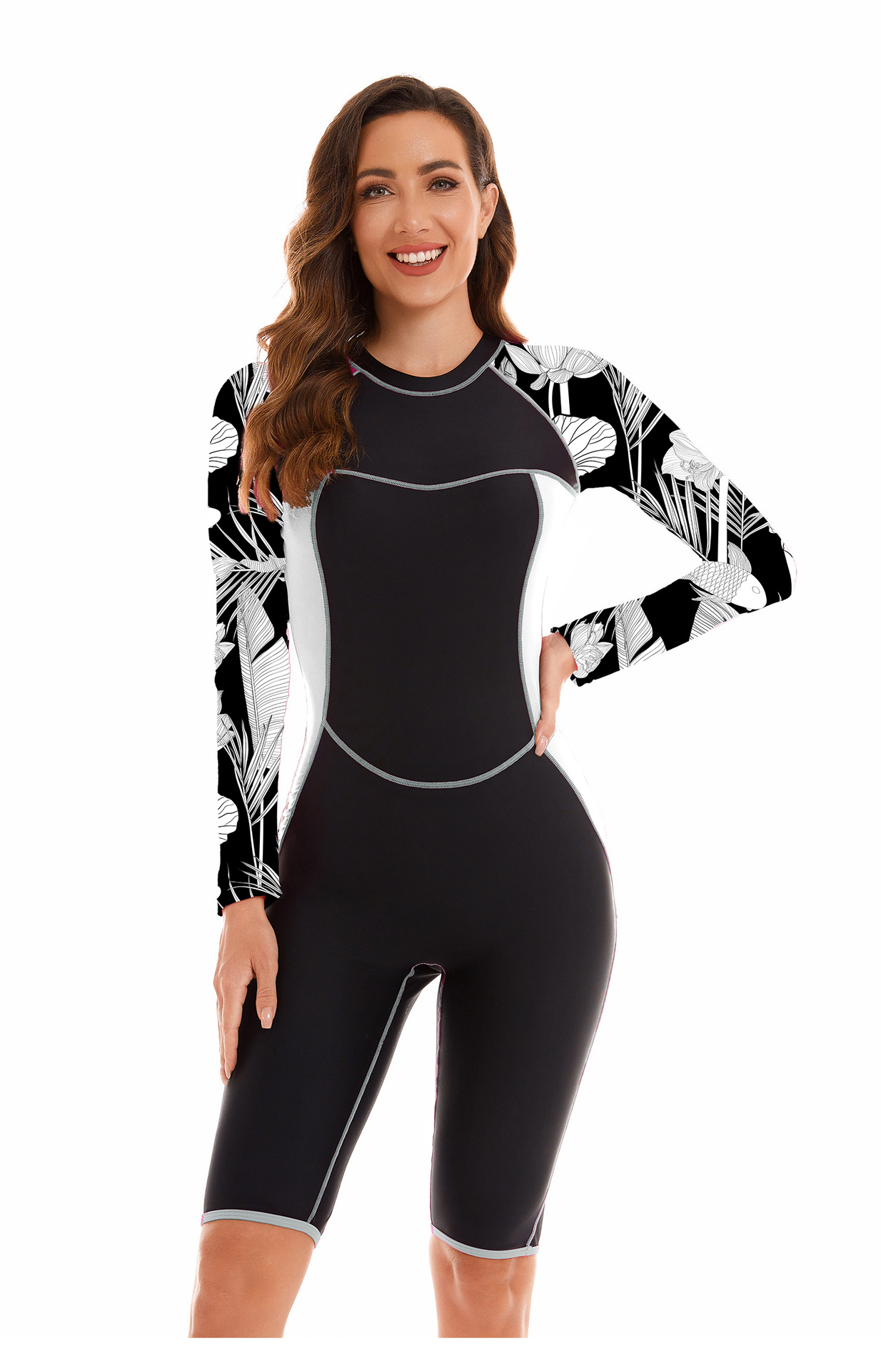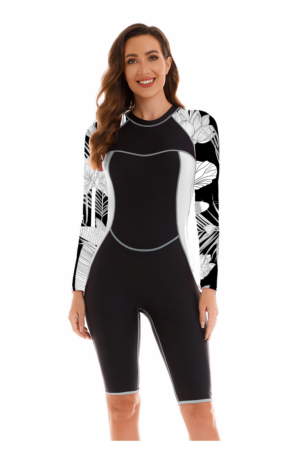 유럽과 미국 스포츠 대외 무역 원피스 세트 긴팔 서핑 세트 여성용 수영복 플랫 앵글 다이빙 세트 수영복 Oni Flower 28007스토어 가기