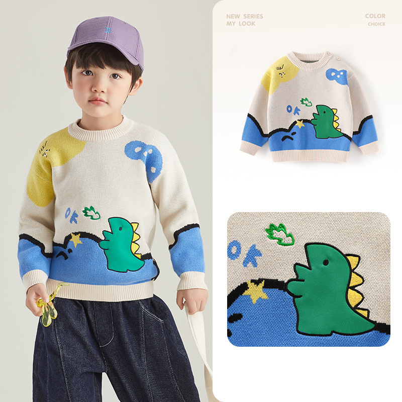 쿨바미 가을 겨울 아동용 라운드넥 스웨터, 귀여운 공룡 니트 스웨터, 패셔너블한 풀오버 스웨터스토어 가기