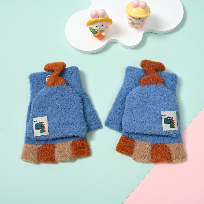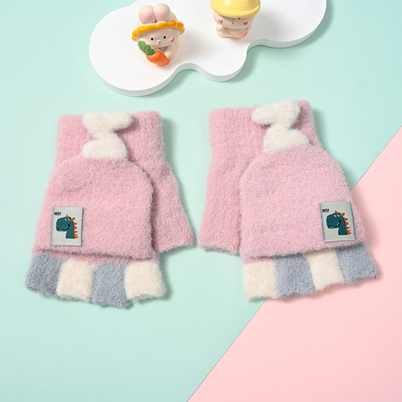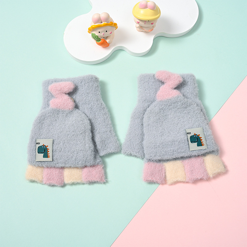 어린이 장갑 겨울 따뜻한 기모 두꺼운 플립 반 손가락 니트 아기 유치원 귀여운 만화