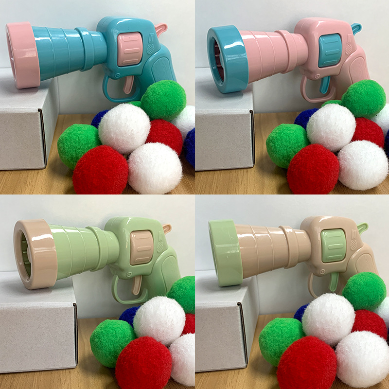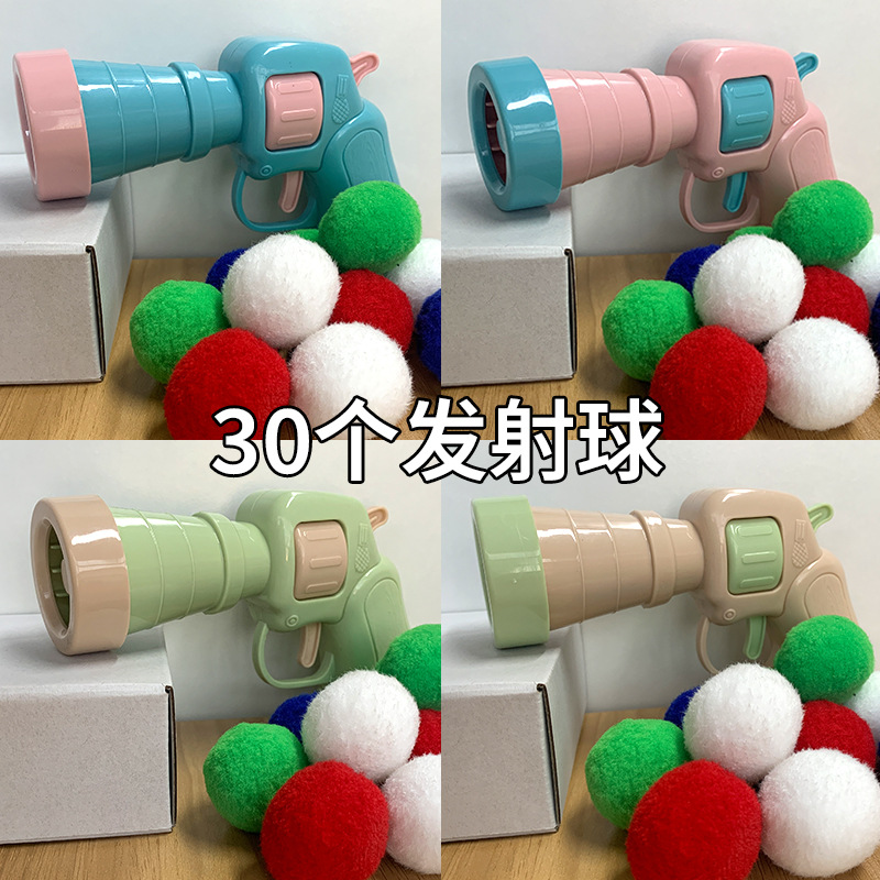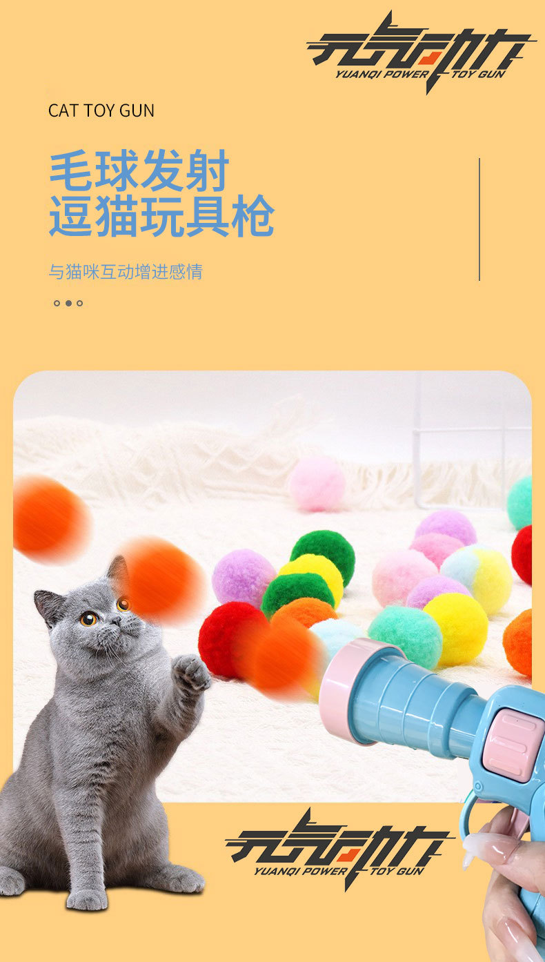 지루함을 덜어주고 재미있는 고양이 장난감 양모 공 마이크로 총알 정전기를 음소거하기 위해 국경을 넘는 새로운 만화 고양이 플러시 공 발사 총스토어 가기