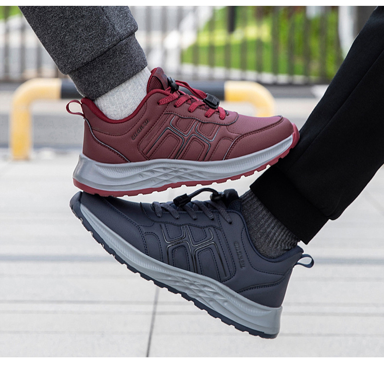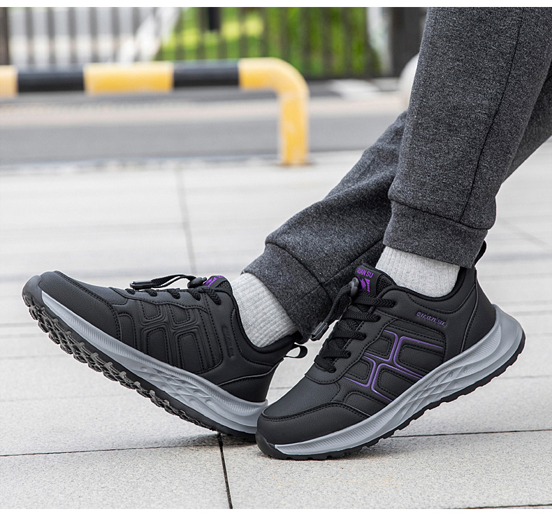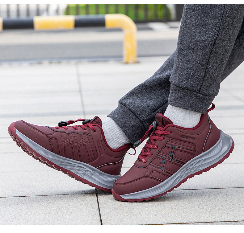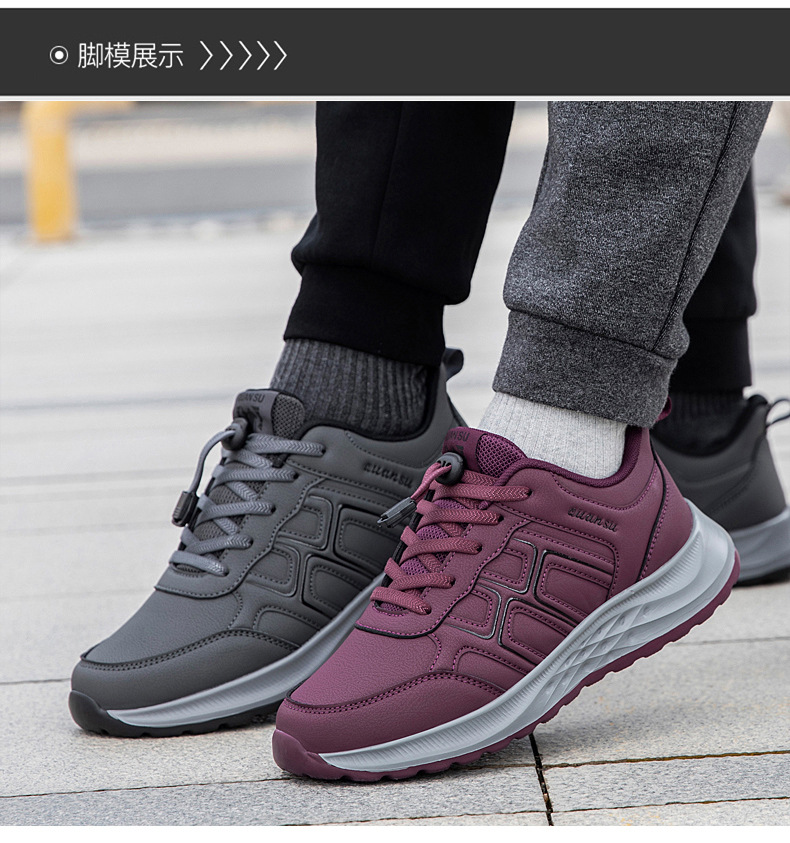 노인을위한 가을과 겨울 새로운 가죽 신발 부드러운 바닥 여행 엄마와 아빠 신발 레저 스포츠 운동화 남성과 여성의 워킹화