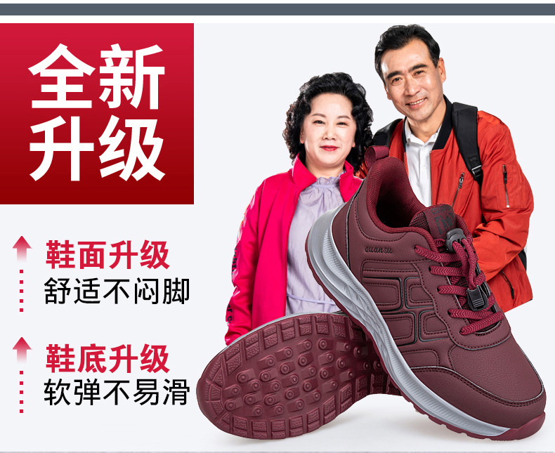 노인을위한 가을과 겨울 새로운 가죽 신발 부드러운 바닥 여행 엄마와 아빠 신발 레저 스포츠 운동화 남성과 여성의 워킹화스토어 가기