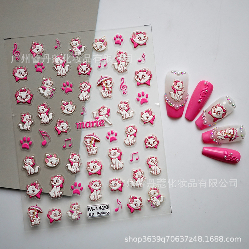 새로운 공예 5D 양각 네일 아트 스티커 만화 메리 고양이 딸 소녀 접착제 네일 스티커와 귀여운 작은 우유 고양이스토어 가기