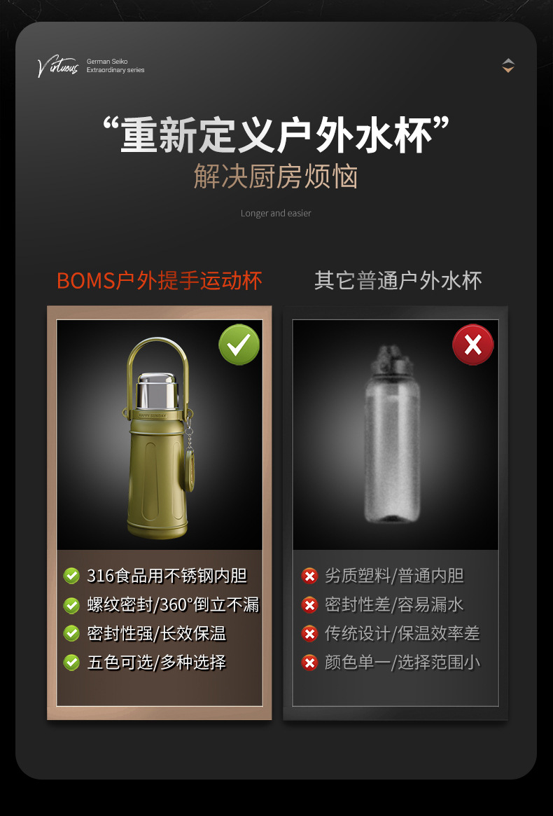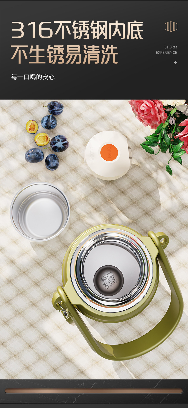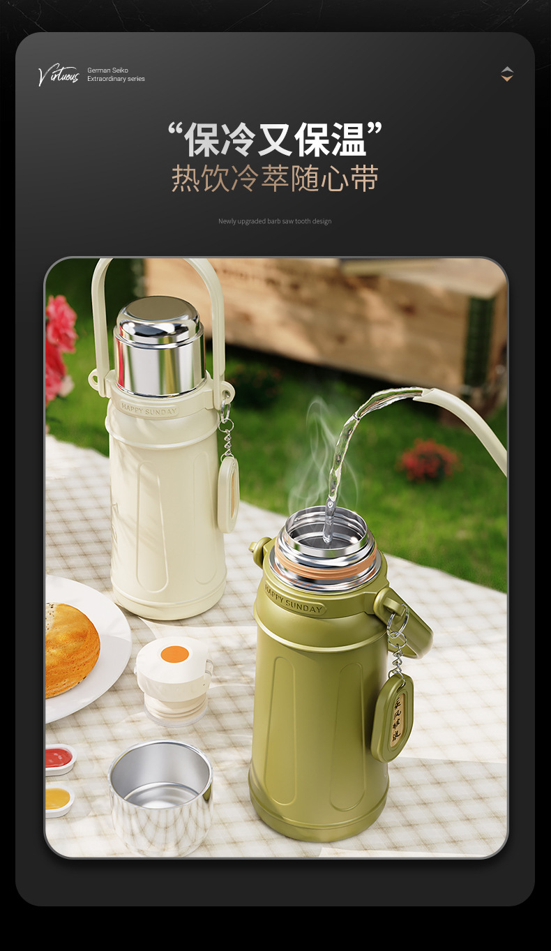 316 스테인레스 스틸 보온병 컵 끈 대용량 여행 냄비 야외 여행 주전자 등반 컵 자동차 보온병스토어 가기