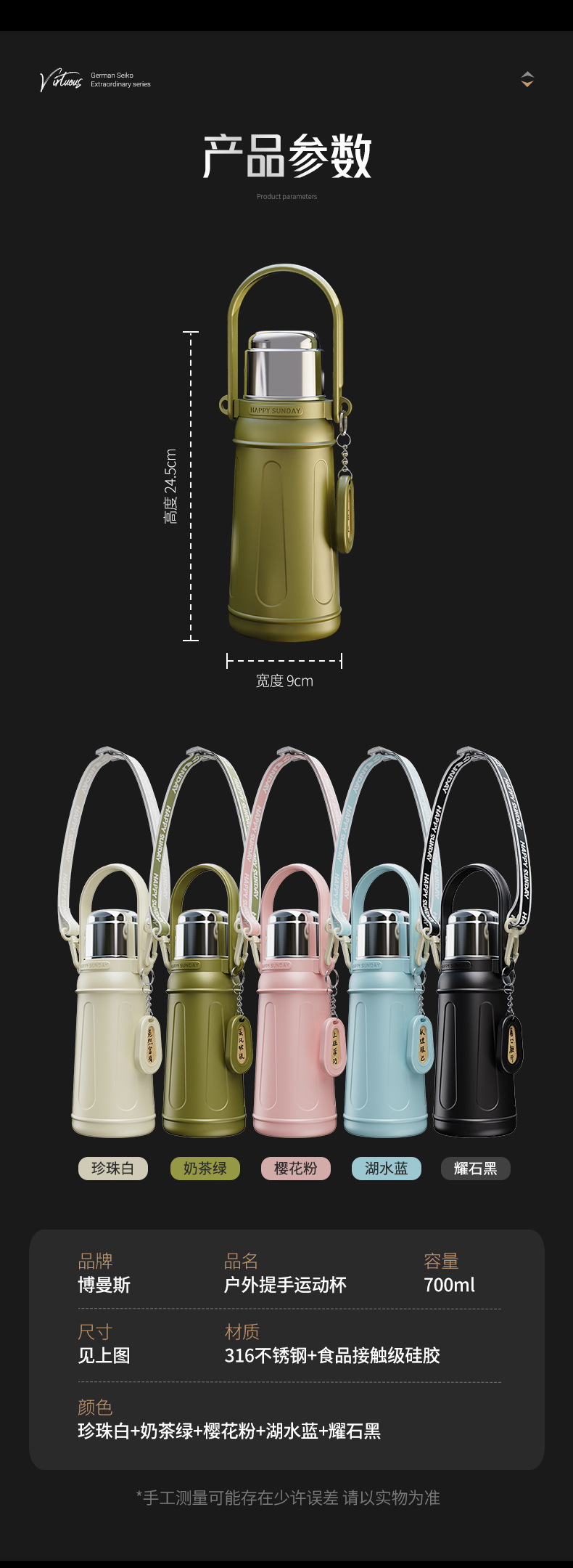 316 스테인레스 스틸 보온병 컵 끈 대용량 여행 냄비 야외 여행 주전자 등반 컵 자동차 보온병