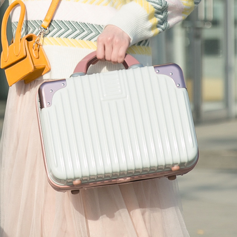 14inch 휴대용 화장품 가방, 소형 여행 가방, 여성용 소형 경량 가죽 여행 가방, 미니 동위 수납함
