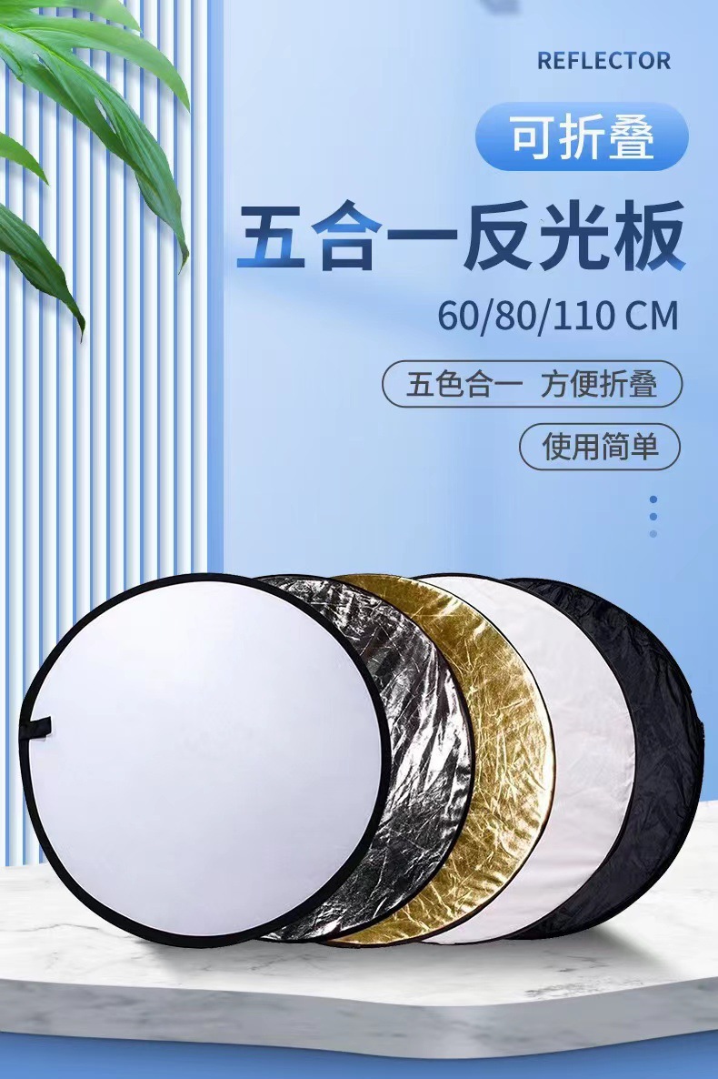 사진 반사판 30/60/80/110cm 투인원 라운드 접이식 휴대용 5 대 1 라이트 플레이트 플렉시블 플레이트
